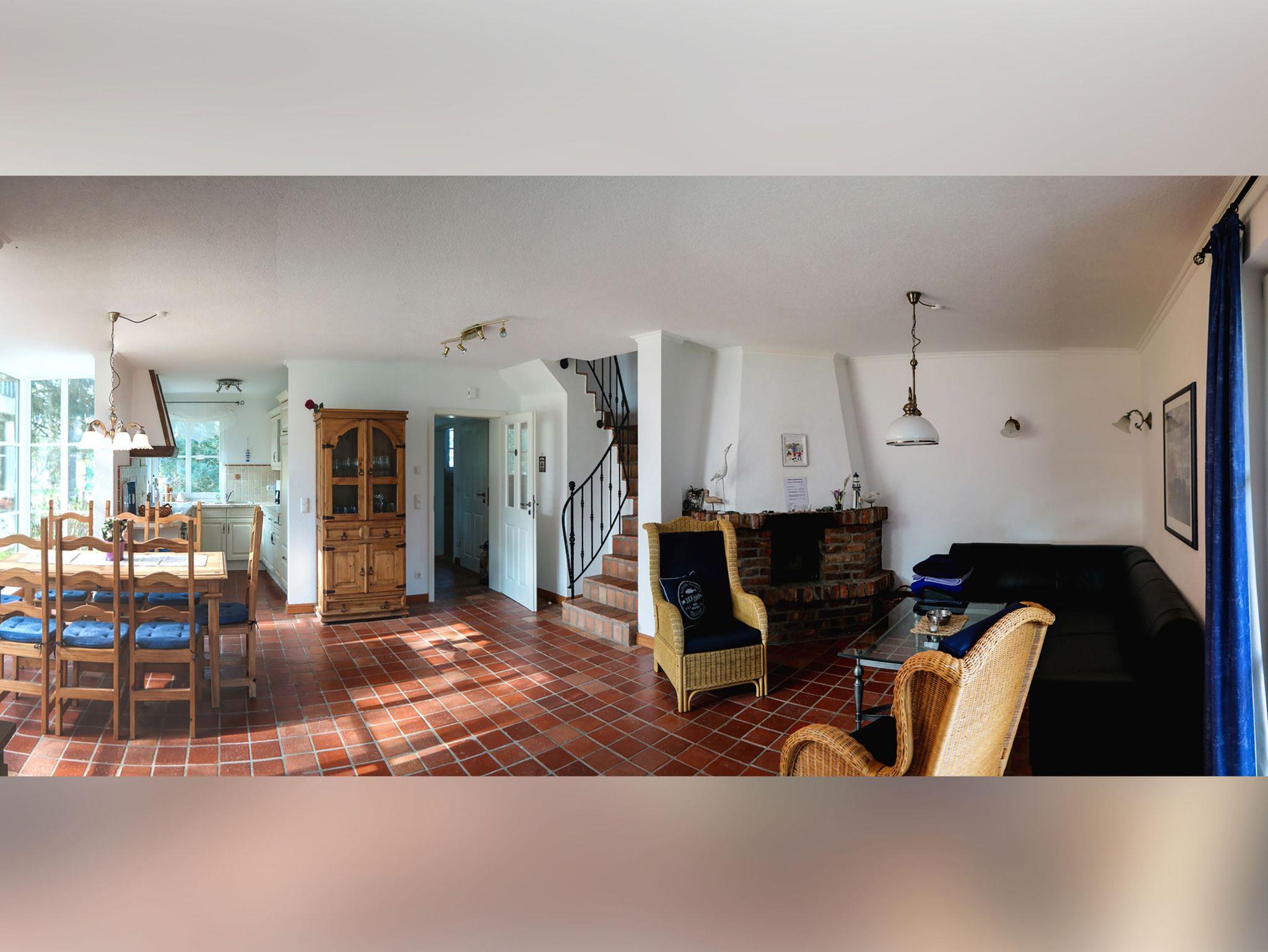 Das Haus mit 110qm Größe ist ideal für 2-7 Pers. ( inkl. Kleinkind ) sowohl für Großfamilien oder zwei befreundete Familien ideal geeignet. Im Wohnzimmer befindet sich eine sehr gemütliche Sofaecke in echtem Leder. Ein Flachbild - Fernseher sorgt für einen schönen Ausklang eines Ostsee -Tages im Kreise der mitreisenden Familie und der Freunde. Hier können Sie sich ausruhen, sich zurücklehnen und die Abendstimmung genießen.