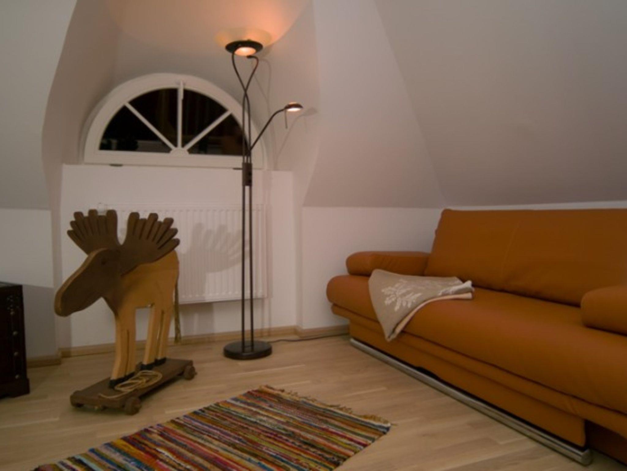 - Lesezimmer im Dachstudio mit einer großen Auswahl an Büchern, Spielen und Fernseher