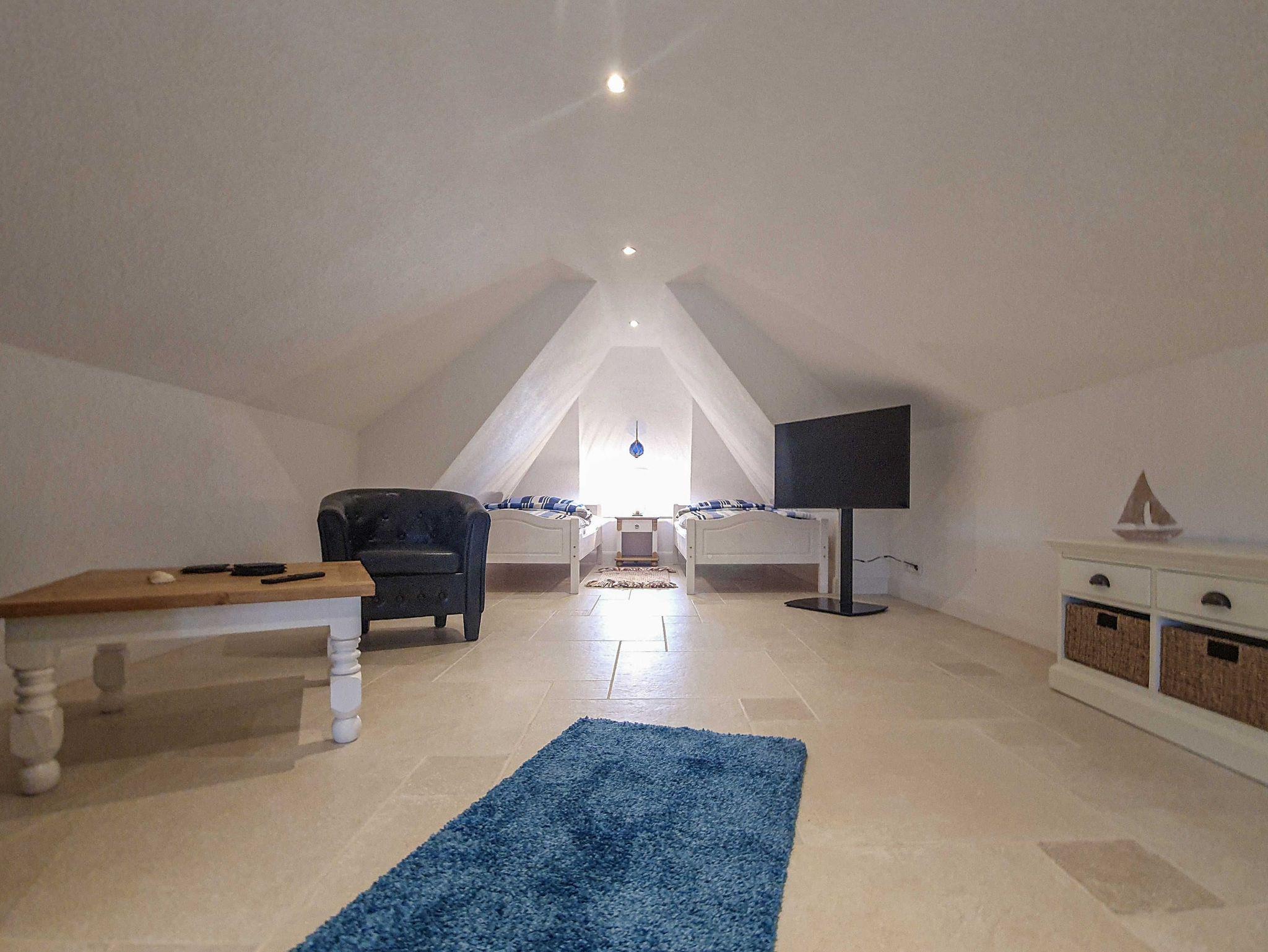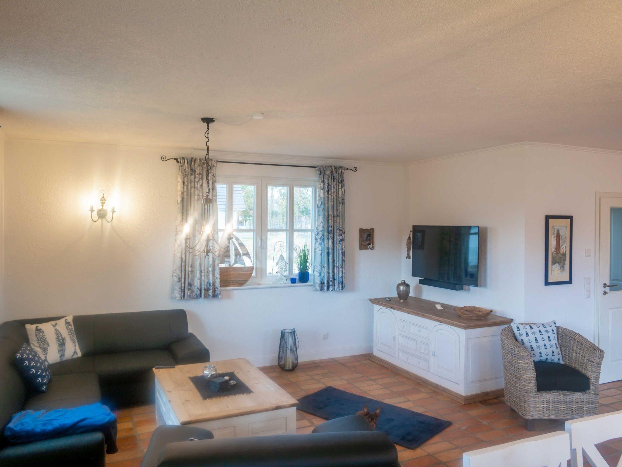 Das Haus mit 137qm Größe ist ideal für 2-6 Pers. ( inkl. Kleinkind ) sowohl für Großfamilien oder zwei befreundete Familien geeignet. Im Wohnzimmer befindet sich eine sehr gemütliche Sofaecke. Ein Flachbild - Fernseher mit Soundbar sorgt für einen schönen Ausklang eines Ostsee -Tages im Kreise der mitreisenden Familie und der Freunde. Hier können Sie sich ausruhen, sich zurücklehnen und die Abendstimmung genießen.
