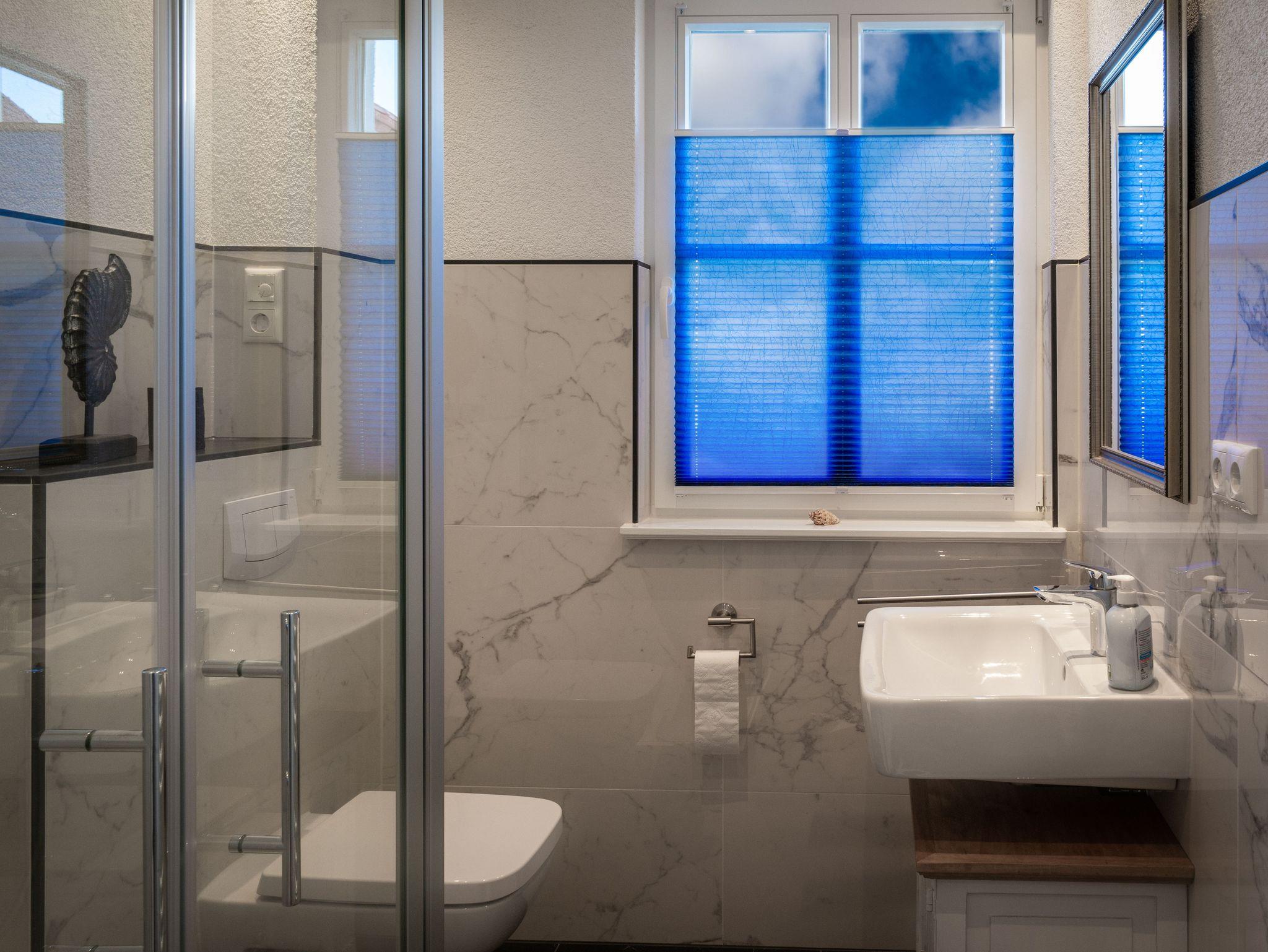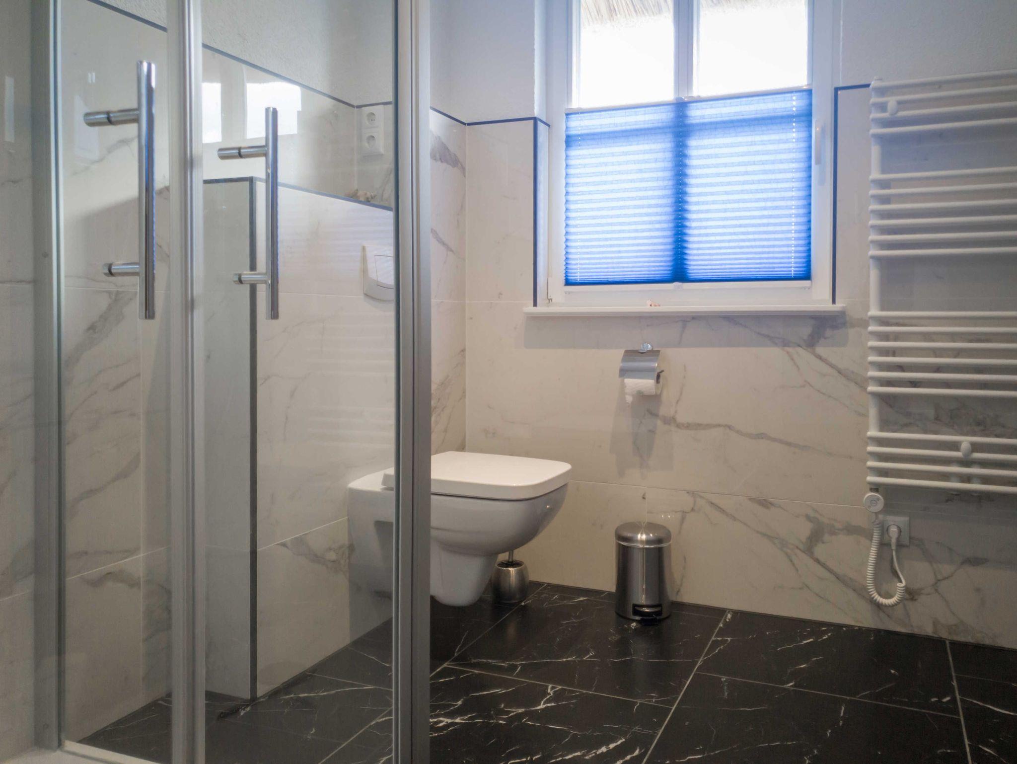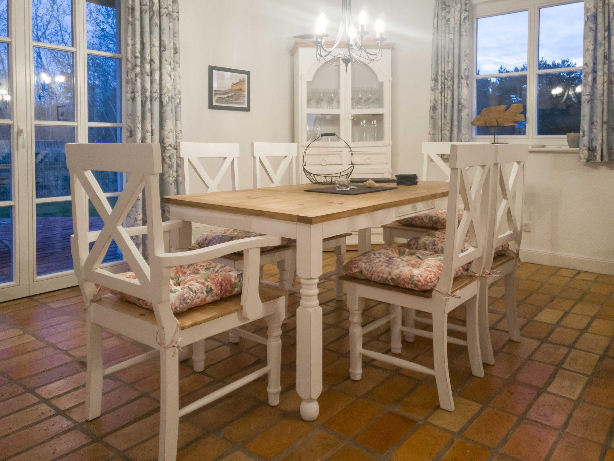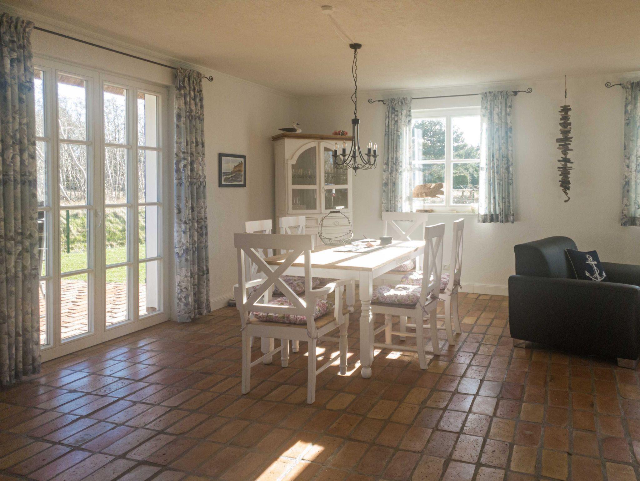 Das Fischerhus in Prerow bietet mit 137 m² Wohnfläche ausgesprochen viel Platz für bis zu 6 Gäste. Im Erdgeschoss erwartet Sie ein großer Raum mit Sitzecke, Esstisch und offener Landhausküche. Der Fußboden ist mit 100 Jahre alten Klinkern gefliest wie in den exklusiven Häusern in Kampen auf Sylt. Es wurden Holzsprossenfenster mit Fensterläden eingebaut. Das gesamte Haus wird mit einer Fußbodenheizung beheizt. Davon abgeteilt finden Sie im Eingangsbereich das WC mit einem Duschbad und den Wirtschaftsraum. Im Obergeschoß befinden sich 2 großzügige und gemütliche Schlafzimmer und das ansprechende und voll ausgestattete Bad sowie ein weiterer Abstellraum. Im Dachgeschoß befinden sich nochmal 2 Betten und eine Sitzecke mit einem 2 ten Fernseher. Die gut möblierte Terrasse mit Grill, Sonnenschirm und Liegen machen das Leben auch draußen zum Vergnügen. Das 630qm große Grundstück ist von der Terrassenseite nicht ensehbar. Im Haus befinden sich 2 große Fernseher mit einer Soundbar. Für die Kinder ist eine Schaukel mit Rutsche vorhanden. Das Grundstück ist eingezäunt, von der Staßenseite mit einer Friesenmauer bewachsen mit Sylter Rosen. Selbstverständlich gibt es Wlan.