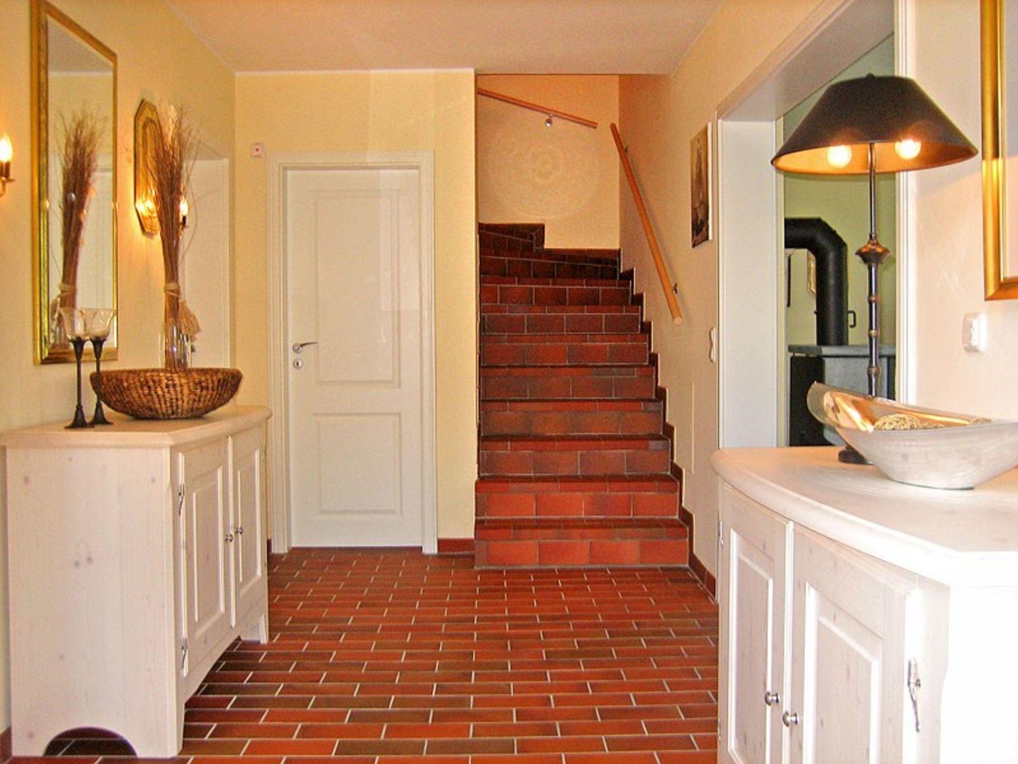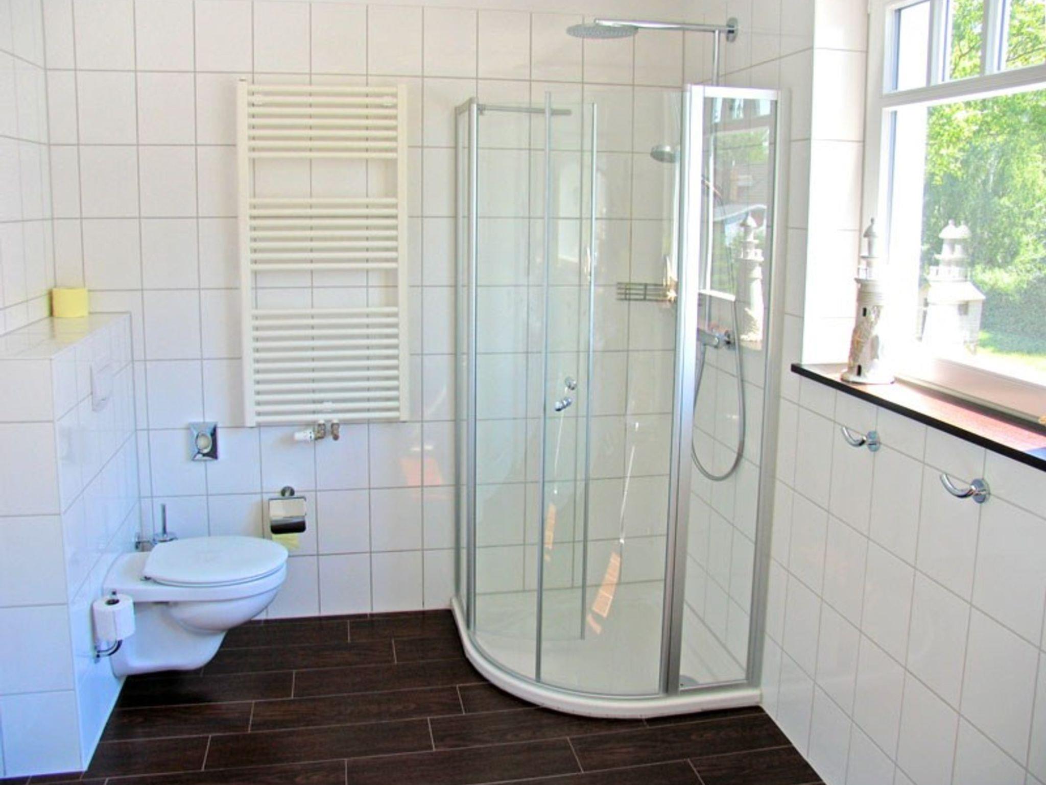 Das Ferienhaus ist eine Doppelhaushälfte mit zweihundertfünfzig qm Grundstück zur alleinigen Nutzung. Das Ferienhaus hat zwei Etagen, vier Zimmer (davon drei Schlafzimmer) und zwei Bäder, ist mit max. sechs Personen belegbar. Zur Nutzung stehen zur Verfügung: Terrasse, Liegewiese, Sonnenschirm, Gartenmöbel und Grillmöglichkeit. Parkmöglichkeit für zwei Pkw auf dem Grundstück. Küchenausstattung: Elektroherd (vier Platten), Backofen, Abzugshaube, Geschirrspüler, Kühlschrank mit Eisfach, Mikrowelle, Kaffeemaschine, Toaster und Wasserkocher. Ein Bad (im EG) ist mit Badewanne, Dusche, zwei Waschbecken, WC, Föhn und Fenster. Bad im Obergeschoss mit Dusche, ein Waschbecken, WC und Fenster. Kinderstuhl ist vorhanden. Fernsehempfang via Satellit.