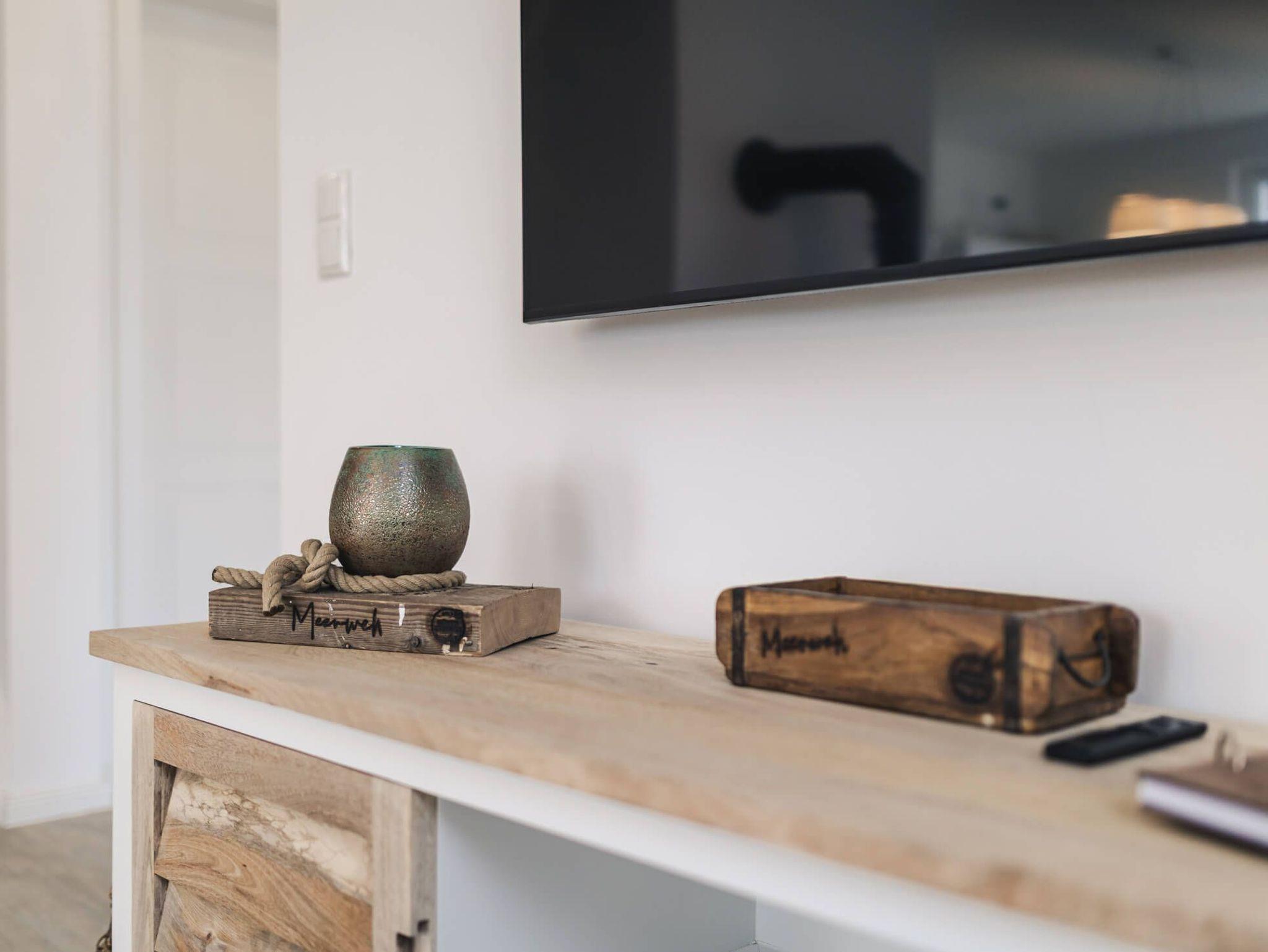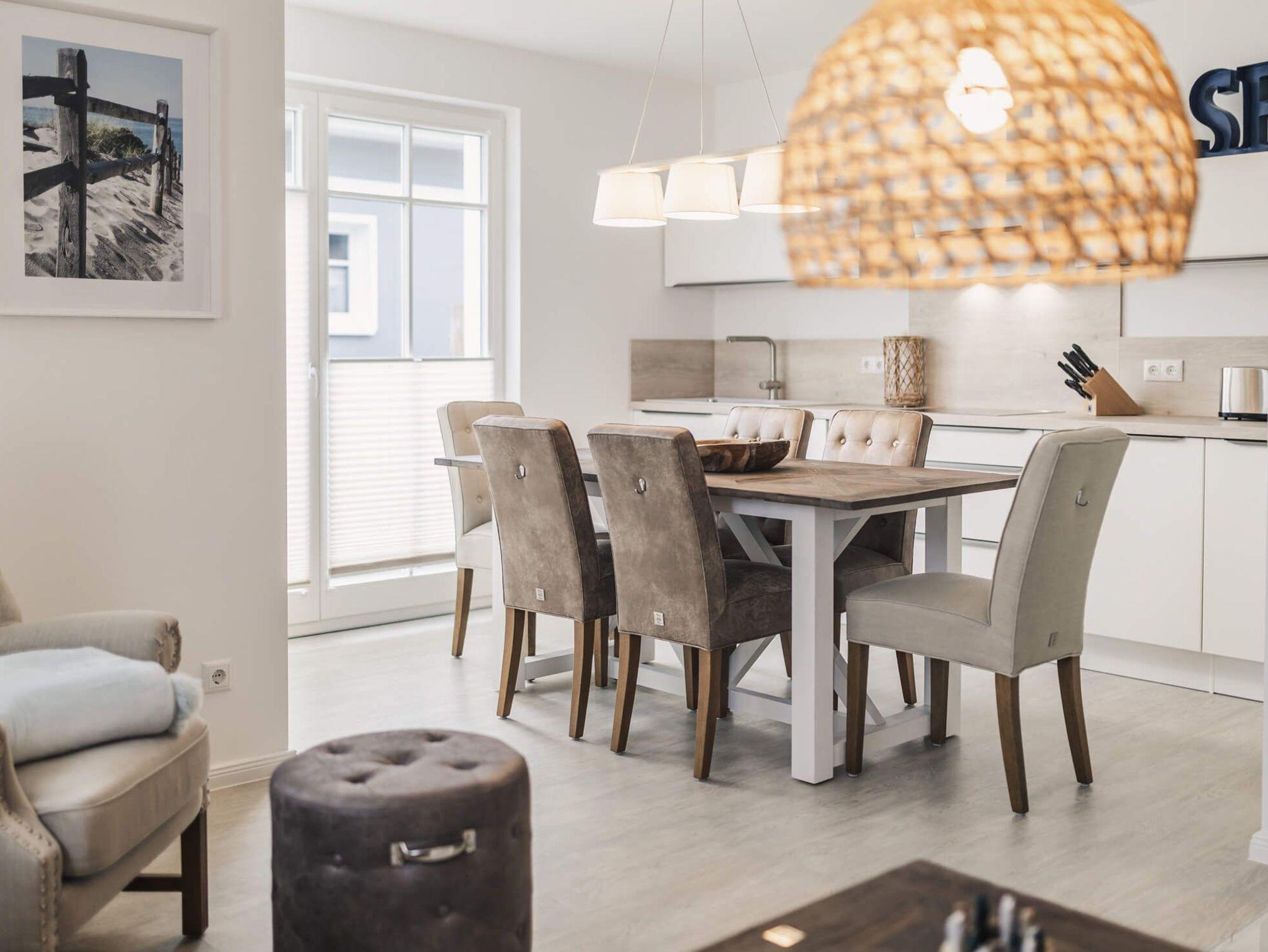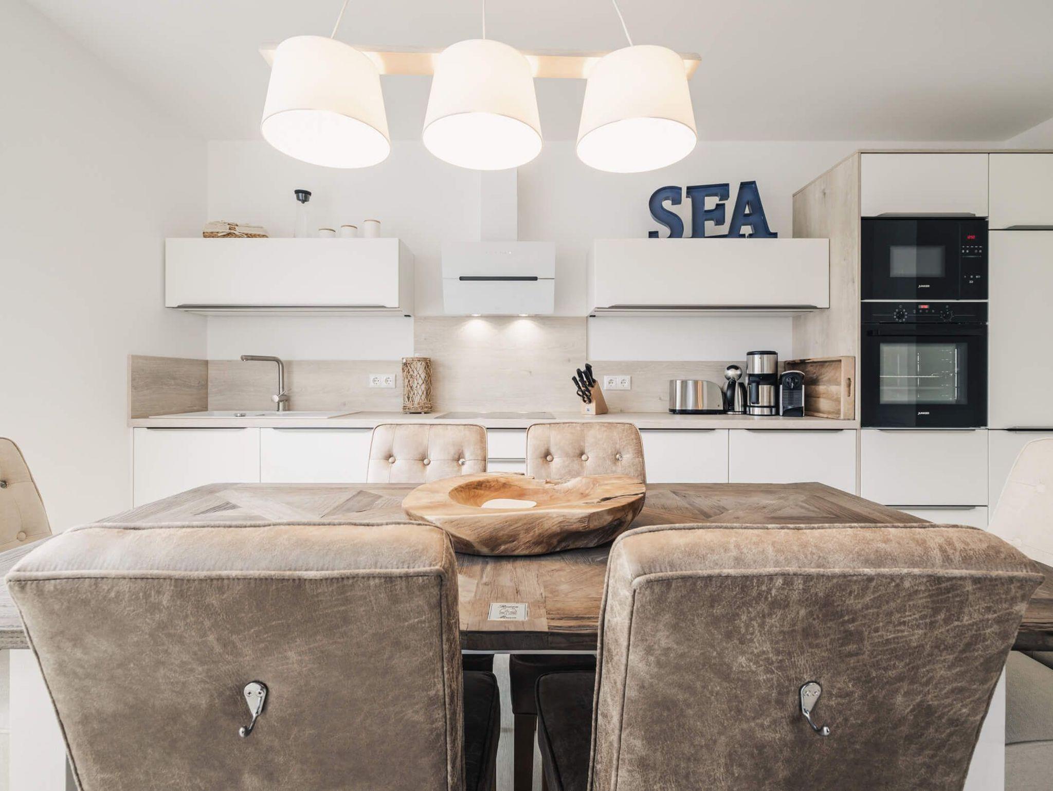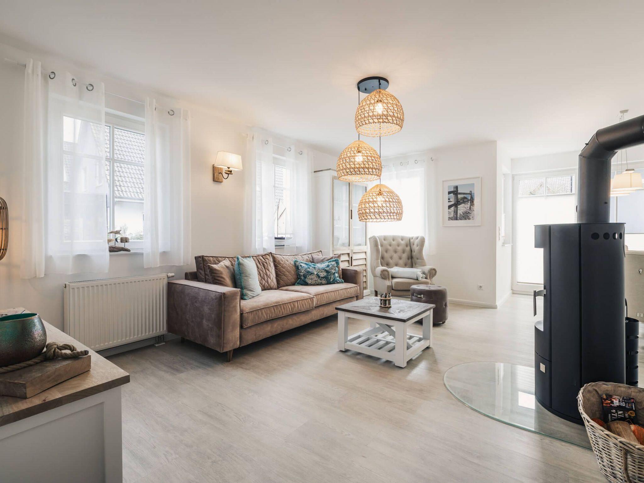 Das Haus Meerweh besticht durch seine gemütliche Atmosphäre und die hochwertige Ausstattung. Zwei der drei Schlafzimmer sind mit komfortablen Boxspringbetten ausgestattet, die für erholsame Nächte sorgen. Die voll ausgestattete Küche und der großzügige Wohn- und Essbereich laden zum Verweilen ein. Ein Kaminofen sorgt für wohlige Wärme an kühlen Tagen, und die hauseigene Sauna verspricht Entspannung pur.