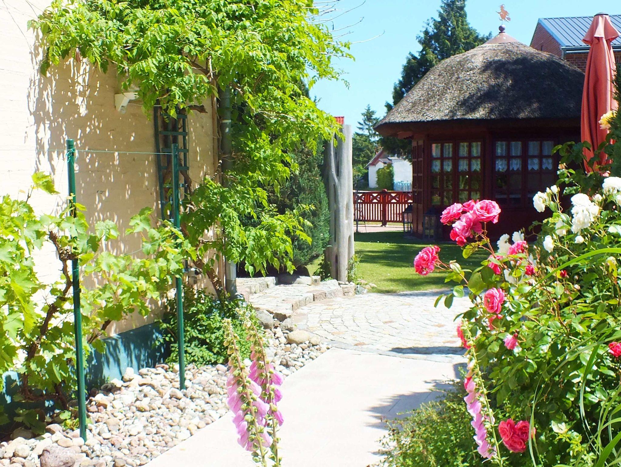 Von Ihrer Frühstücks-Terrasse direkt am Haus, dem ungestörten Gartenbereich, der Liegewiese - und an Wind und Wettertagen aus dem zugehörigen Pavillon - blicken Sie in unseren schön eingewachsenen, ruhigen Garten.