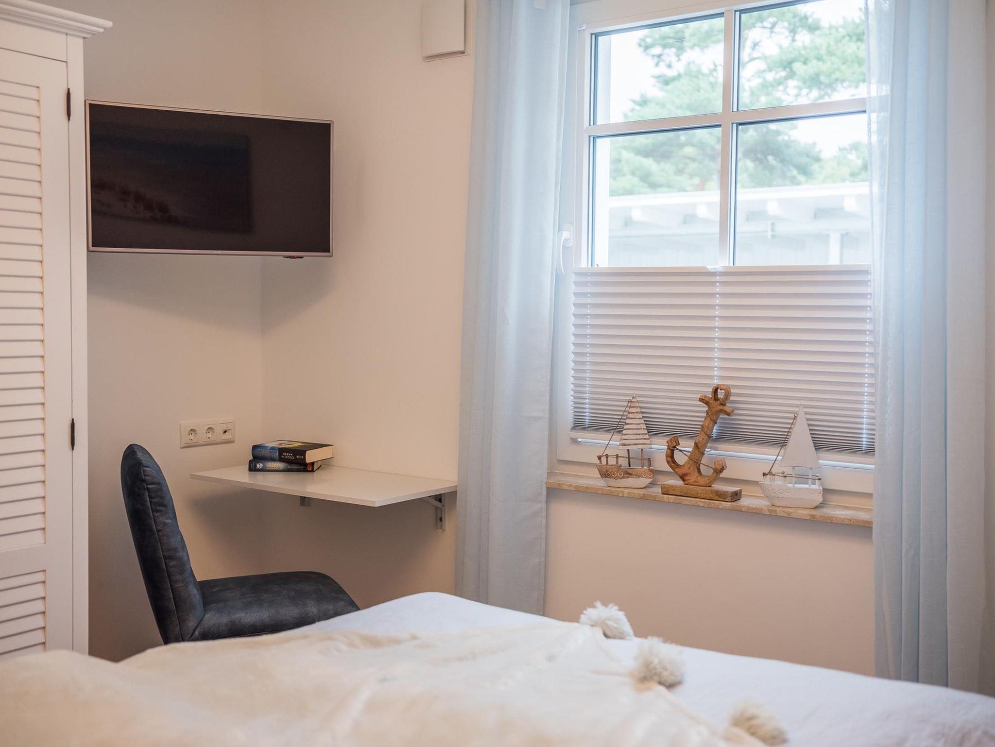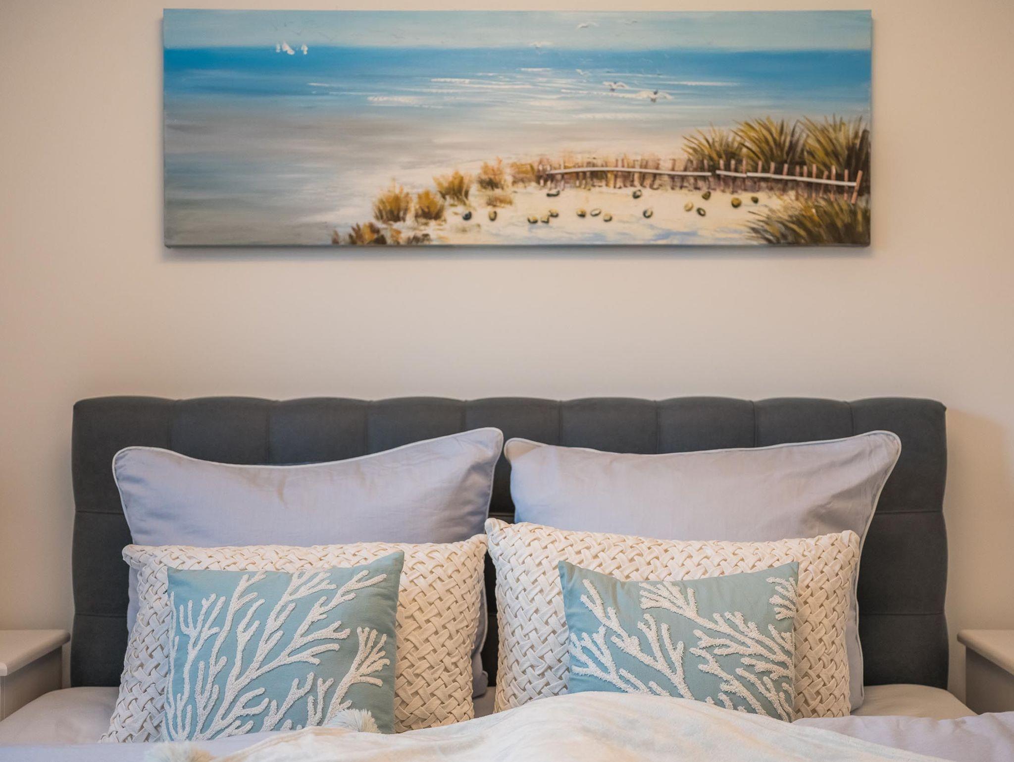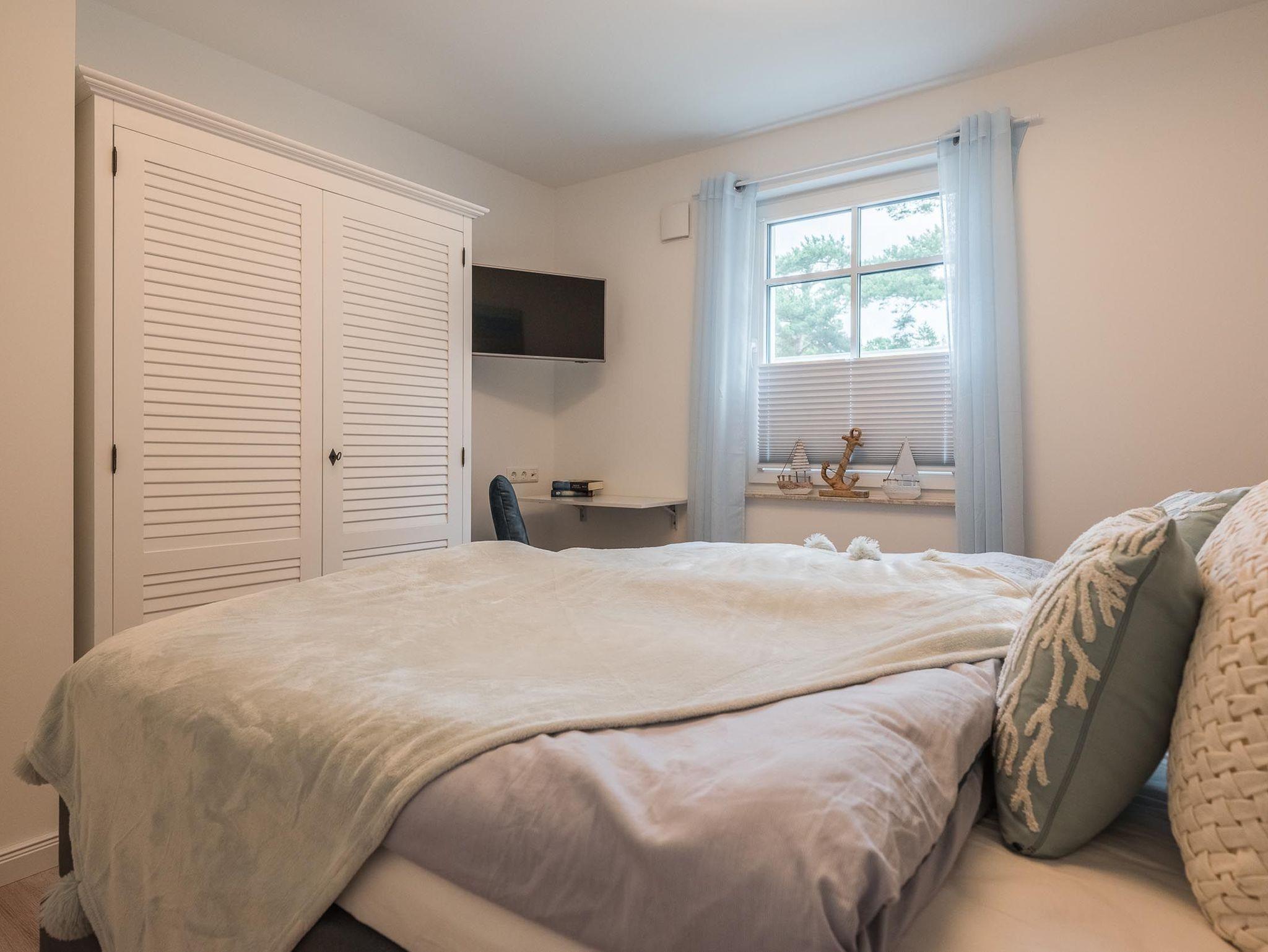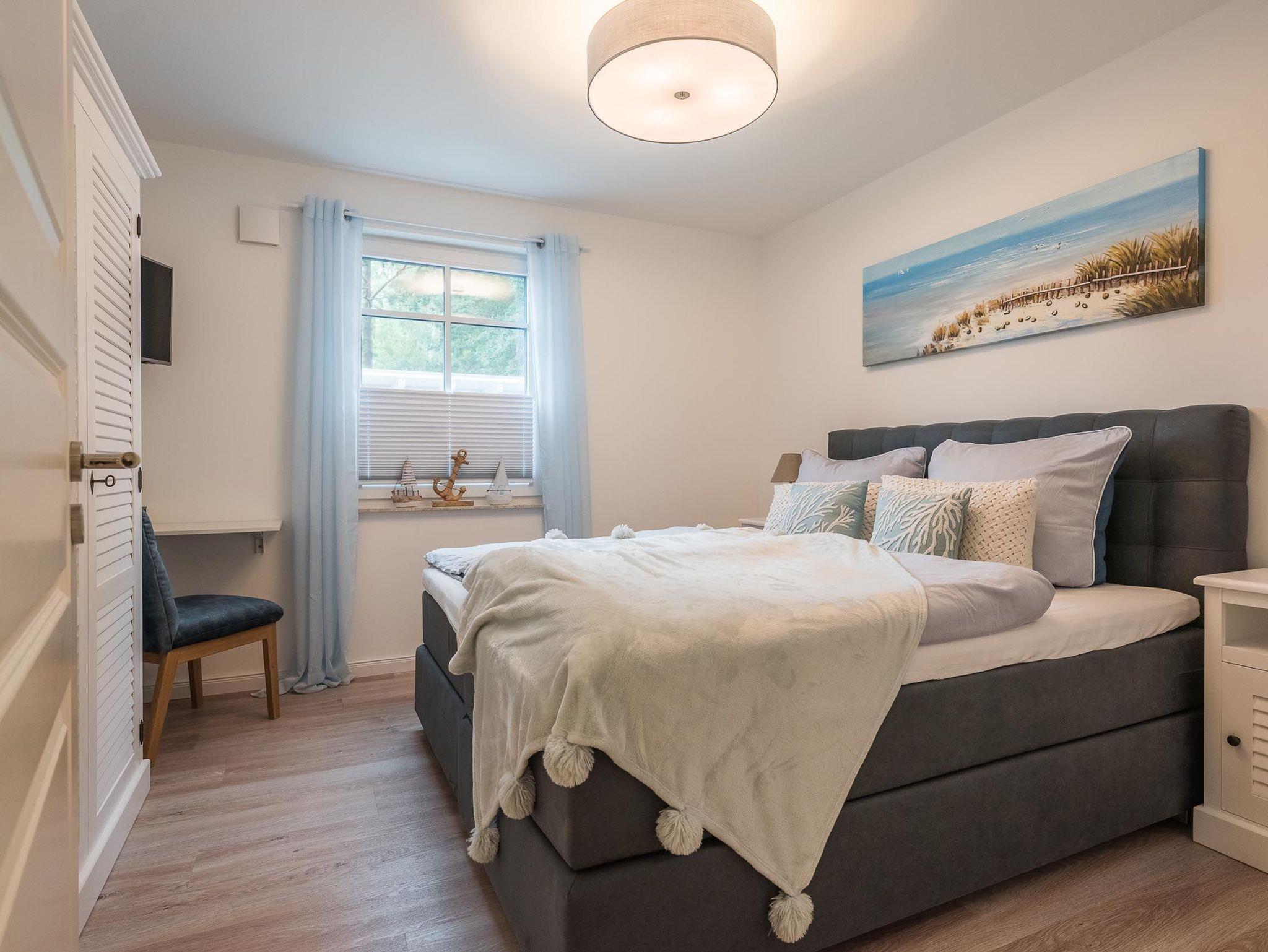 Insgesamt verfügt die Ferienwohnung über zwei separate Schlafzimmer. Eines davon ist mit einem sehr komfortablen Boxspring-Doppelbett ausgestattet.