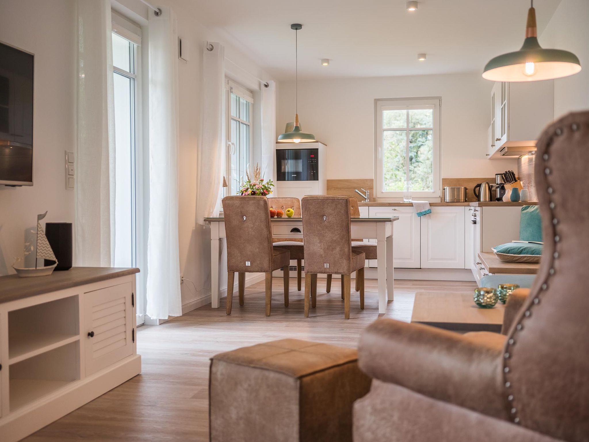 Diese hochwertig und liebevoll eingerichtete Ferienwohnung befindet sich zu ebener Erde in einem neu errichteten Apartmentobjekt in ruhiger Lage und ist stufenlos erreichbar.