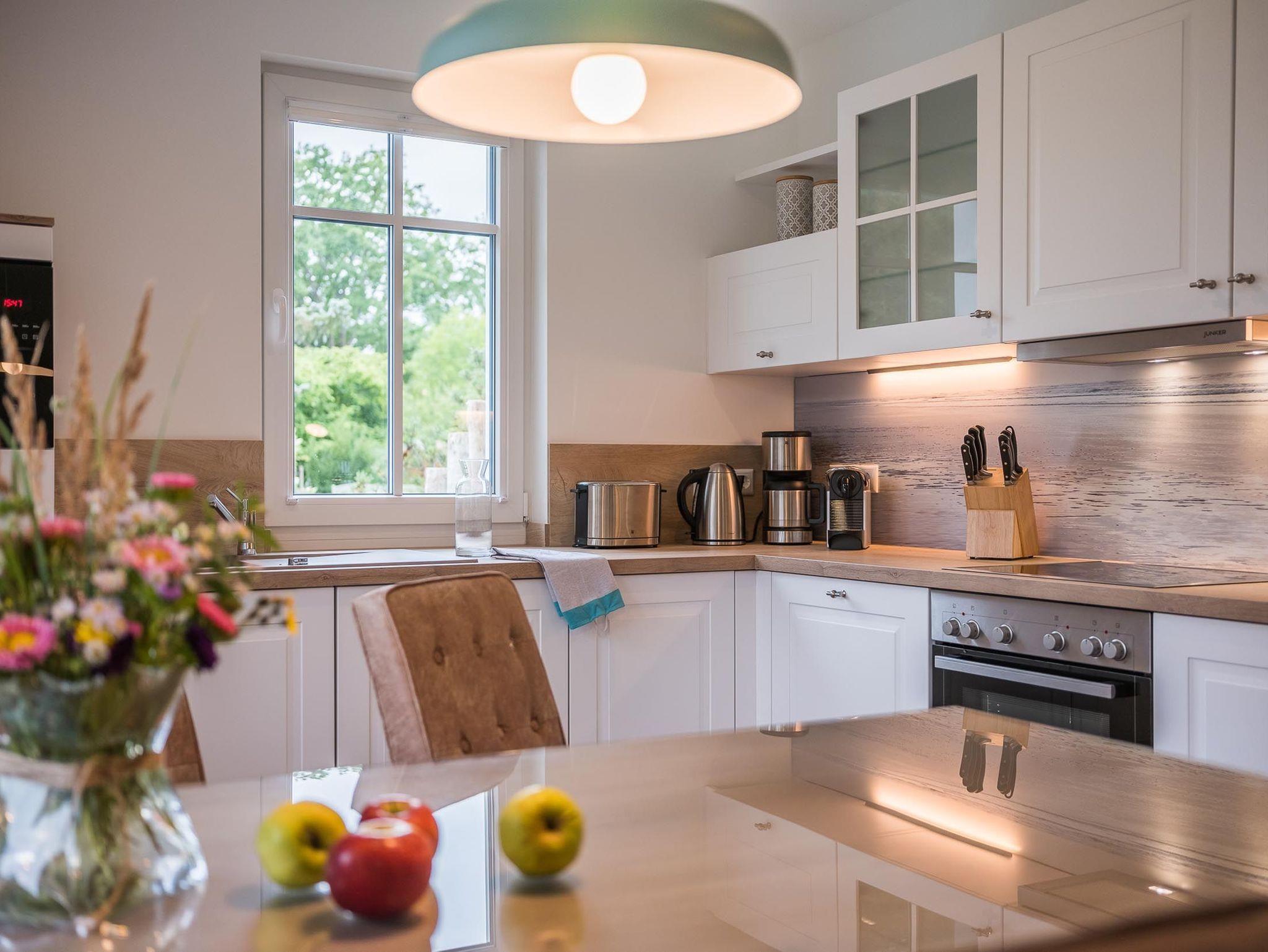 Sie verfügt über einen eleganten Wohnbereich mit einer offenen Küche und gemütlichem Essbereich. Die Küche ist hochwertig ausgestattet und lässt keine Wünsche offen.