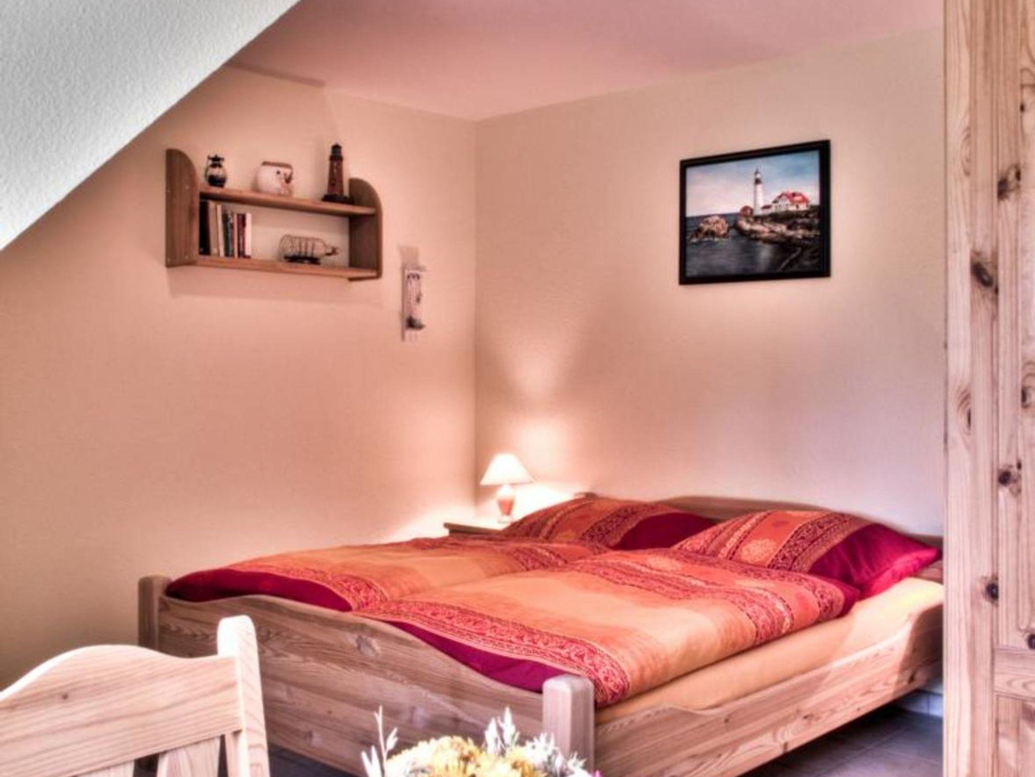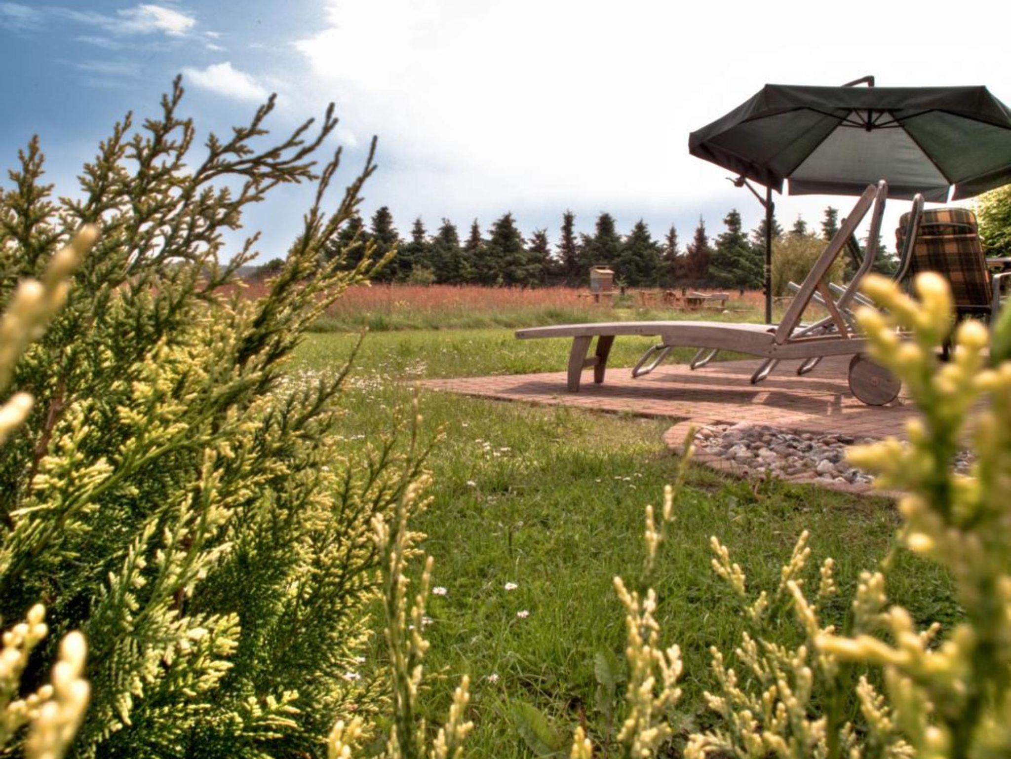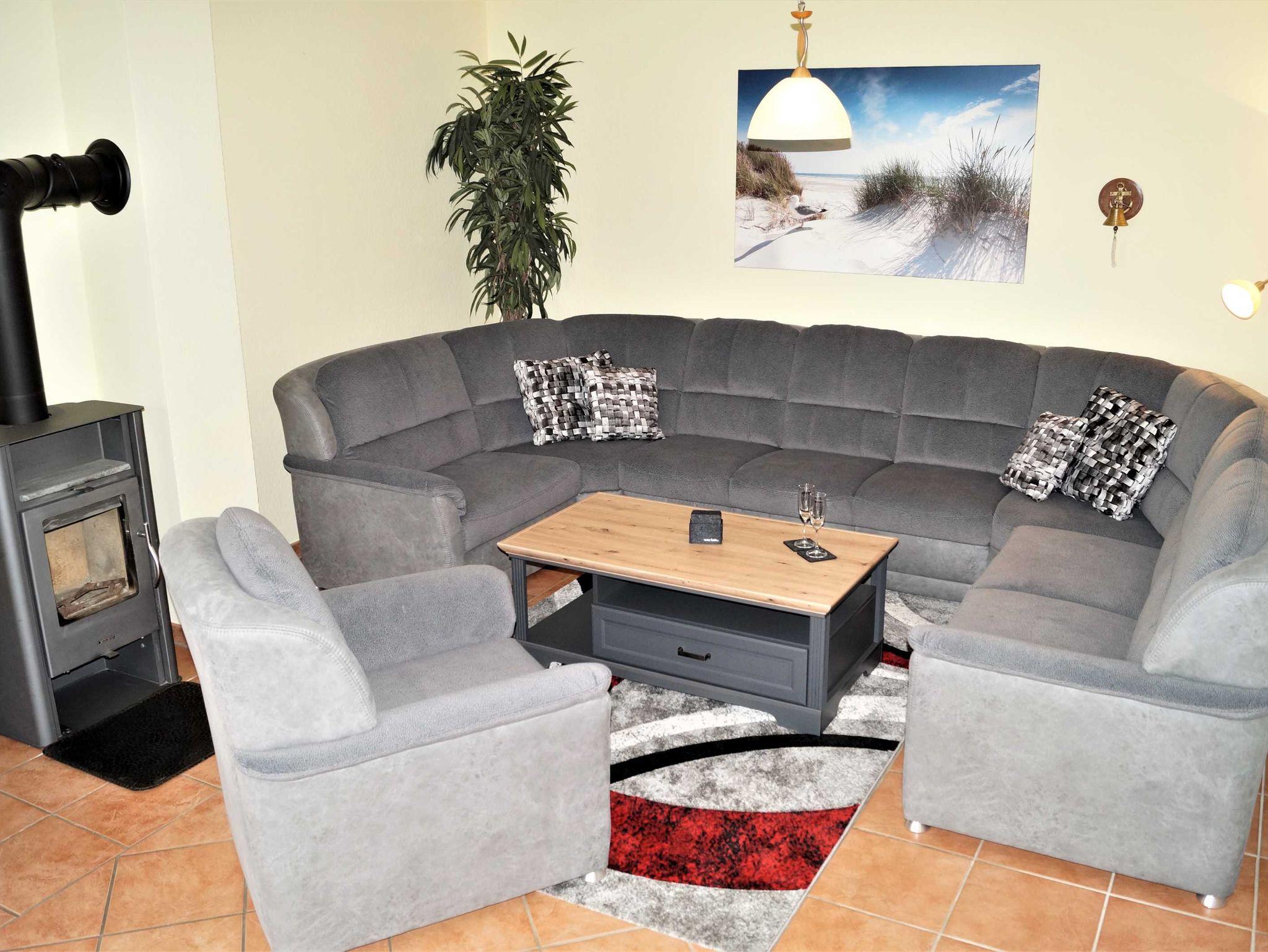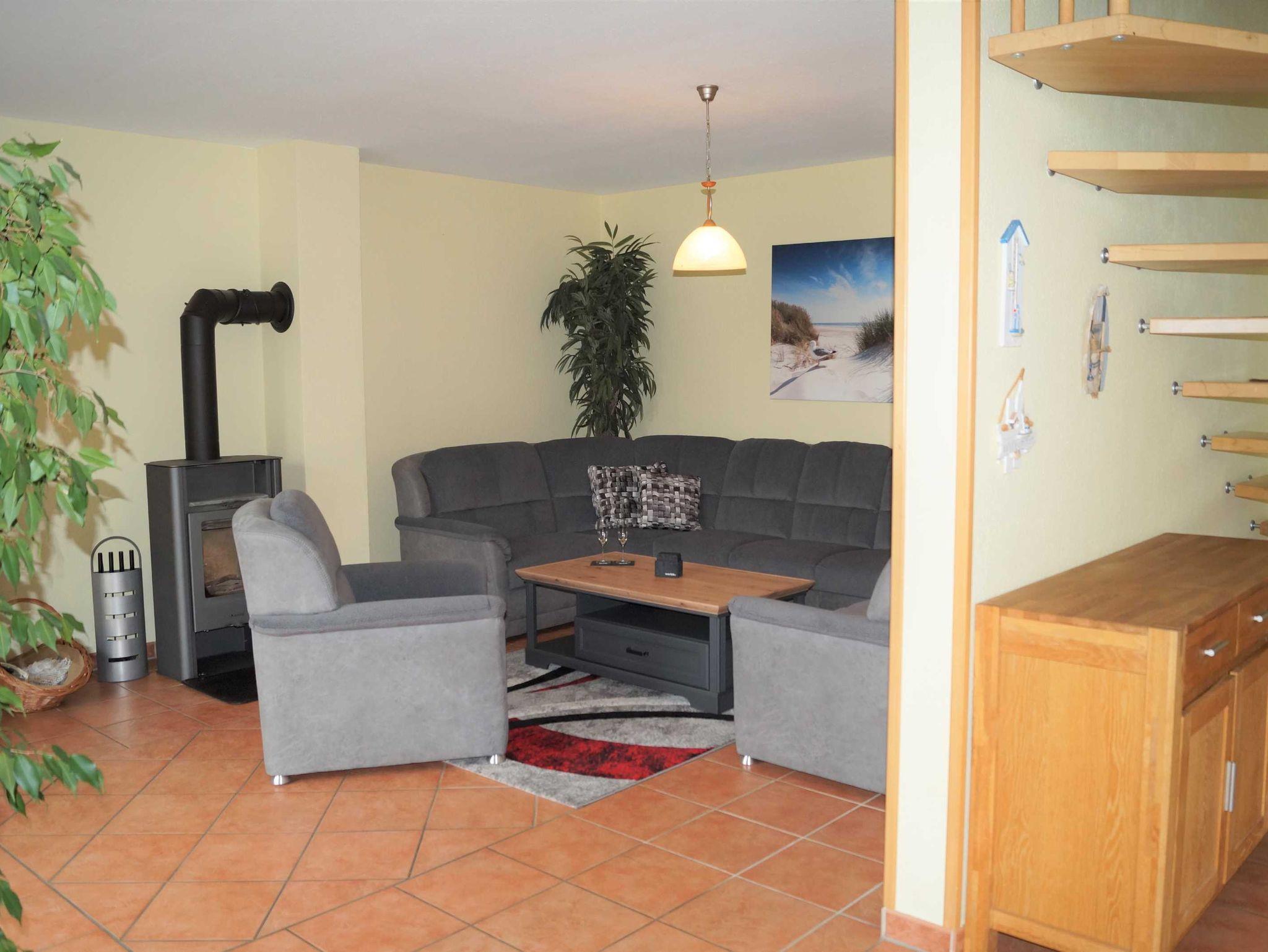 Haushälfte Daniela WHN 2 für 2-8 Personen mit 1 Kleinkind. Wohnraum mit kompletter Einbauküche (Herd/Backofen, Spülmaschine, Mikrowelle und Kühlschrank mit TK-Fach), einem Kaminofen. 1 Schlafzimmer mit Doppelbett und Einzelbett, 1 Schlafzimmer mit 1 Einzelbett, 1 Schlafzimmer mit Doppelbett mit Treppenzugang zur offenen Galerie mit 2 Betten. 2 Bäder mit Dusche/WC, Infrarotwärmekabine, Waschmaschine. Südterrasse mit Gartenmöbeln, 5.000m² großes Grundstück mit unverbautem, naturnahen Blick über idyllische Salzwiesen nur wenige Gehminuten vom Hafen entfernt.
