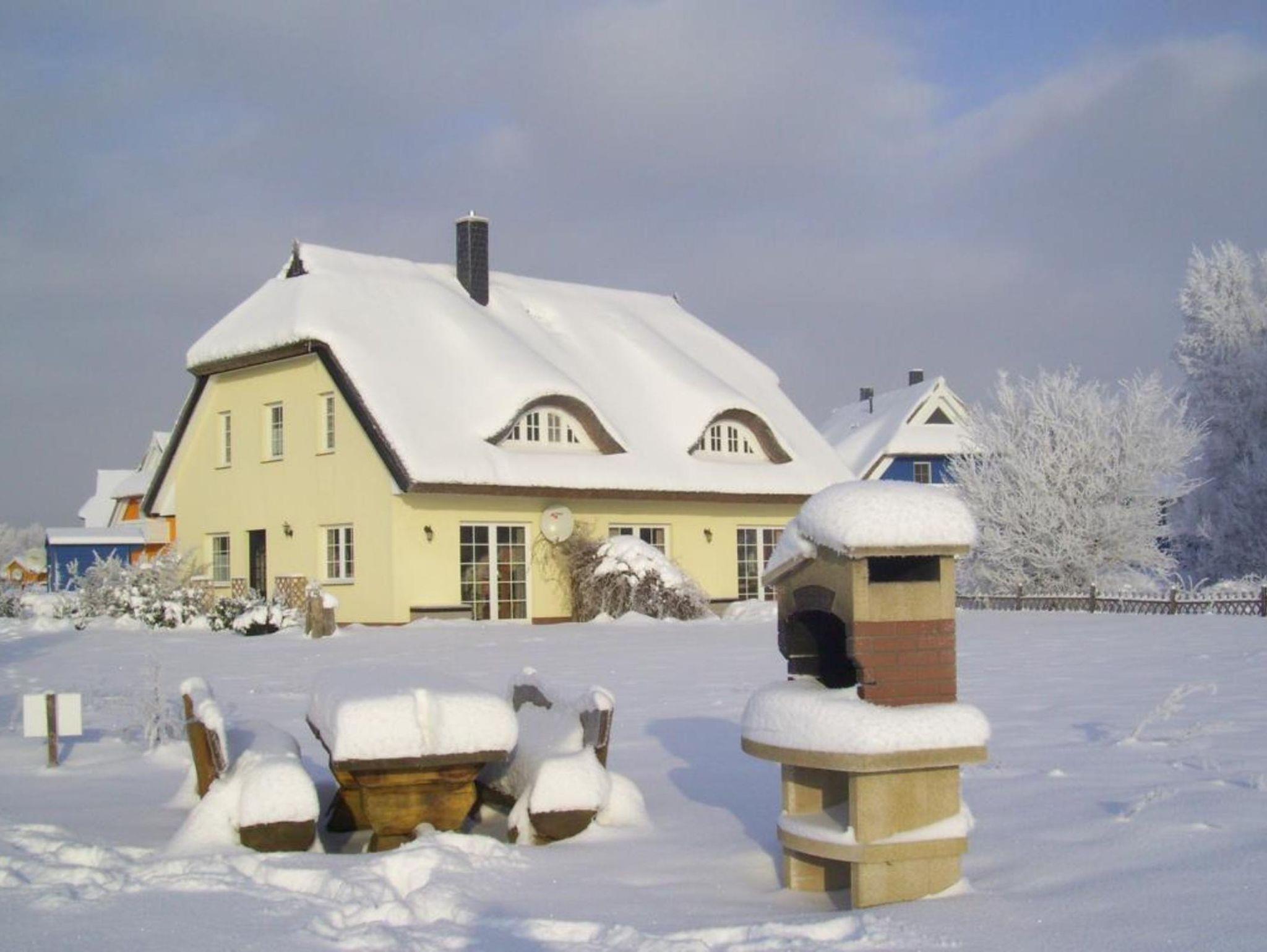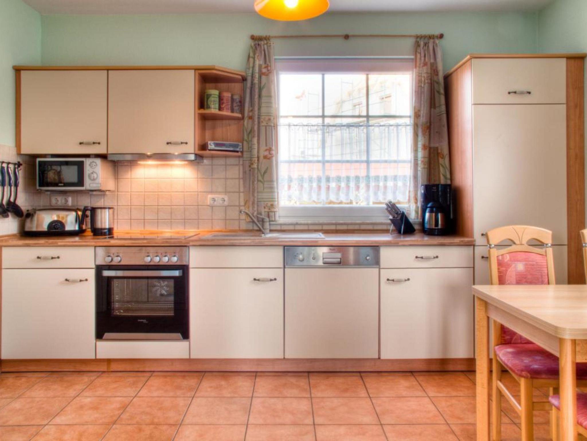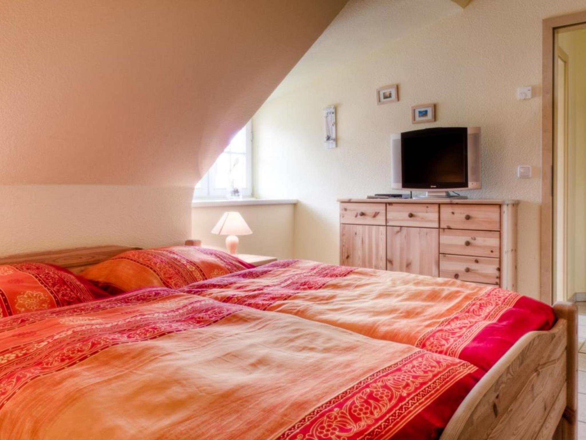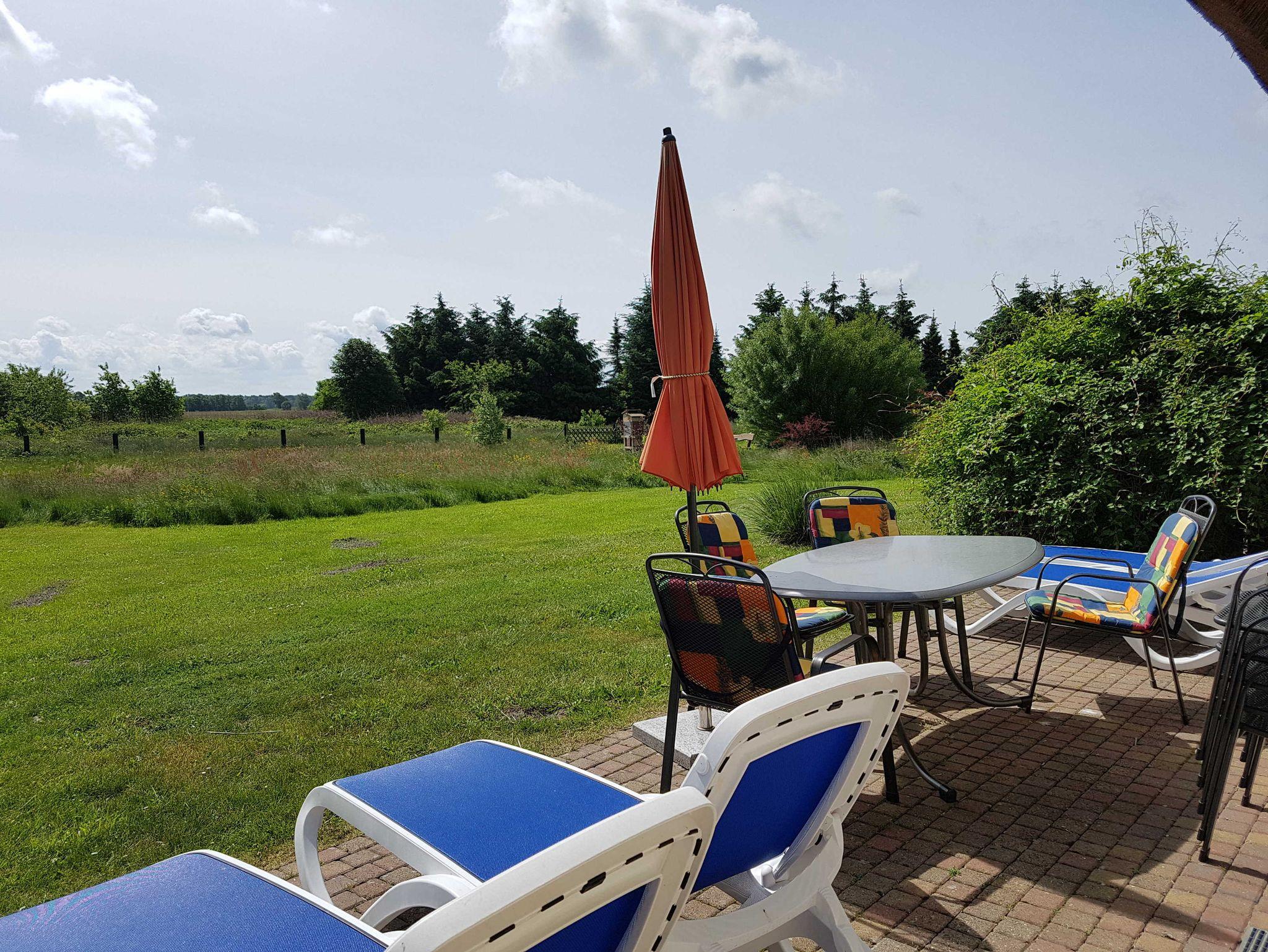 Haushälfte Daniela WHN 2 für 2-8 Personen mit 1 Kleinkind. Wohnraum mit kompletter Einbauküche (Herd/Backofen, Spülmaschine, Mikrowelle und Kühlschrank mit TK-Fach), einem Kaminofen. 1 Schlafzimmer mit Doppelbett und Einzelbett, 1 Schlafzimmer mit 1 Einzelbett, 1 Schlafzimmer mit Doppelbett mit Treppenzugang zur offenen Galerie mit 2 Betten. 2 Bäder mit Dusche/WC, Infrarotwärmekabine, Waschmaschine. Südterrasse mit Gartenmöbeln, 5.000m² großes Grundstück mit unverbautem, naturnahen Blick über idyllische Salzwiesen nur wenige Gehminuten vom Hafen entfernt.