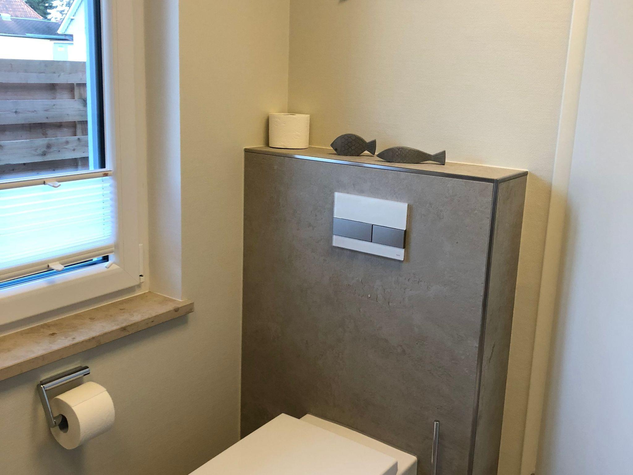 Die Küche ist mit allen wichtigen Geräten sowie ausreichend Geschirr und Besteck ausgestattet. Folgende Haushaltsgeräte sind vorhanden: Mixer, Toaster, Mikrowelle, Kaffeemaschine, Wasserkocher, Kühlschrank mit Gefrierfach, Backofen, 4-Platten-Ceran-Kochfeld, Eierkocher, Spülmaschine und Teekanne. Im Erdgeschoss befindet sich auch das große Duschbad mit WC und Haartrockner.