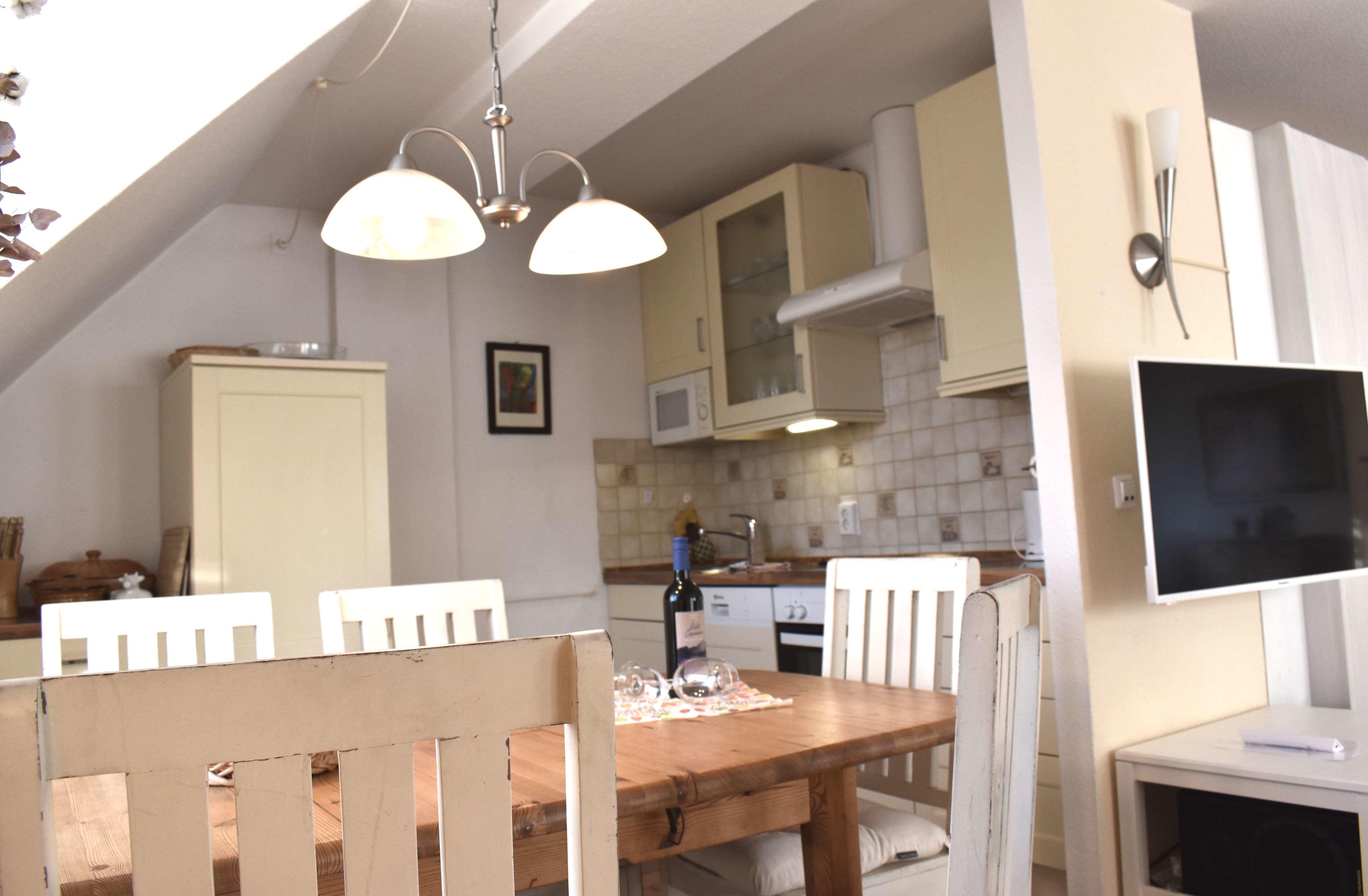 WLAN über ein gesichertes Netwerk können Sie in allen Wohnungen empfangen. Zu unserem Service gehören bezogene Betten und Handtücher.