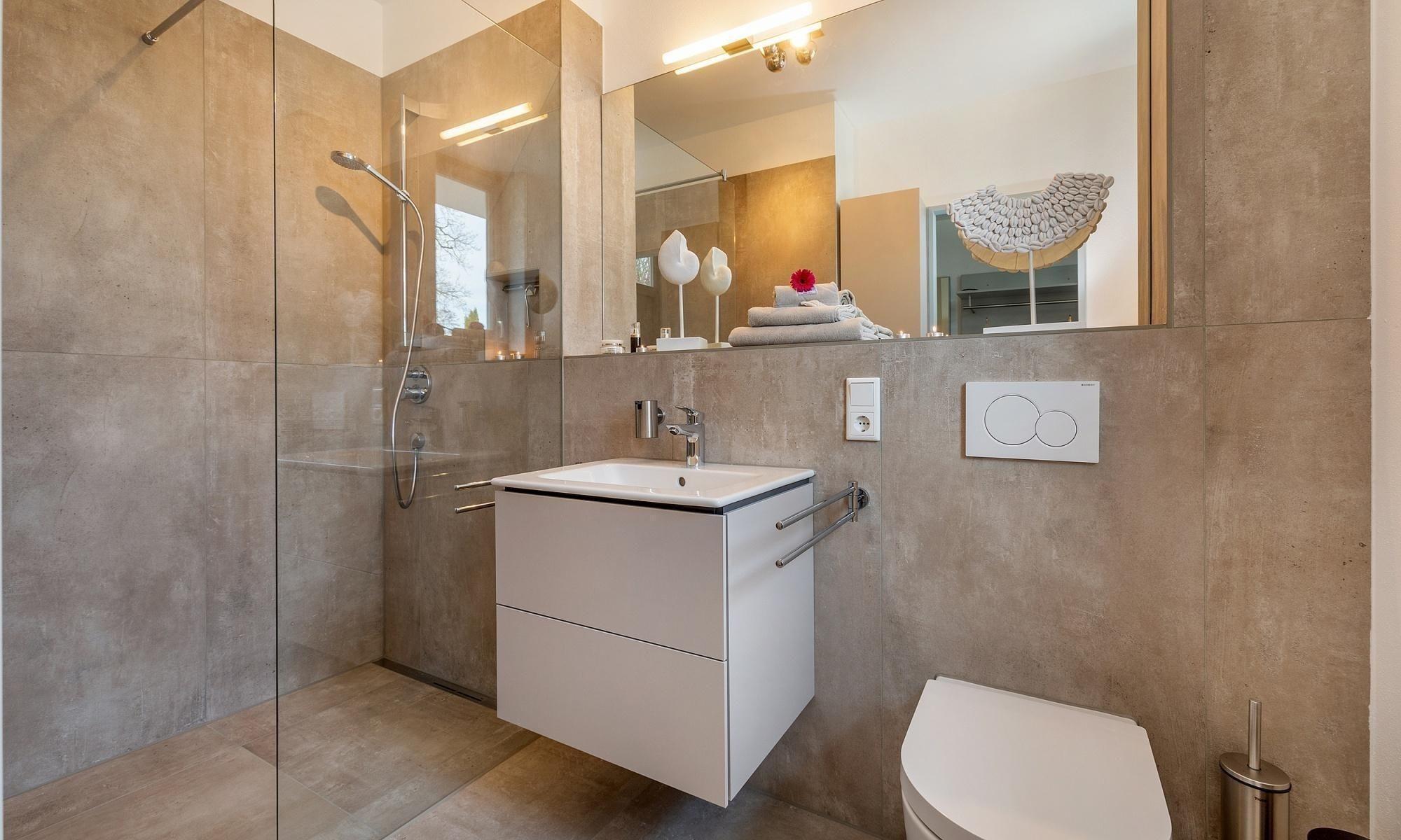 Die Ferienwohnung überzeugt durch ihre großzügigen und barrierefreien Räume, die ideal für Senioren und Allergiker geeignet sind. Das Wohnschlafzimmer verfügt über eine komfortable Schlafcouch mit einer Matratze von 160x200 cm sowie über ein Boxspringbett von 180x200 cm und einem TV für entspannte Abende. Die offene Küche ist vollständig ausgestattet mit einem Geschirrspüler, Elektro-/Gasherd, Backofen, Kühlschrank, Kaffeemaschine, Wasserkocher und Toaster – perfekt für gesellige Kochabende am großen Esstisch. Das Badezimmer bietet eine bodengleiche Dusche und ein Fenster, während das gemütliche Wohnzimmer mit Kamin und HiFi-Anlage zum Entspannen einlädt. Zu den weiteren Annehmlichkeiten gehören WLAN, Parkplatz, Waschmaschine, Wäschetrockner und Brettspiele. Fliegengitter sorgen für eine angenehme Atmosphäre in der gesamten Wohnung. Ein idealer Rückzugsort für jeden Gast.