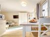 Der Küchenbereich ist mit zwei Elektrokochfeldern, Kaffeemaschine, Wasserkocher, Toaster und einem Kühlschrank ausgestattet.