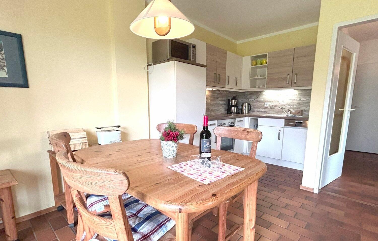 WLAN über ein gesichertes Netwerk können Sie in allen Wohnungen empfangen. Zu unserem Service gehören bezogene Betten und Handtücher.
