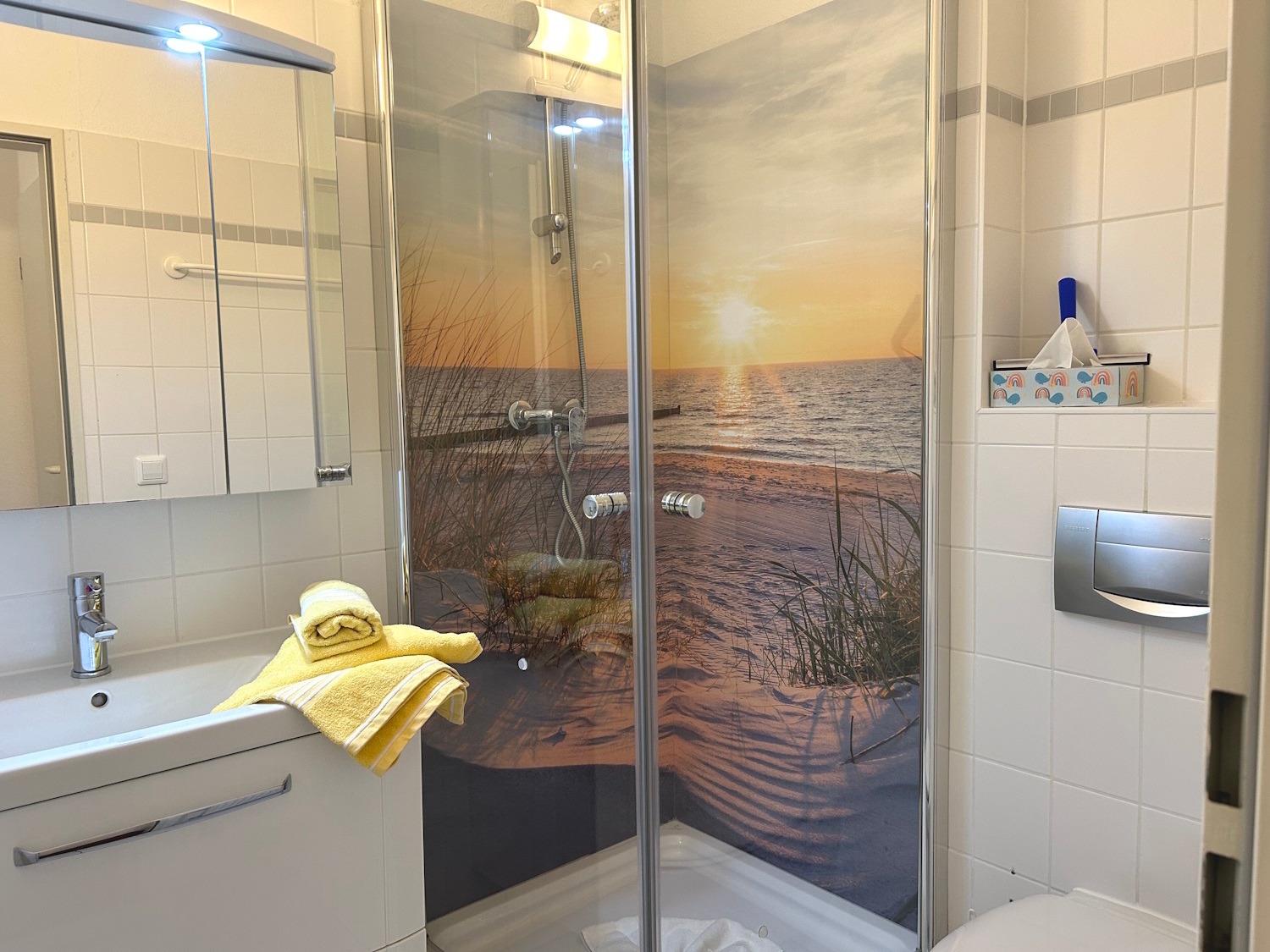 Der vom Meer immer neu angelandete Sand am Nordstrand ist so fein wie in der Karibik und liegt nur 15 Gehminuten entfernt. Die Häuser sind zum Teil reetgedeckt, wie es typisch ist für die Ostseeregion.