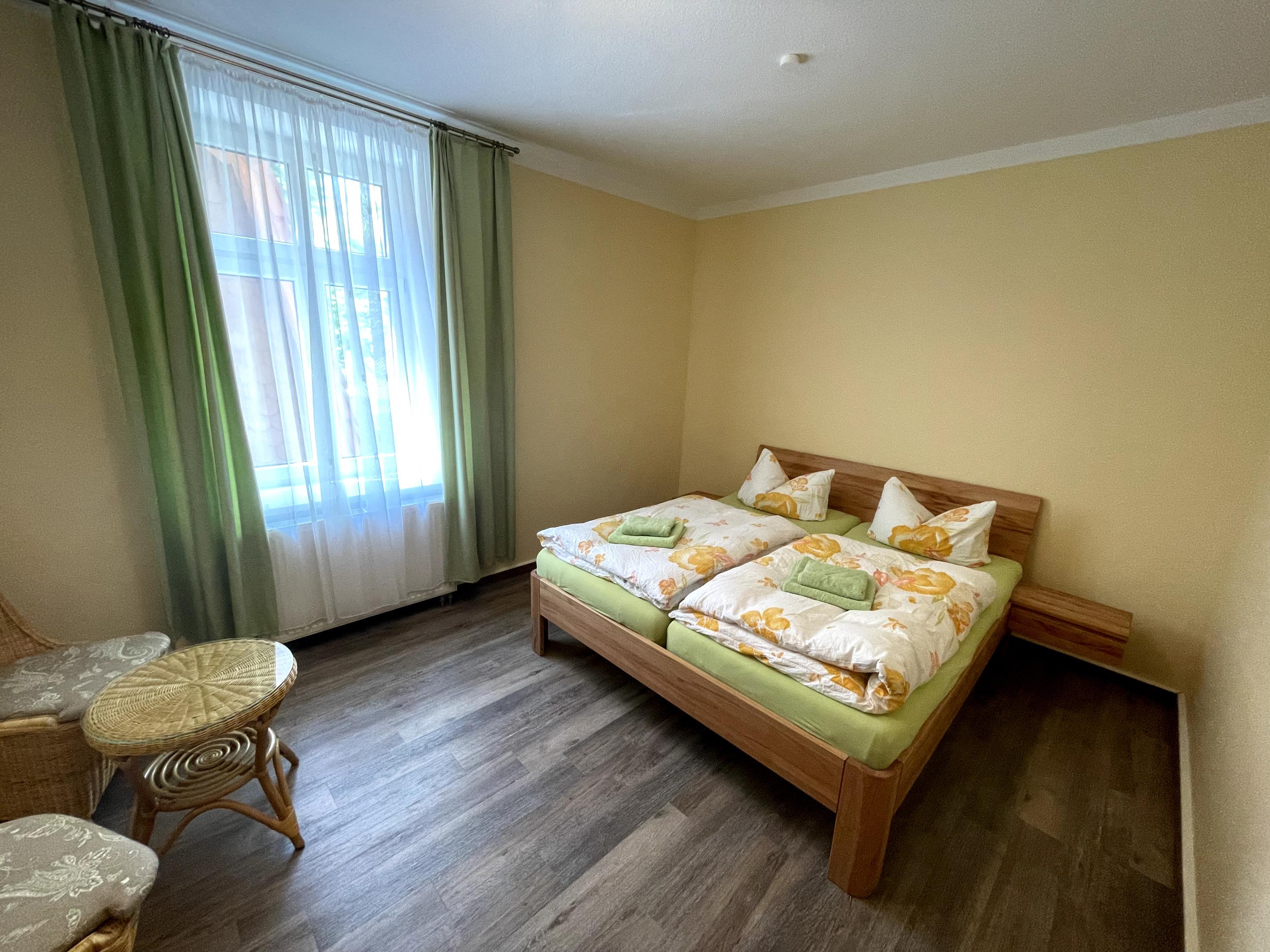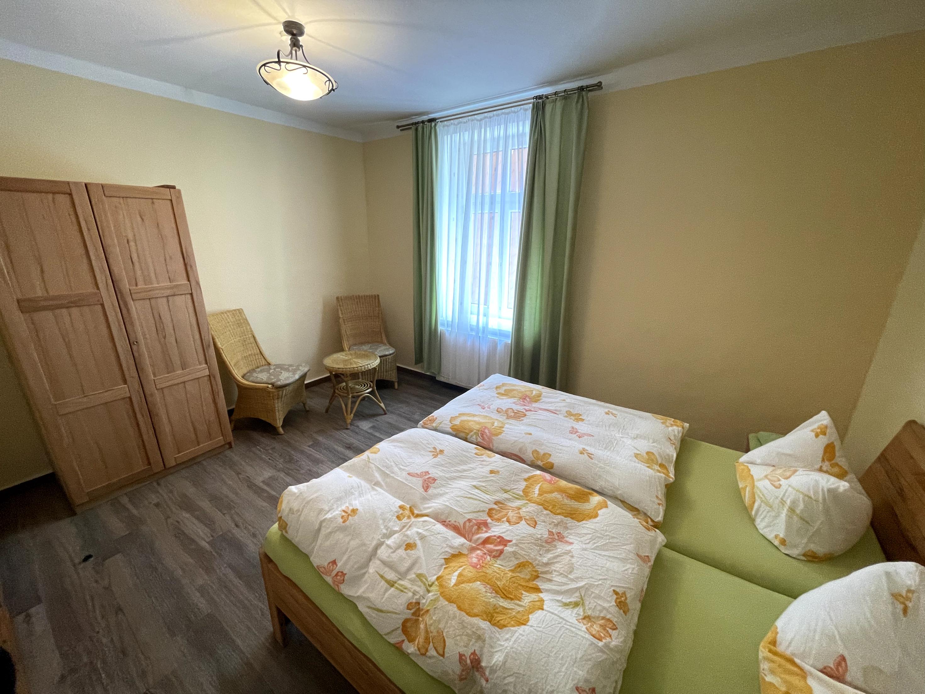 Die im kolonialen Landhausstil eingerichtete Mansarden- Ferienwohnung befindet sich auf einem großen Grundstück und verfügt über ein geräumiges Bad mit Dusche und Bidet. Die Küche ist hochwertig ausgestattet. Ein Kinderstuhl sowie Kinderbett sind vorhanden. Beide Schlafzimmer haben ein Doppelbett. Wir stellen Bettwäsche, Handtücher und Badetücher ohne Aufpreis. Bei längerem Aufenthalt werden Bade- und Handtücher getauscht.
