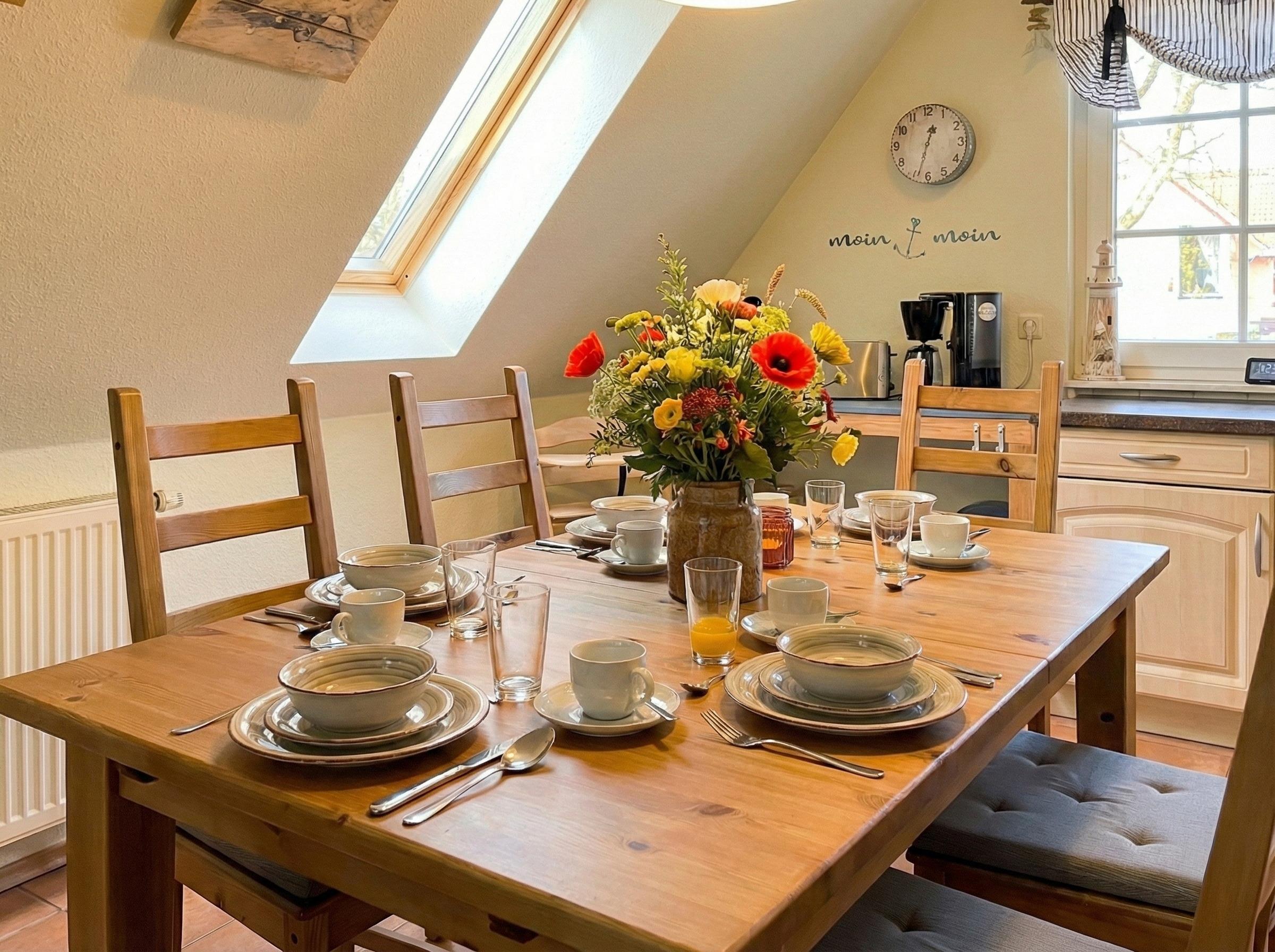 Umgeben von Natur, nur wenige Minuten vom feinsandigen Nordstrand und dem Darßer Wald entfernt, verbindet diese liebevoll eingerichtete Ferienwohnung modernen Komfort mit wohliger Gemütlichkeit. Auf 62 m² genießen bis zu 5 Personen entspannte Urlaubstage – ideal für Familien oder Freunde, die Prerow in seiner schönsten Form erleben möchten.