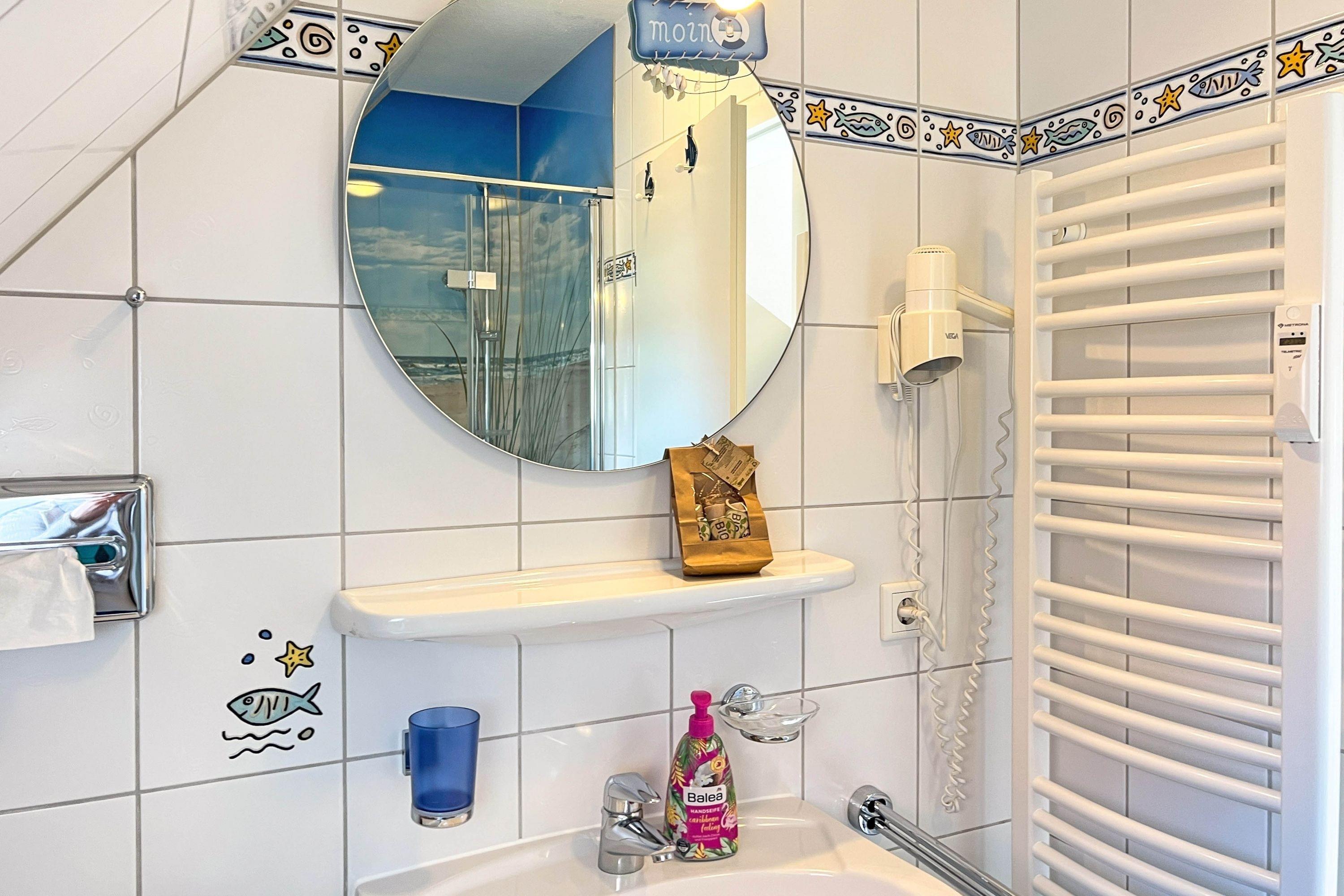 Badezimmer: Modernes Bad mit Dusche/WC, Haartrockner und Fliegengitter
