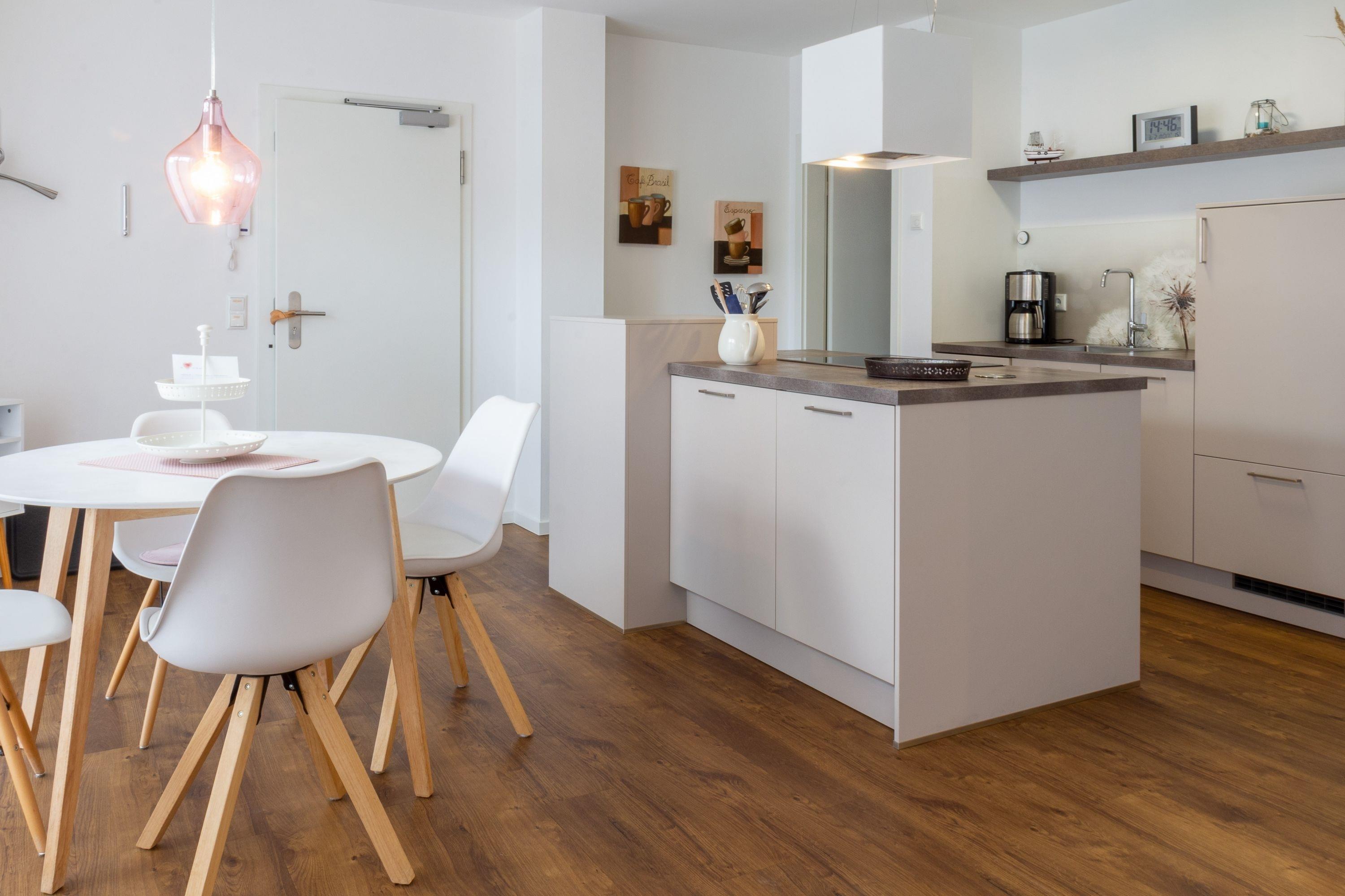 Die Ferienwohnung "Sterntaucher, Whg. 02" empfängt Sie mit einer harmonischen Kombination aus modernem Komfort und maritimem Ambiente. Der helle Wohnbereich lädt zu entspannten Stunden ein, während die voll ausgestattete Küchenzeile keine Wünsche offenlässt. Genießen Sie Ihre Mahlzeiten auf der eigenen Terrasse mit Blick ins Grüne. Das moderne Badezimmer und das gemütliche Schlafzimmer bieten zusätzlichen Komfort für erholsame Nächte.