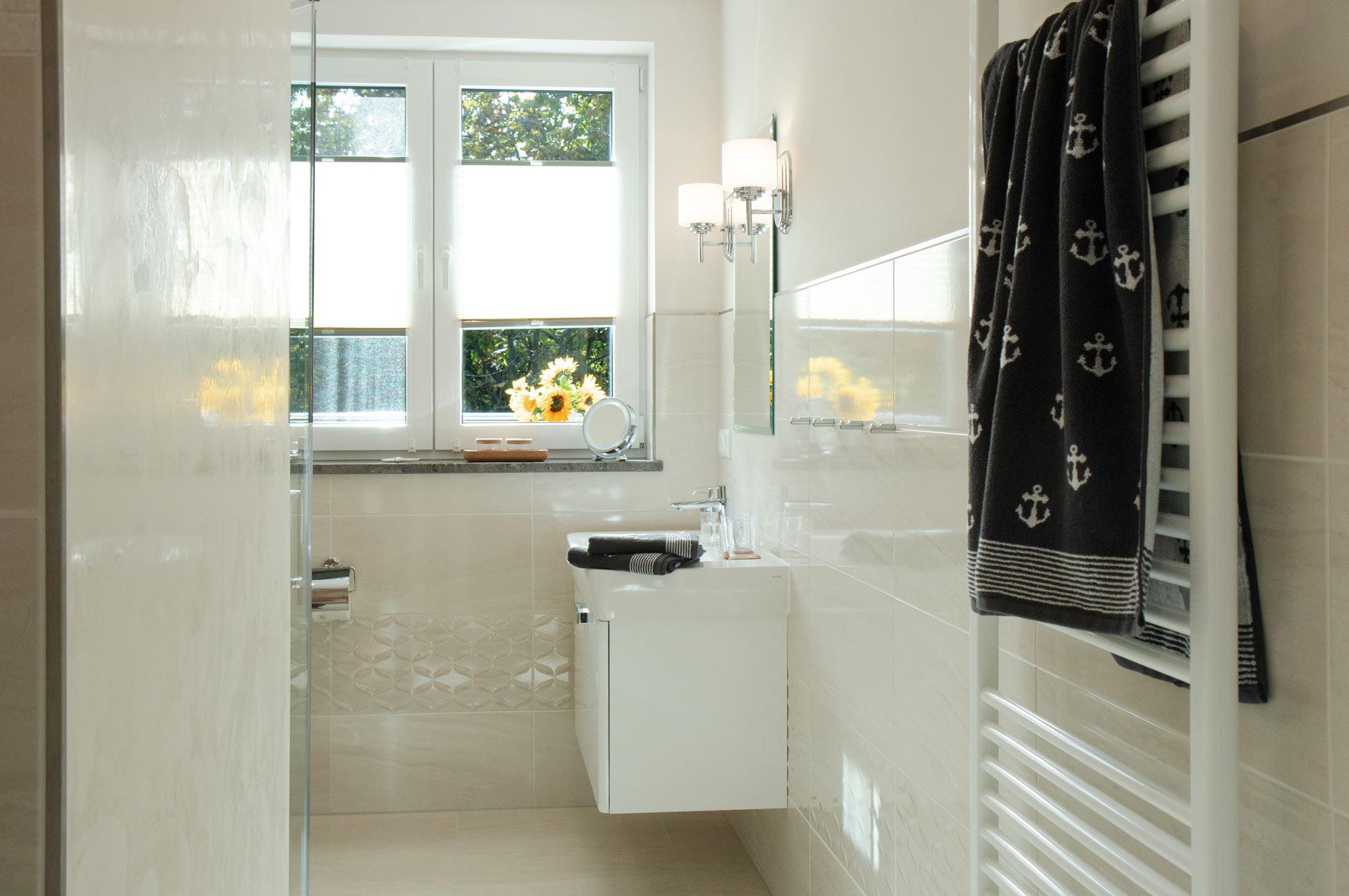 Willkommen in der Ferienwohnung "Sterntaucher, Whg. 05" in Prerow! Diese elegante Unterkunft bietet auf 66 m² Platz für bis zu 2 Personen und verbindet modernen Komfort mit maritimem Flair.