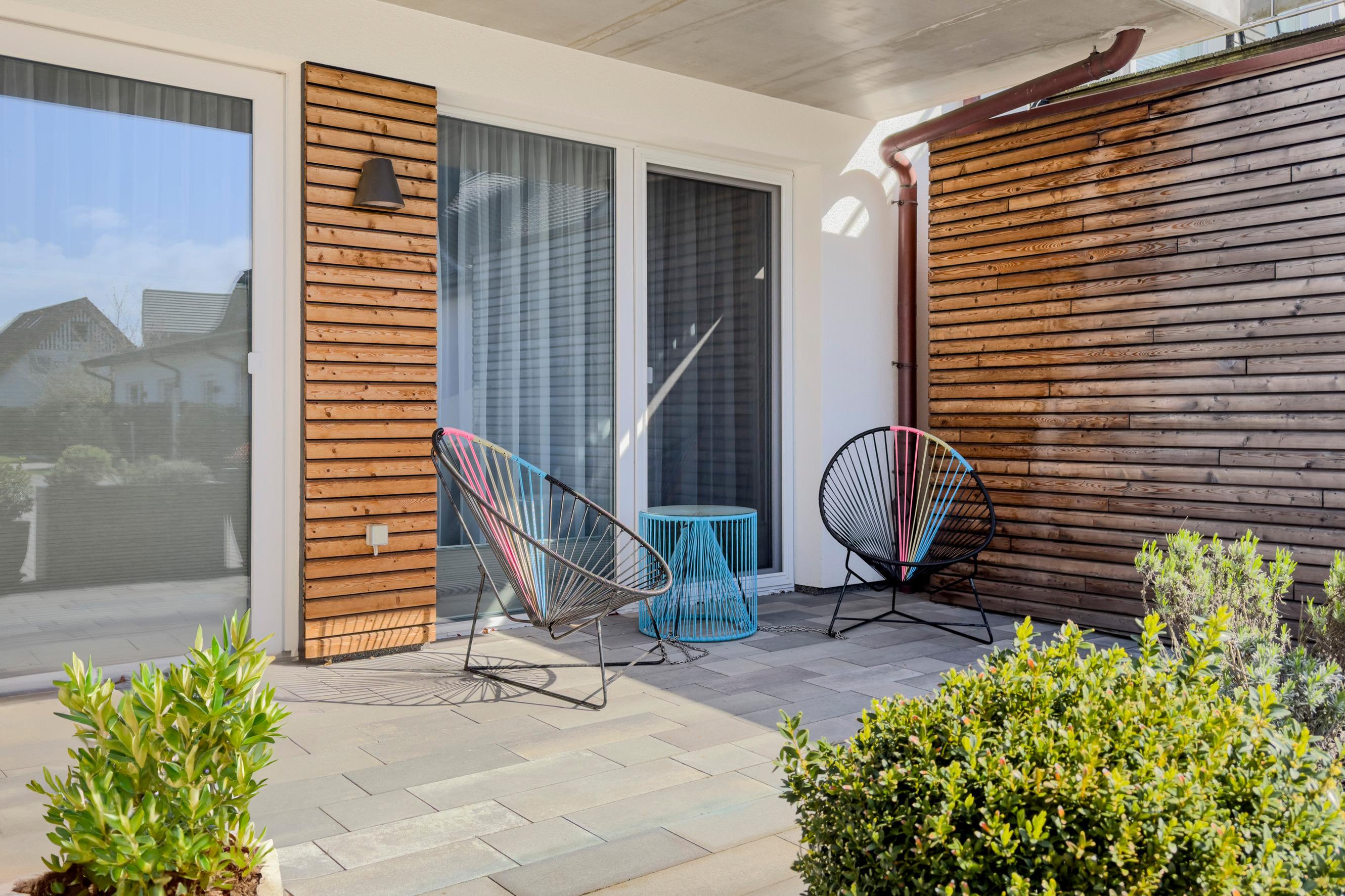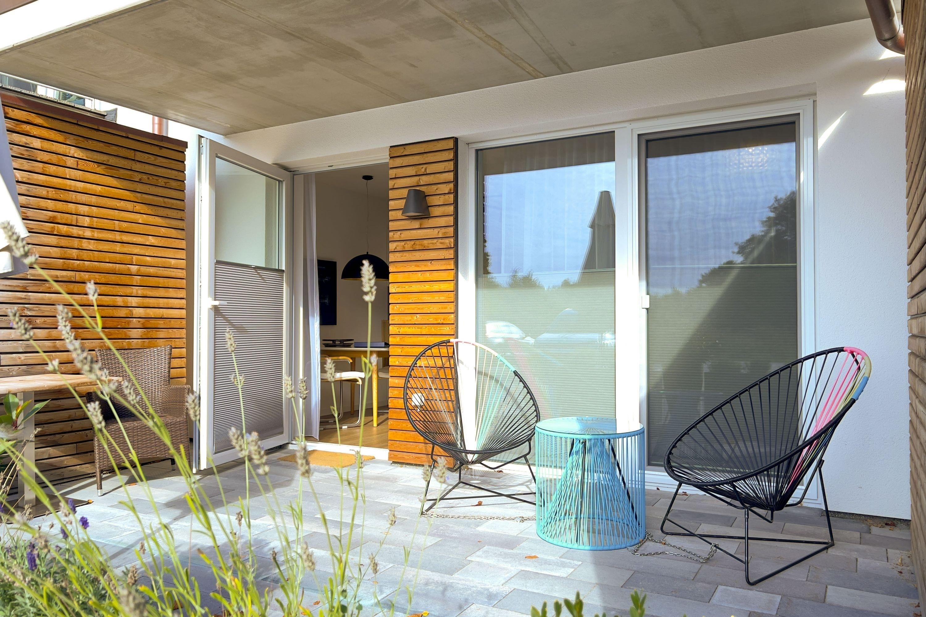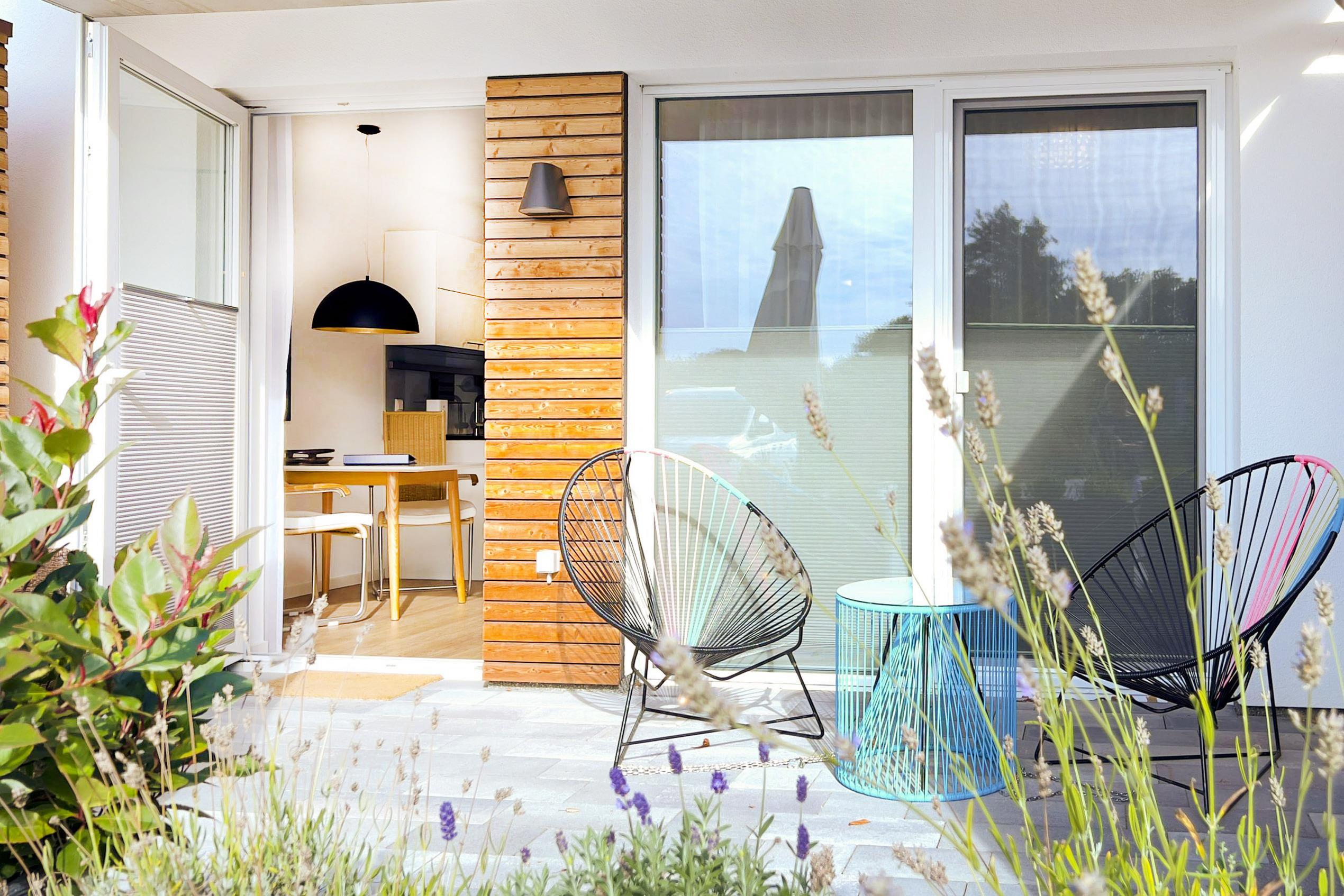 Terrasse: Westlich ausgerichtet mit Gartenmöbeln, ideal zum Entspannen und Genießen des milden Ostseeklimas