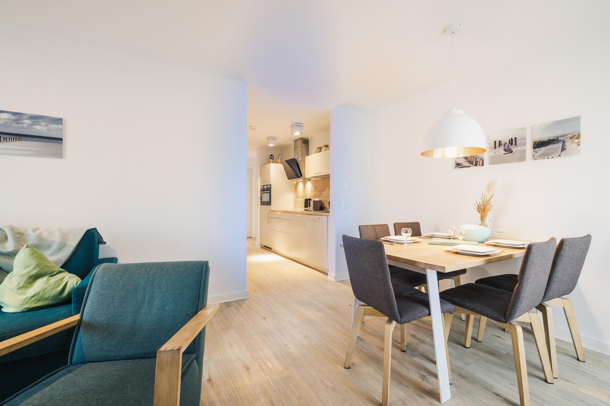 Diese moderne 3-Zimmer-Wohnung im Obergeschoss bietet auf ca. 60 m² Wohnfläche den idealen Rahmen für Familien, Paare oder Freunde. Mit Platz für bis zu vier Personen, einer hochwertigen maritimen Ausstattung und einer angenehmen Raumaufteilung ist dieses Appartement der perfekte Ort für entspannte Urlaubstage im Ostseebad Prerow.