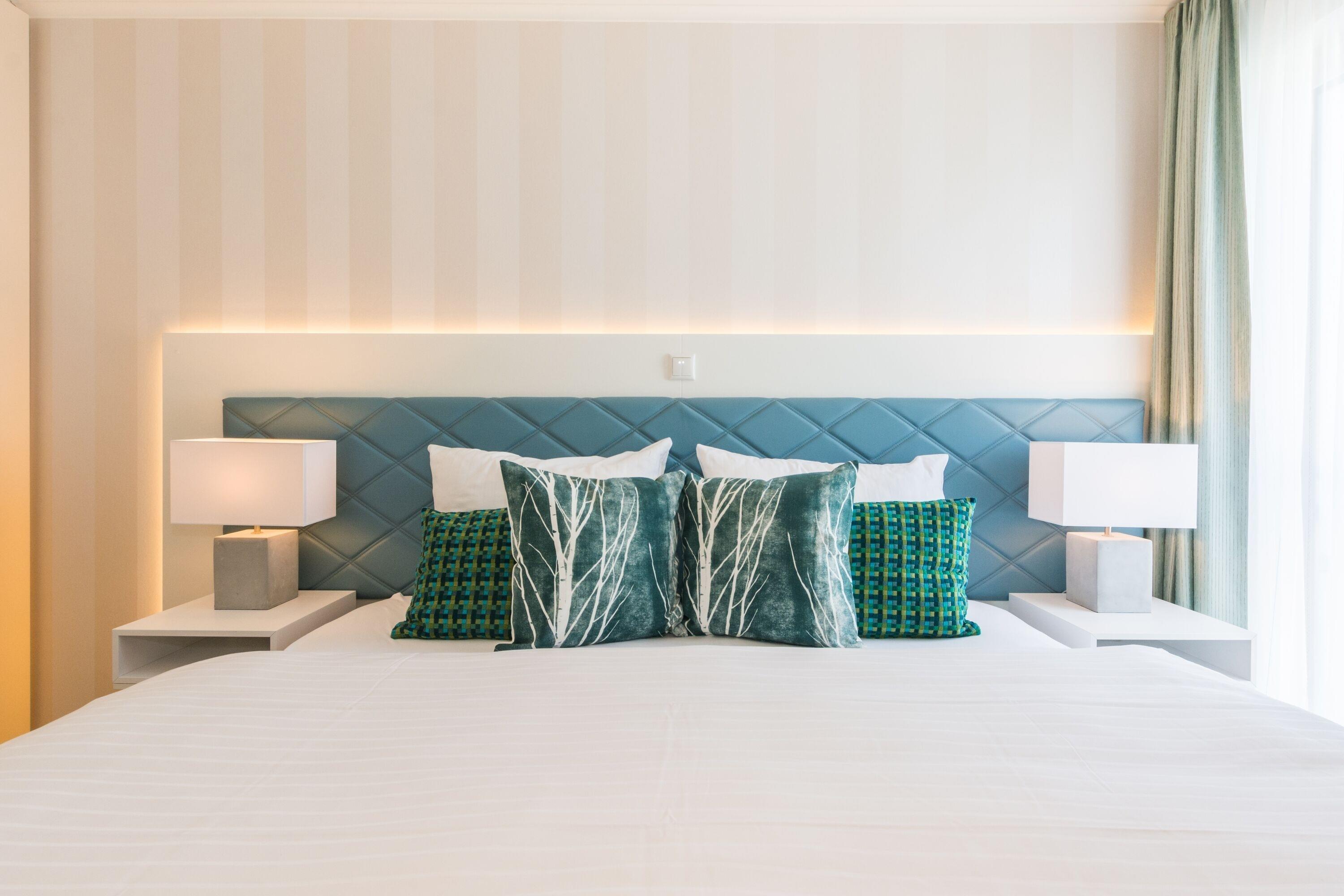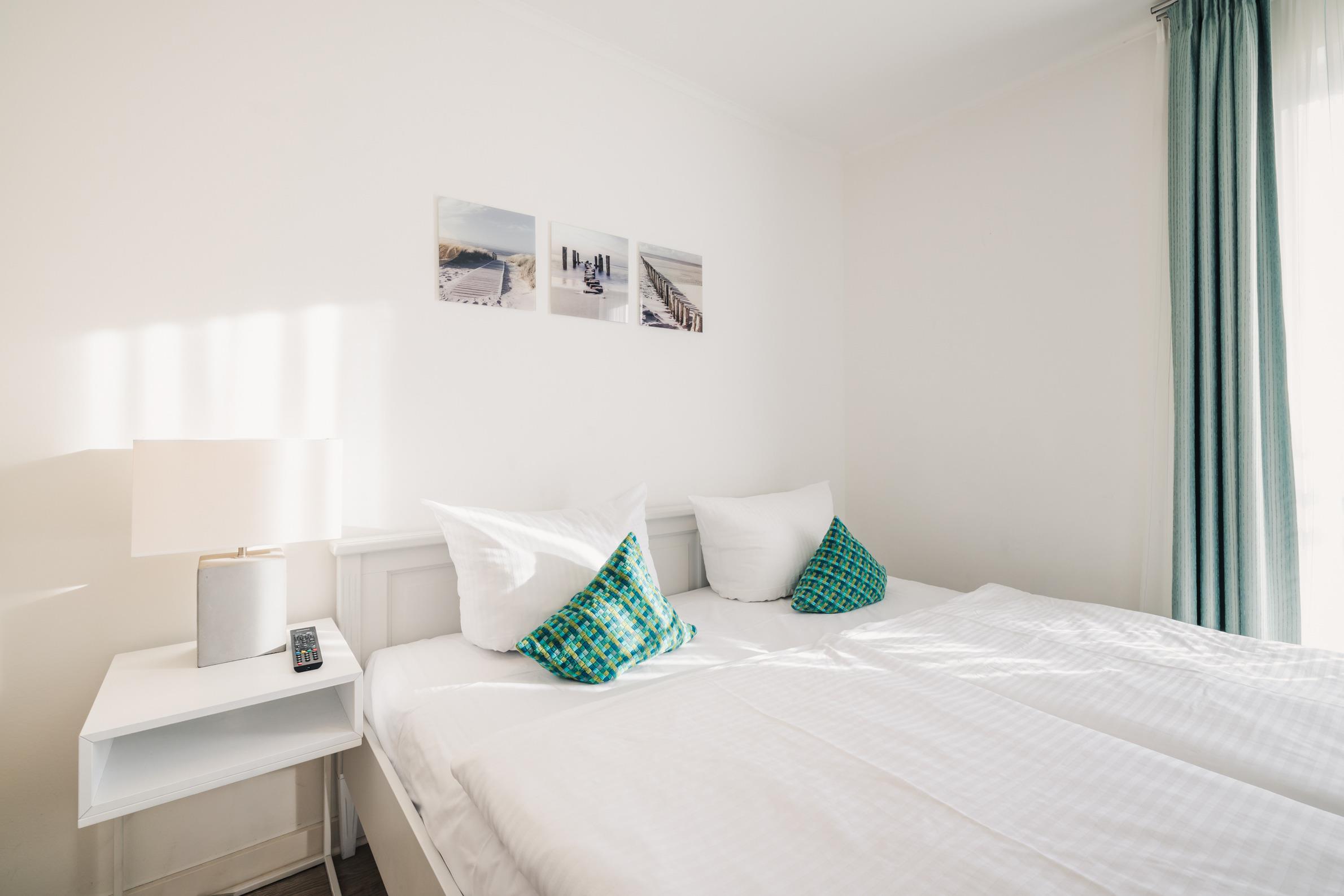 Zwei separate Schlafzimmer mit komfortablen Boxspring-Doppelbetten und TV sorgen für ruhige Nächte. Der wohnlich gestaltete Aufenthaltsbereich mit großer Schlafcouch und Flat-TV lädt zu gemeinsamen Stunden und gemütlichen Abenden ein.