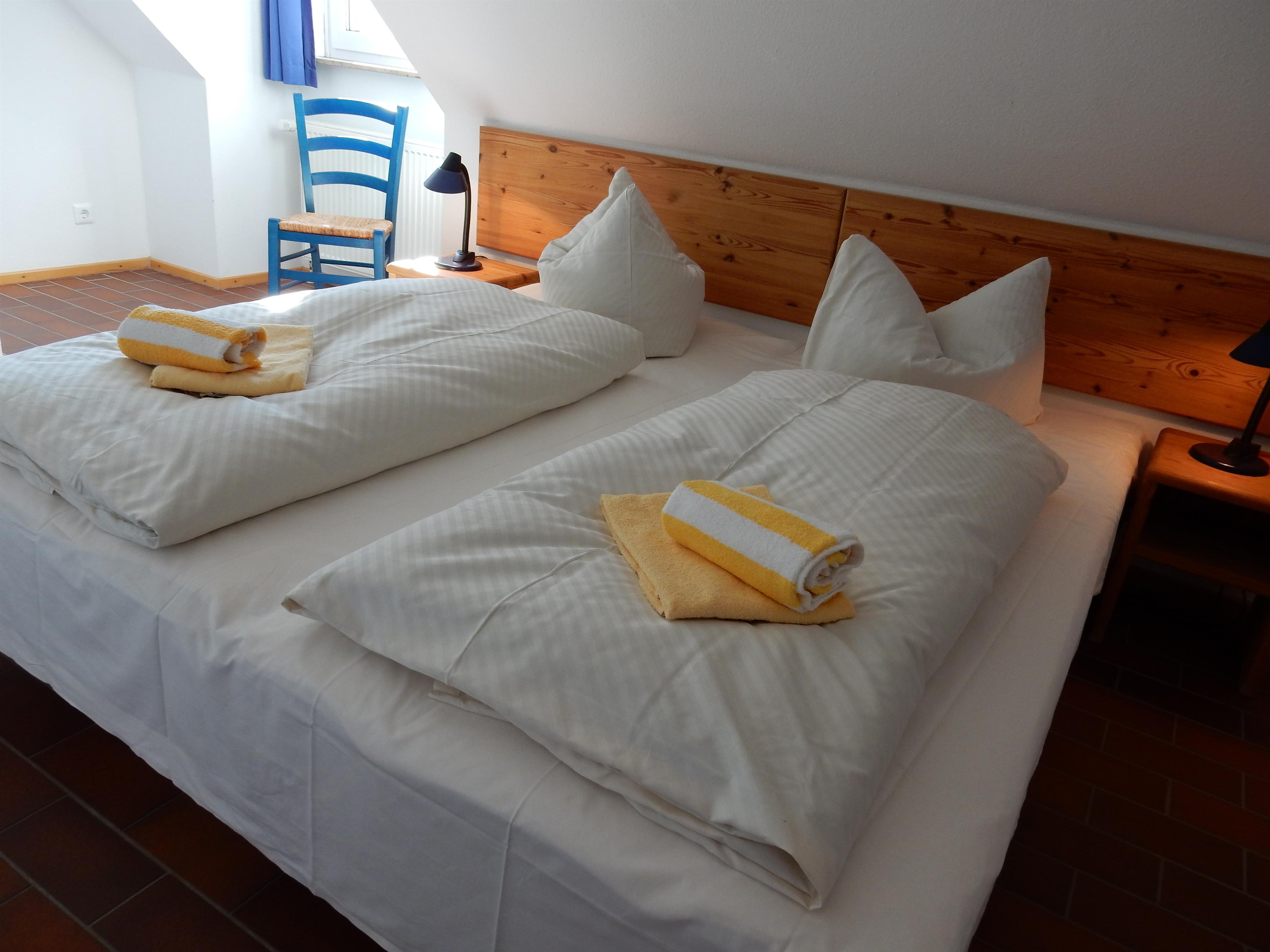 3 room maisonette about 75 sqm for 2-4 persons. 1st floor: living room with a large couch, modern kitchen, bar and dining table, SAT-TV/radio, WLAN, modern bathroom/WC, balcony, 2nd floor: bedroom with double bed, satellite TV, bedroom with 2 single beds, shower/WC
