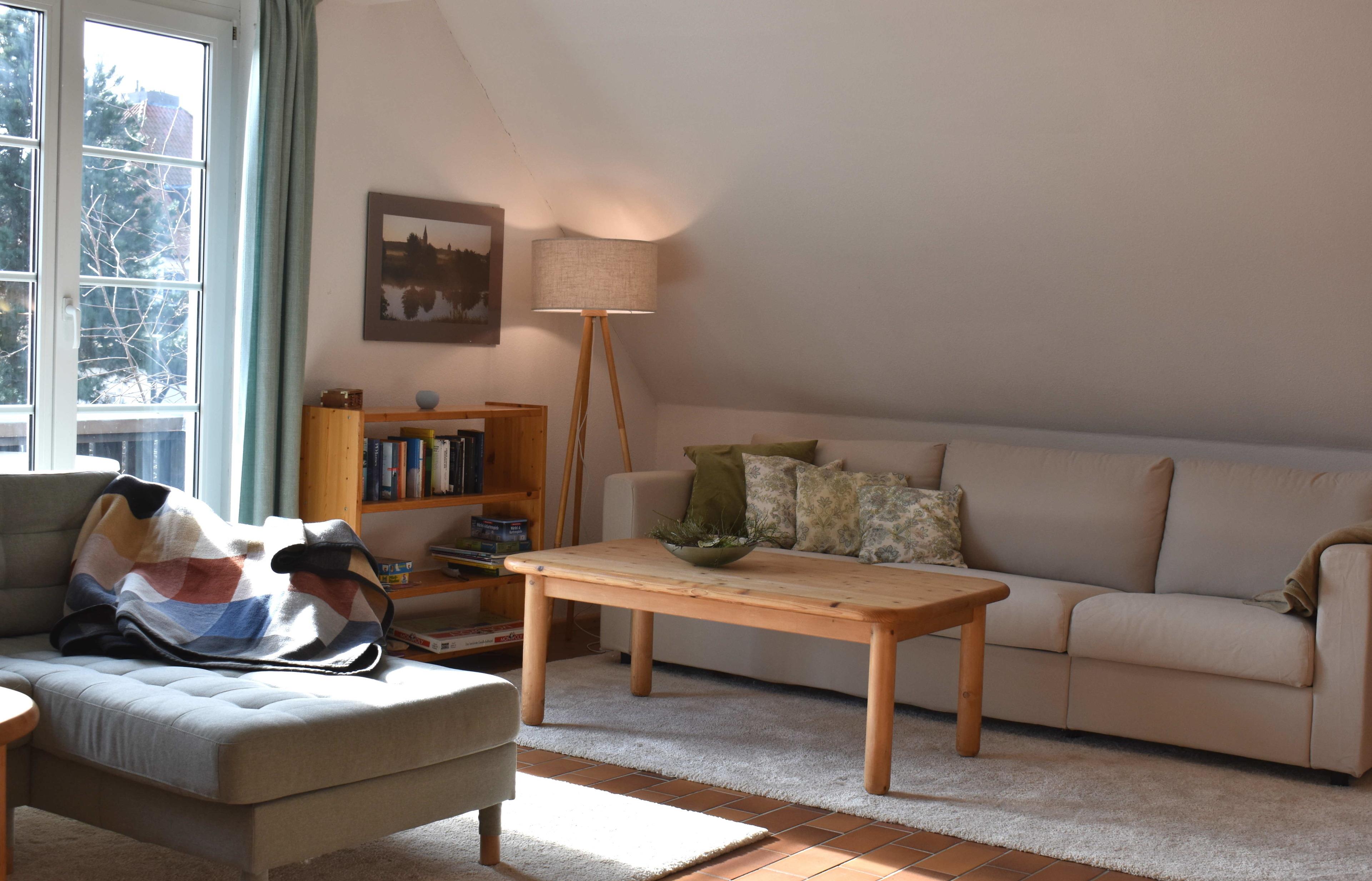 Die Ferienwohnungen bestehen aus zwei Zimmern mit 54 qm für zwei bis vier Personen oder drei Zimmer-Maisonette mit 75 qm für zwei bis sechs Personen und sind voll möbliert.