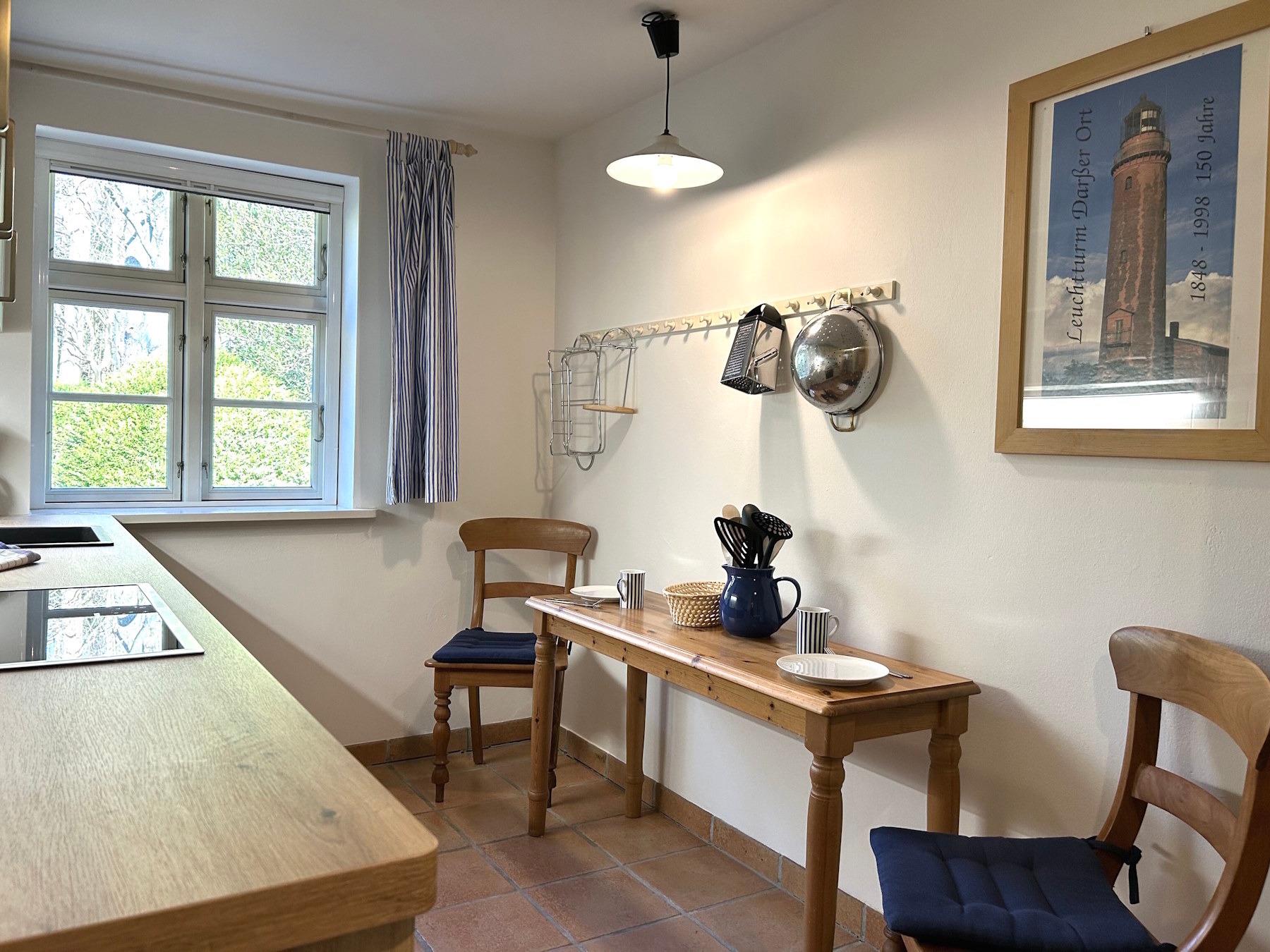 In der Ferienanlage Eichenpark direkt am Darßwald, ruhig und doch zentral gelegen, ca. 800 Meter vom Strand entfernt, liegt diese Ferienwohnung im denkmalgeschützten Reetdachhaus, liebevoll, urig und nostalgisch eingerichtet.