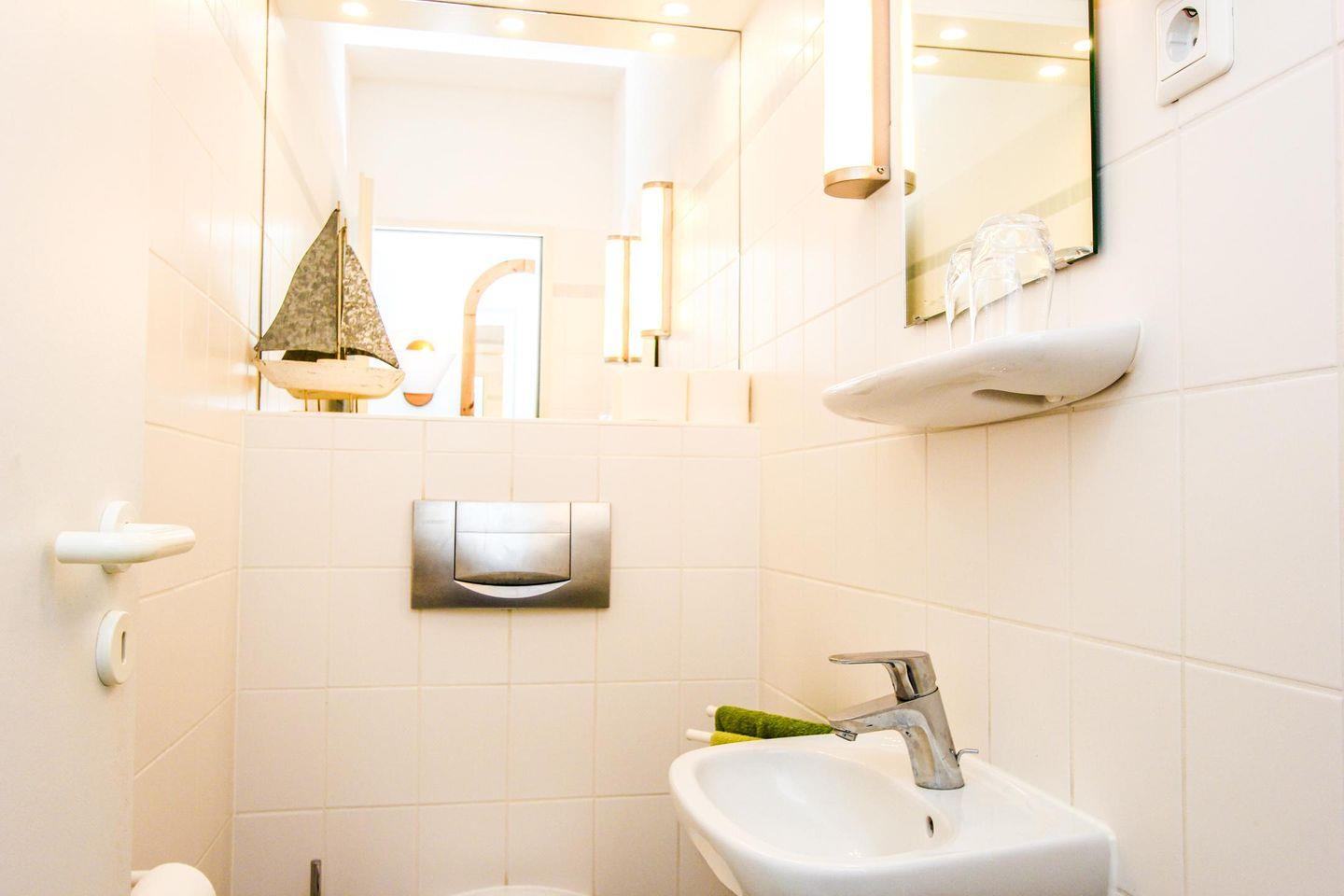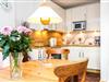 Durch die eigens genutzte, ortstypische Darßer Haustür gelangen Sie in das helle Wohnzimmer und den großen Essbereich der Wohnung mit der gut ausgestatteten, angrenzenden Küche. Über die Terrassentür betreten Sie die schöne Holzterrasse.