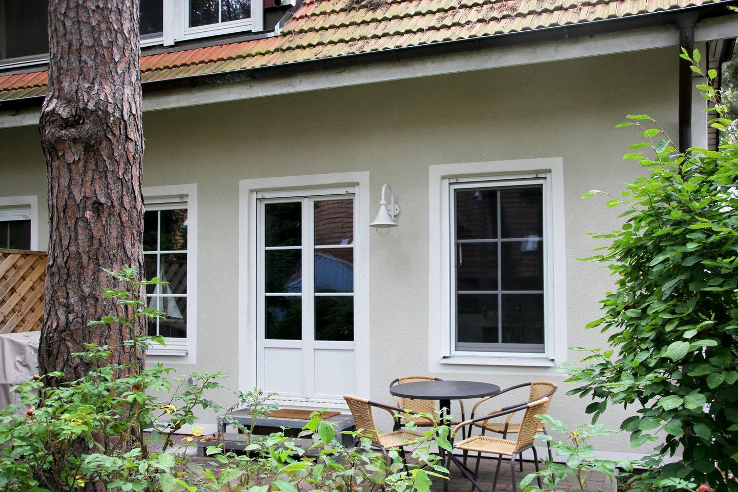 Vom Wohnzimmer gelangen Sie auf die Terrasse, welche mit Gartenmöbeln ausgestattet ist. In dem kleinen Schlafzimmer befindet sich ein gemütliches Doppelbett (160x200).