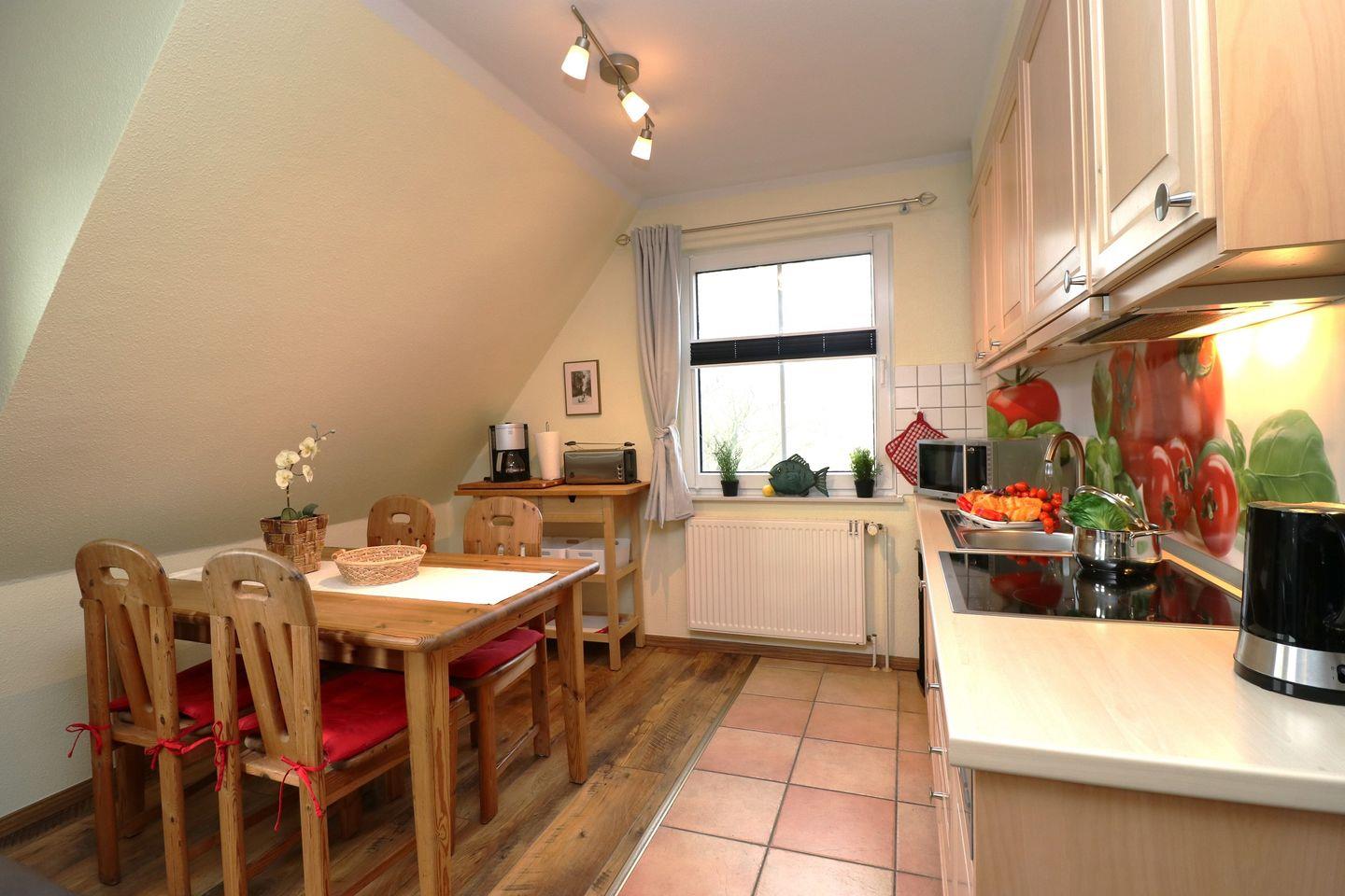 Das gepflegte Appartement „Likedeeler“ befindet sich im Obergeschoss des Hauses und bietet auf 62 m² Platz für bis zu 4 Personen. Es eignet sich ideal für Paare oder Familien, die eine komfortable und gut gelegene Unterkunft suchen. Das Appartement verfügt über ein gemütliches Wohnzimmer mit einer integrierten Küchenzeile, in der Sie Ihre Mahlzeiten selbst zubereiten können. Es gibt zwei Schlafzimmer, die jeweils mit einem Doppelbett ausgestattet sind, sowie ein modernes Tageslichtbad mit Dusche und WC. Zu den weiteren Annehmlichkeiten gehören ein kostenloser Pkw-Stellplatz sowie ein abschließbarer Fahrradabstellraum, in dem Sie Ihre Fahrräder sicher unterstellen können. Auf dem Südbalkon können Sie den ganzen Tag über die Sonne genießen und entspannte Stunden im Freien verbringen. Für Ihre Kommunikation steht Ihnen kostenloses WLAN zur Verfügung. Haustiere sind in diesem Appartement herzlich willkommen. Das Rauchen ist jedoch nur auf dem Balkon gestattet, um die Innenräume rauchfrei zu halten. Die öffentliche Haltestelle für den Flixbus und den öffentlichen Nahverkehr Richtung Zingst und Wustrow ist nur 150 m entfernt, was das Appartement zu einem idealen Ausgangspunkt für Ausflüge in die Umgebung macht. Das Appartement „Likedeeler“ bietet Ihnen somit alles, was Sie für einen angenehmen und erholsamen Aufenthalt benötigen – bequem, gut gelegen und gut ausgestattet.