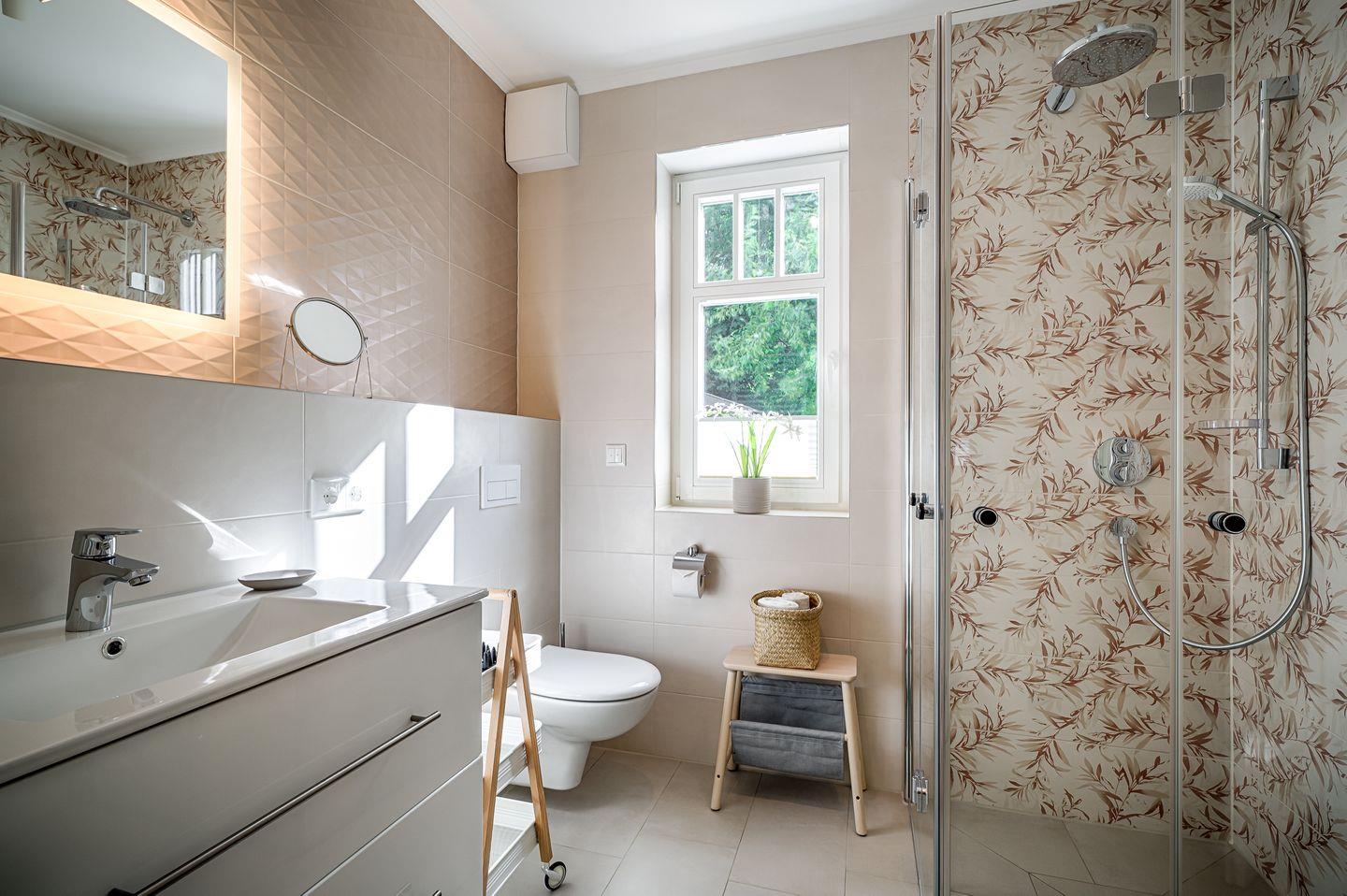 Tageslichtbad mit ebenerdiger Dusche