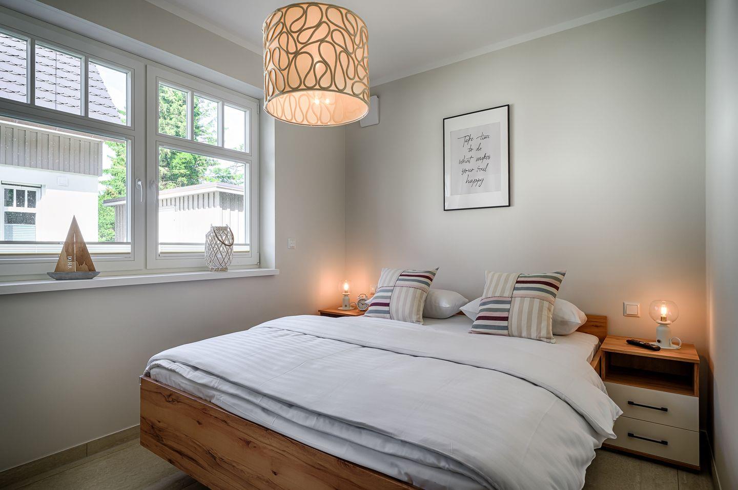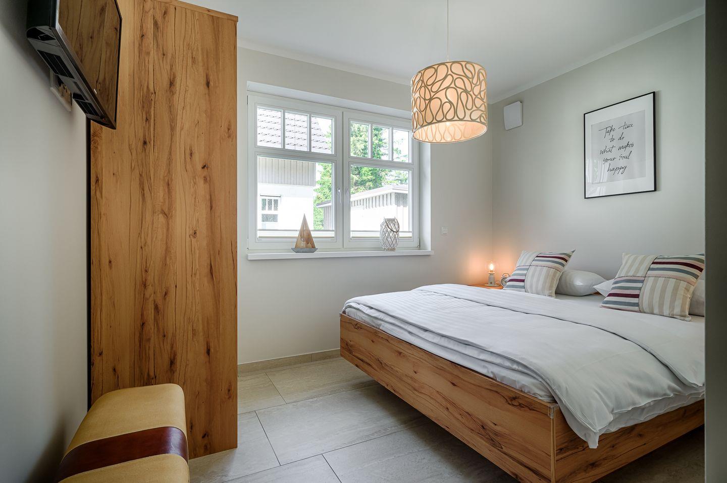 1 Schlafzimmer mit Doppelbett (1,60 x 2,00m) mit verstellbaren Lattenrosten