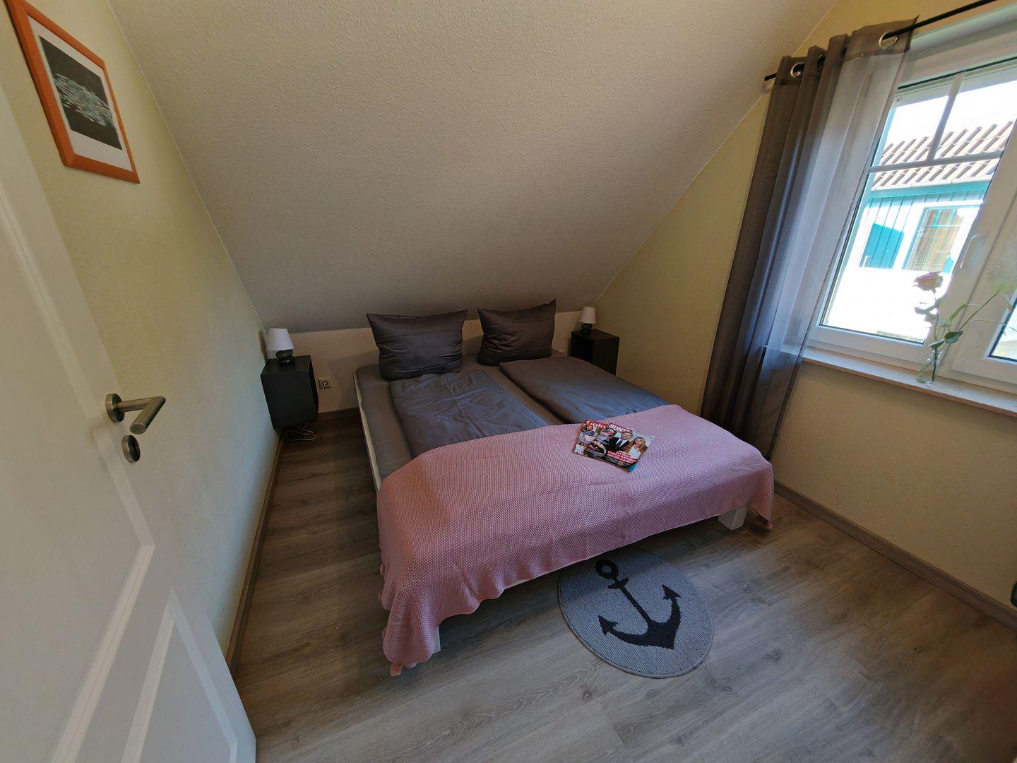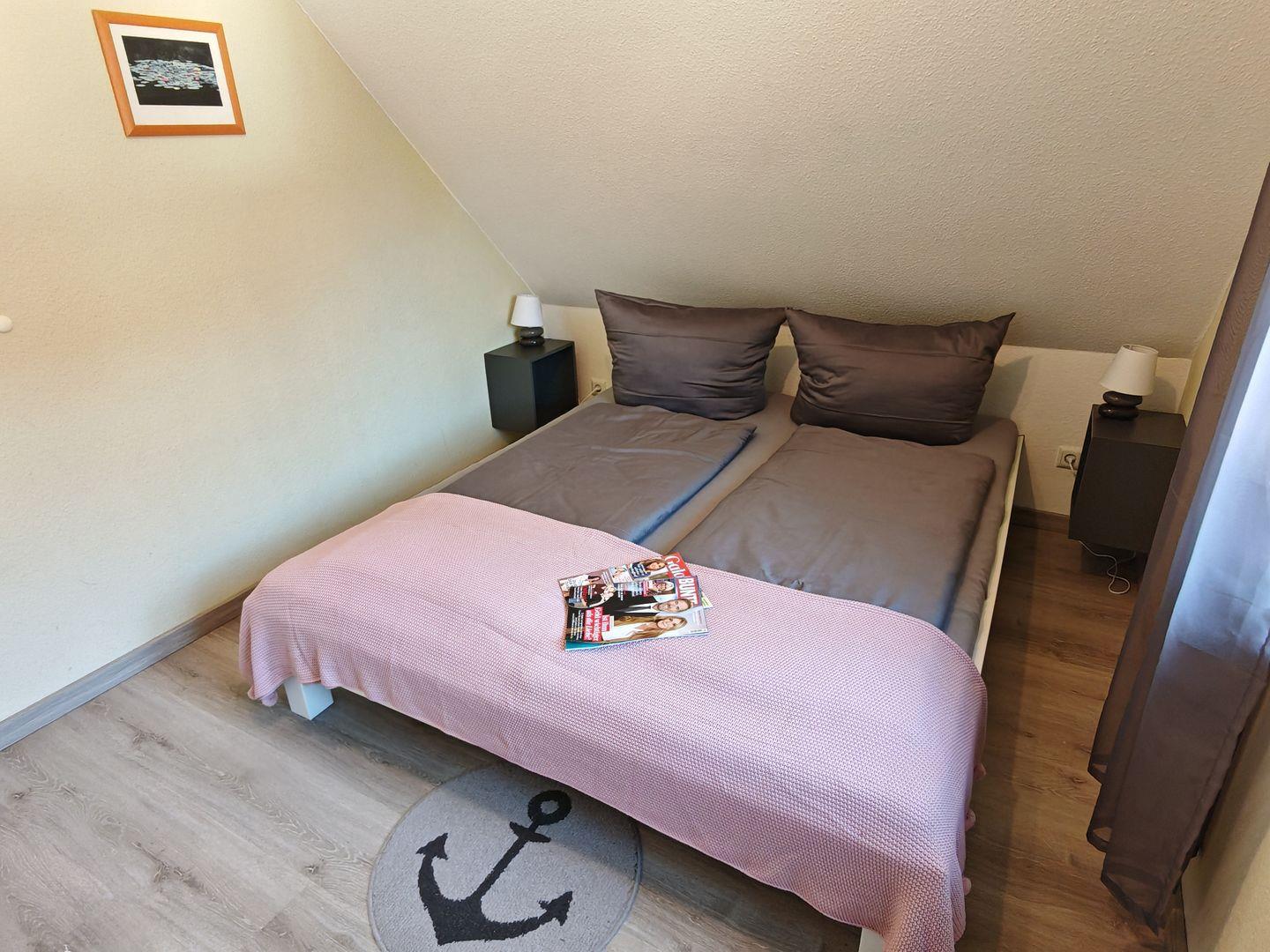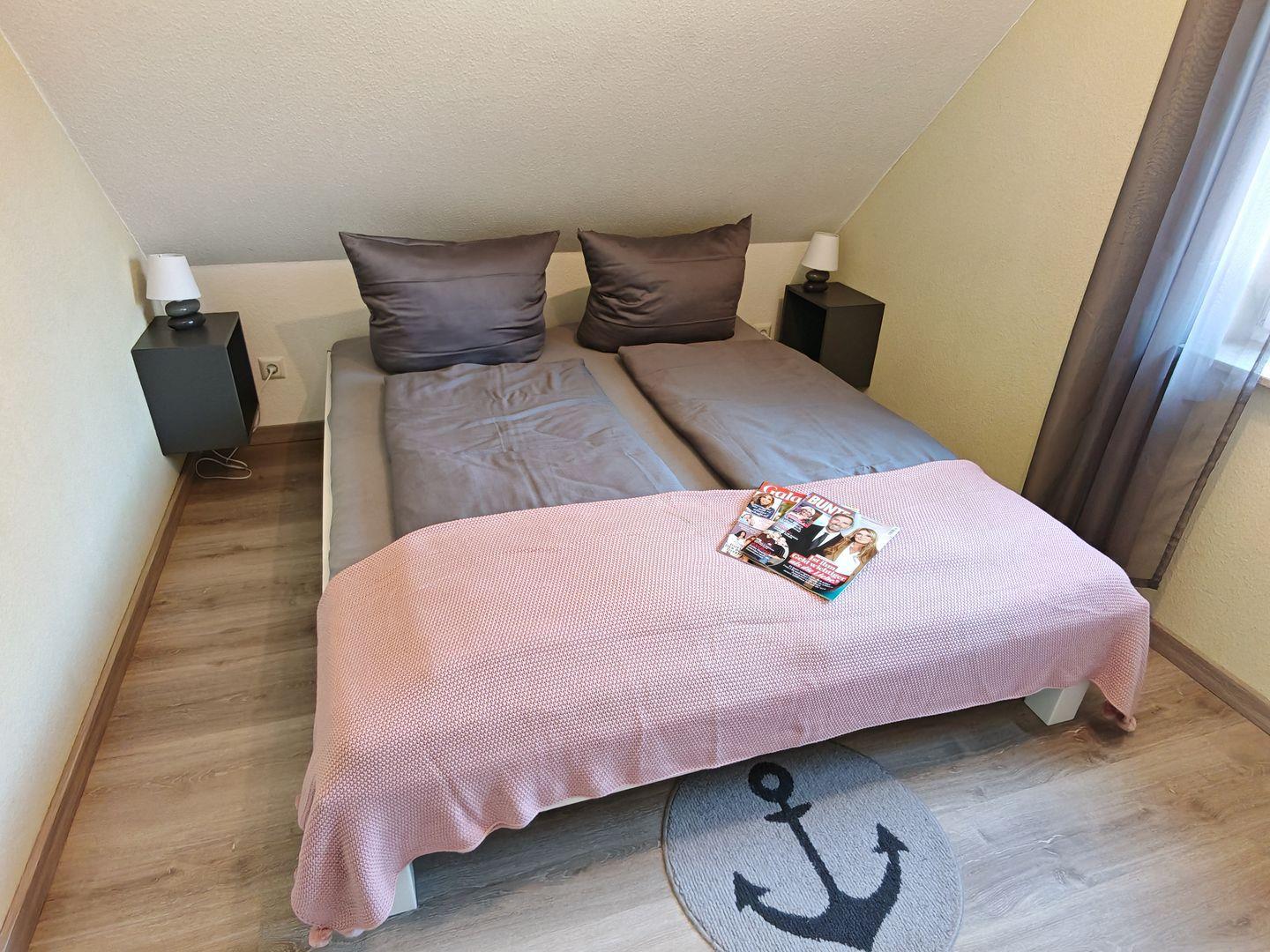 Das Ferienhaus verfügt über insgesamt drei Schlafzimmer, von denen zwei mit komfortablen Doppelbetten und das dritte mit einem ausziehbaren Tagesbett ausgestattet sind. Hier finden bis zu fünf Personen ausreichend Platz für einen erholsamen Schlaf.