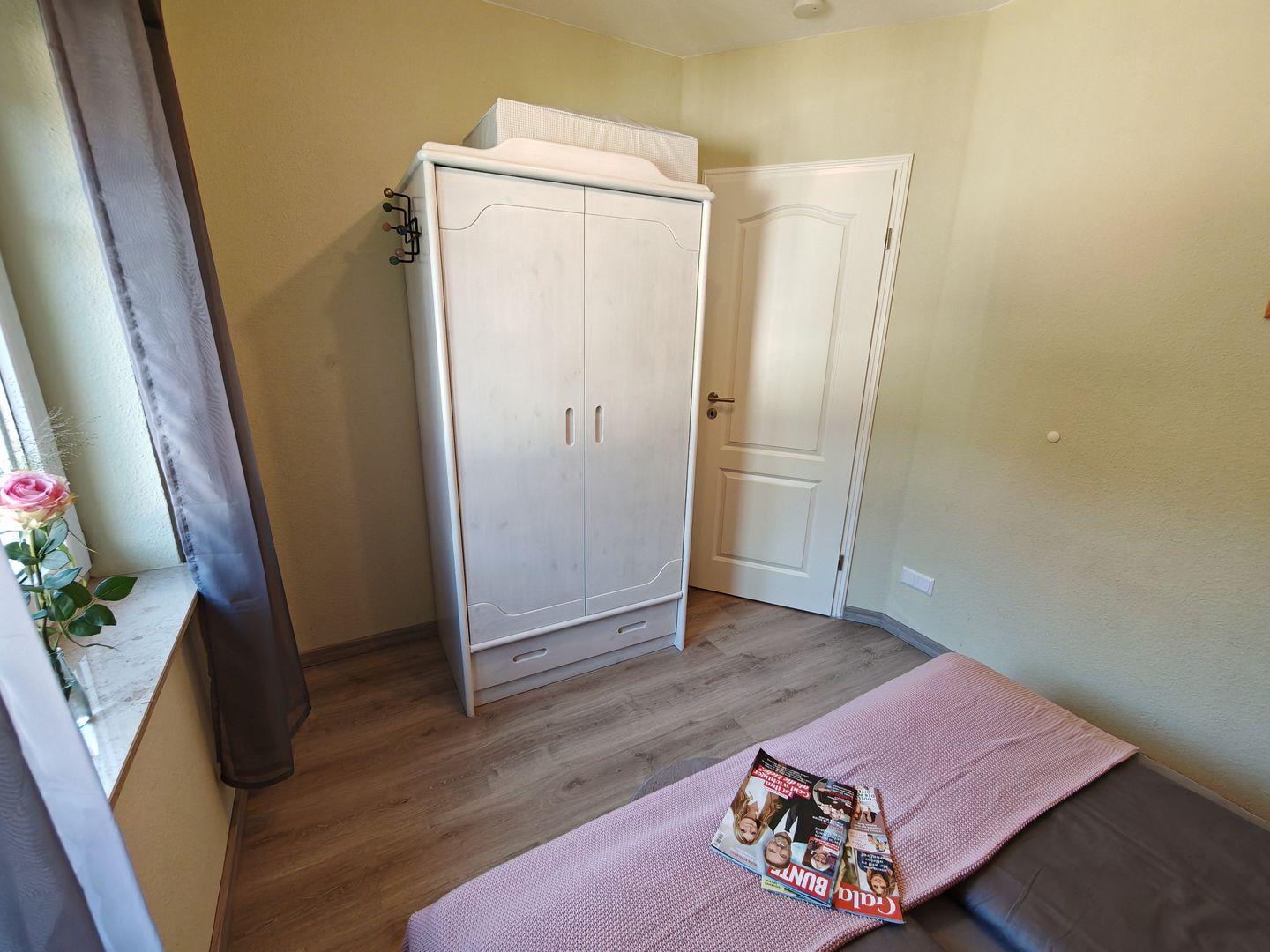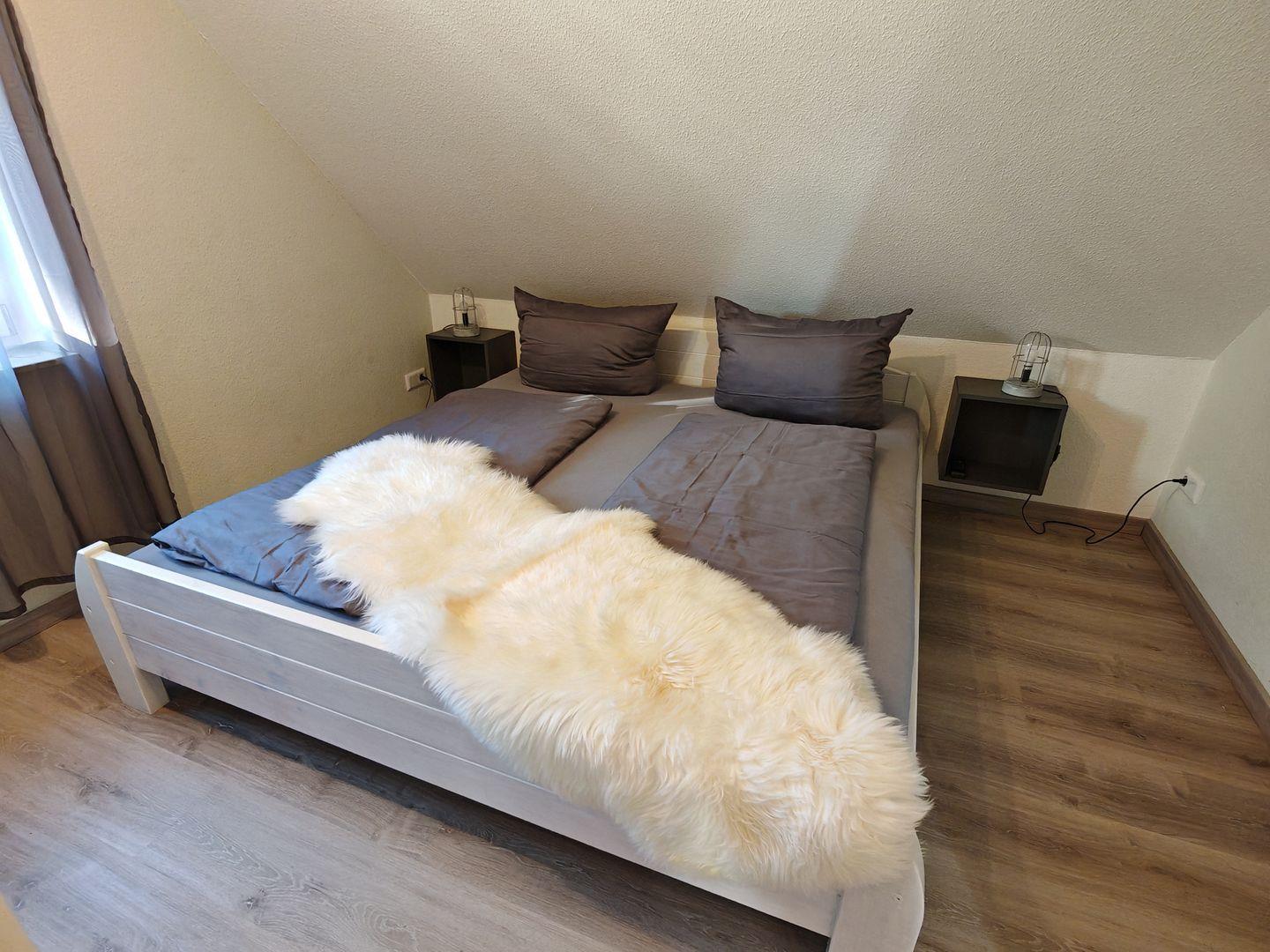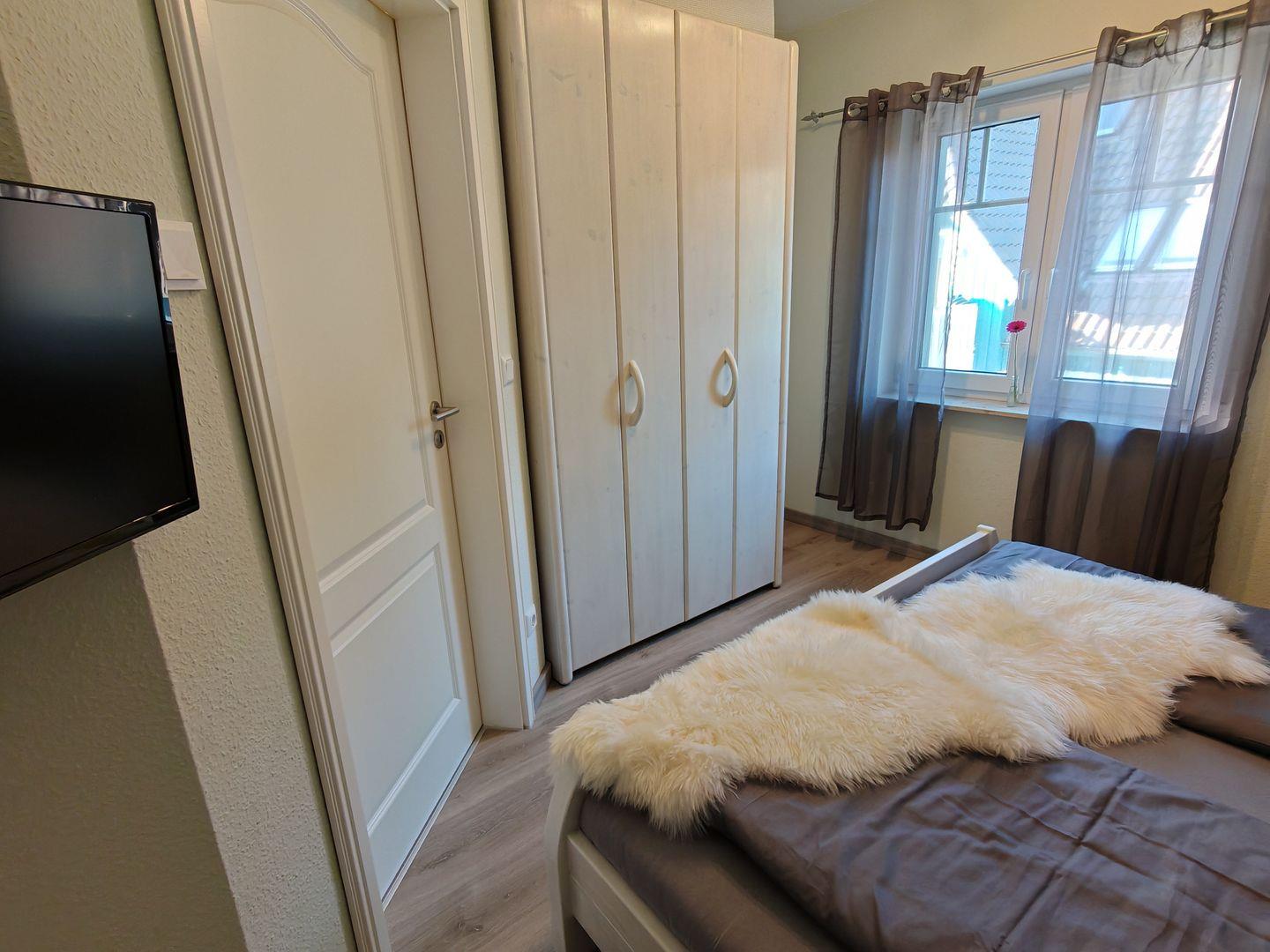 Das Ferienhaus verfügt über insgesamt drei Schlafzimmer, von denen zwei mit komfortablen Doppelbetten und das dritte mit einem ausziehbaren Tagesbett ausgestattet sind. Hier finden bis zu fünf Personen ausreichend Platz für einen erholsamen Schlaf.