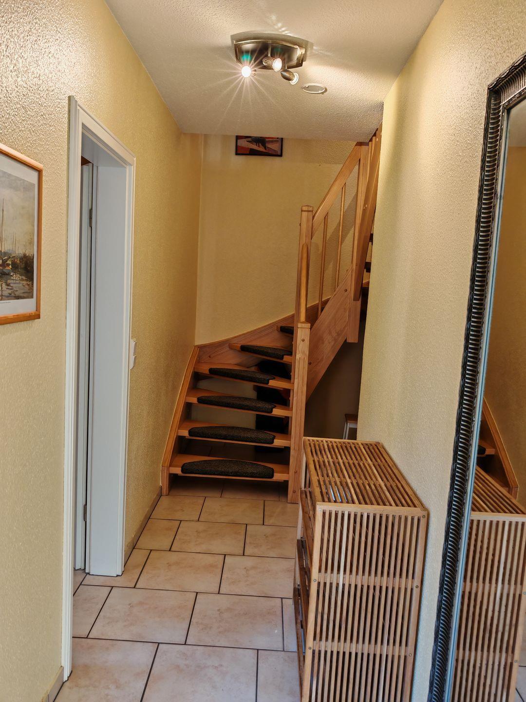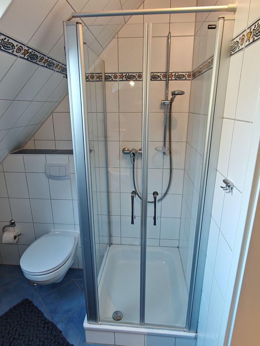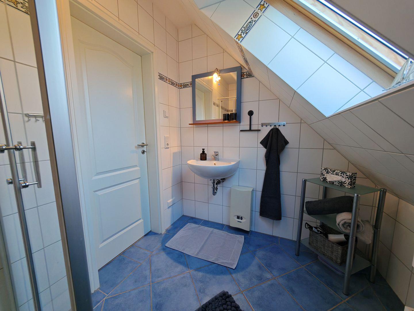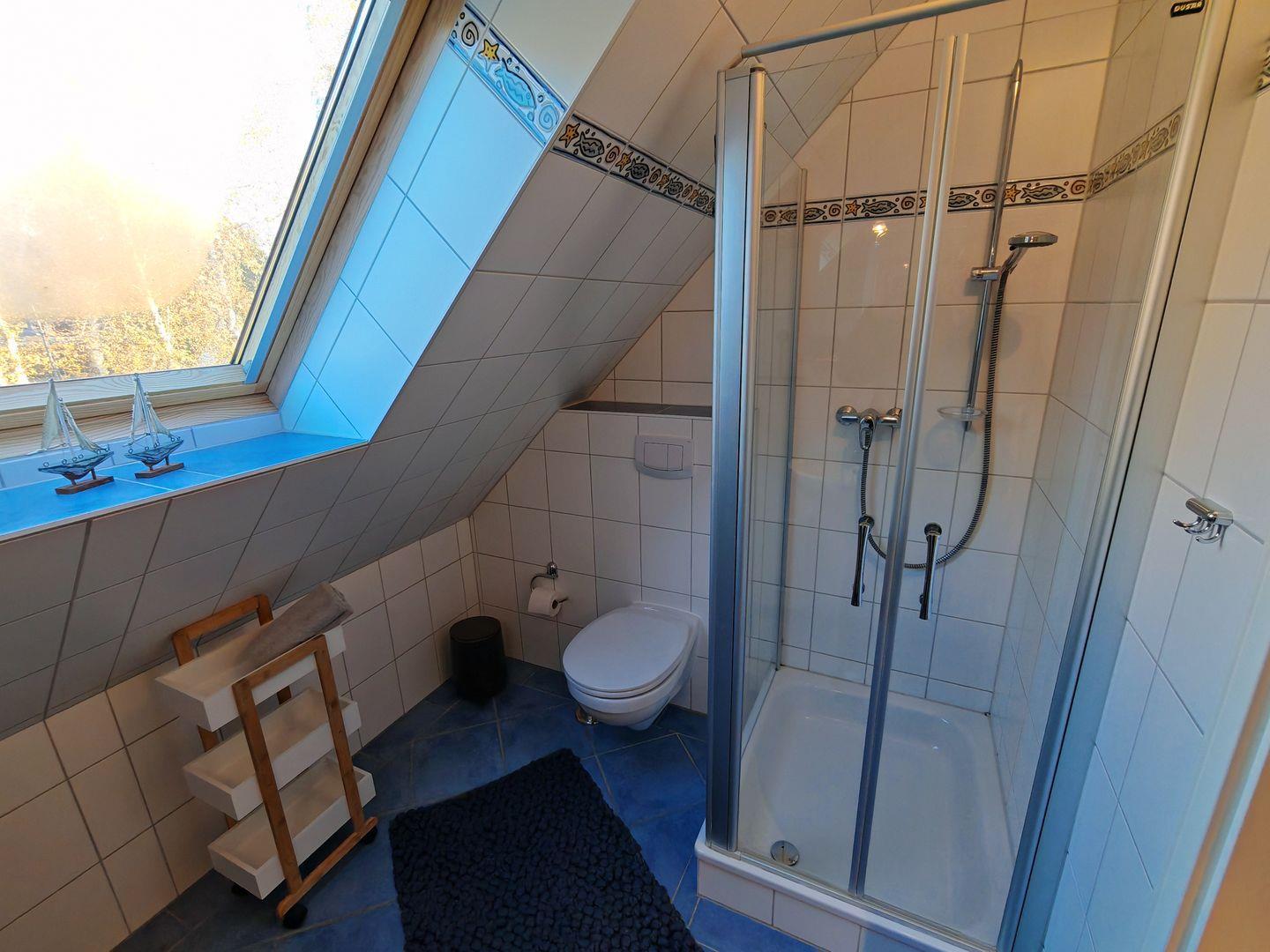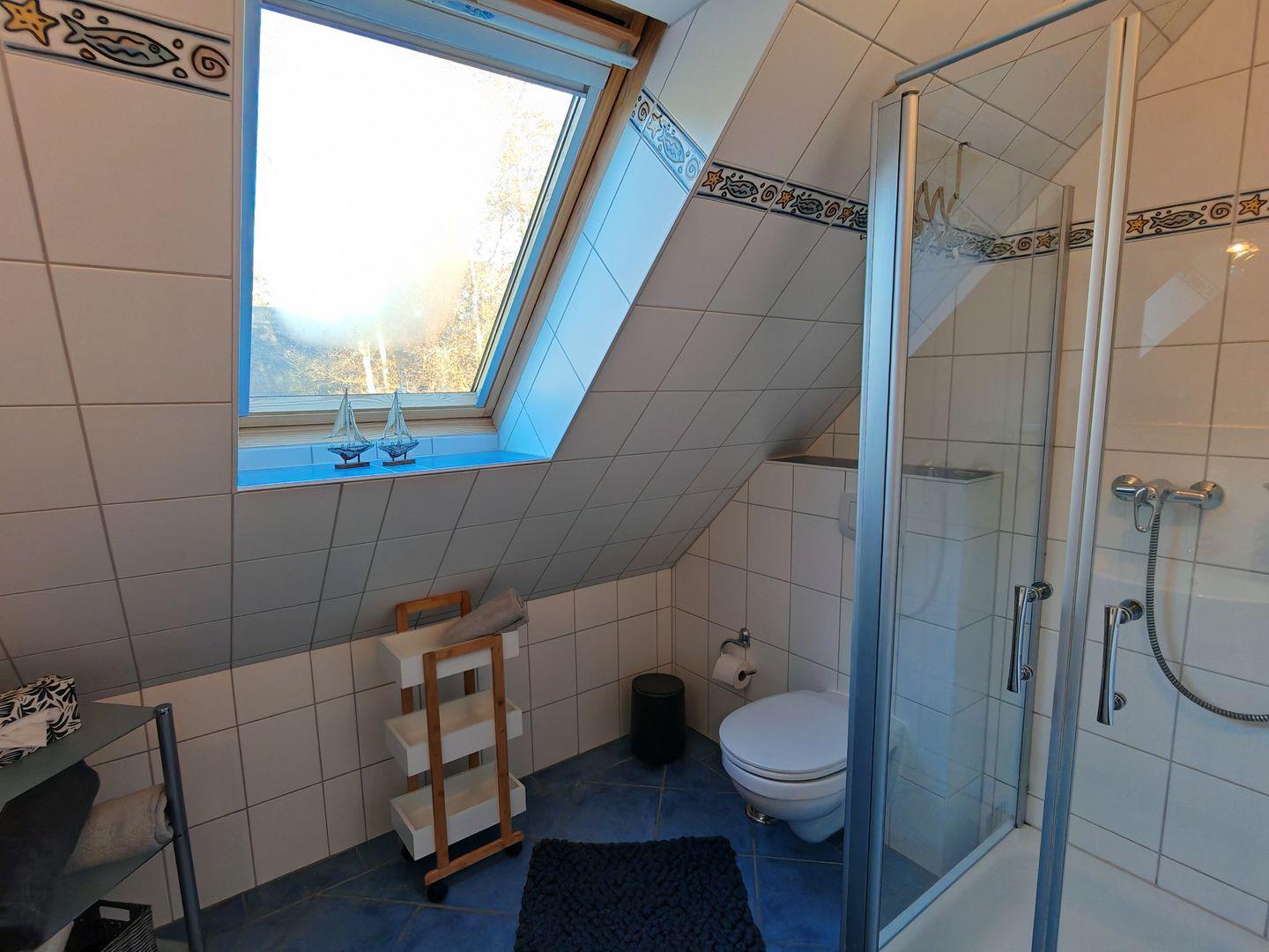 Im Erdgeschoss befindet sich auch das erste Duschbad, das mit einer Sauna ausgestattet ist. Hier können Sie nach einem aktiven Tag in der Natur entspannen und zur Ruhe kommen.