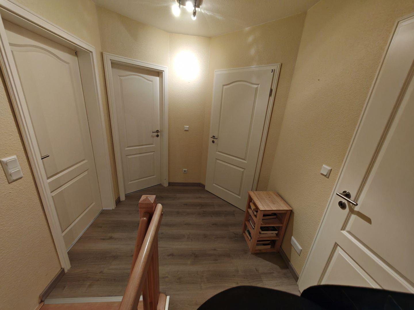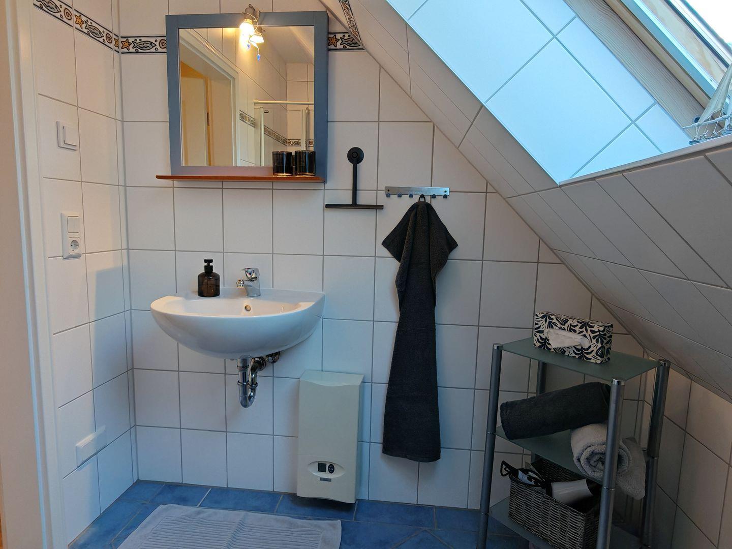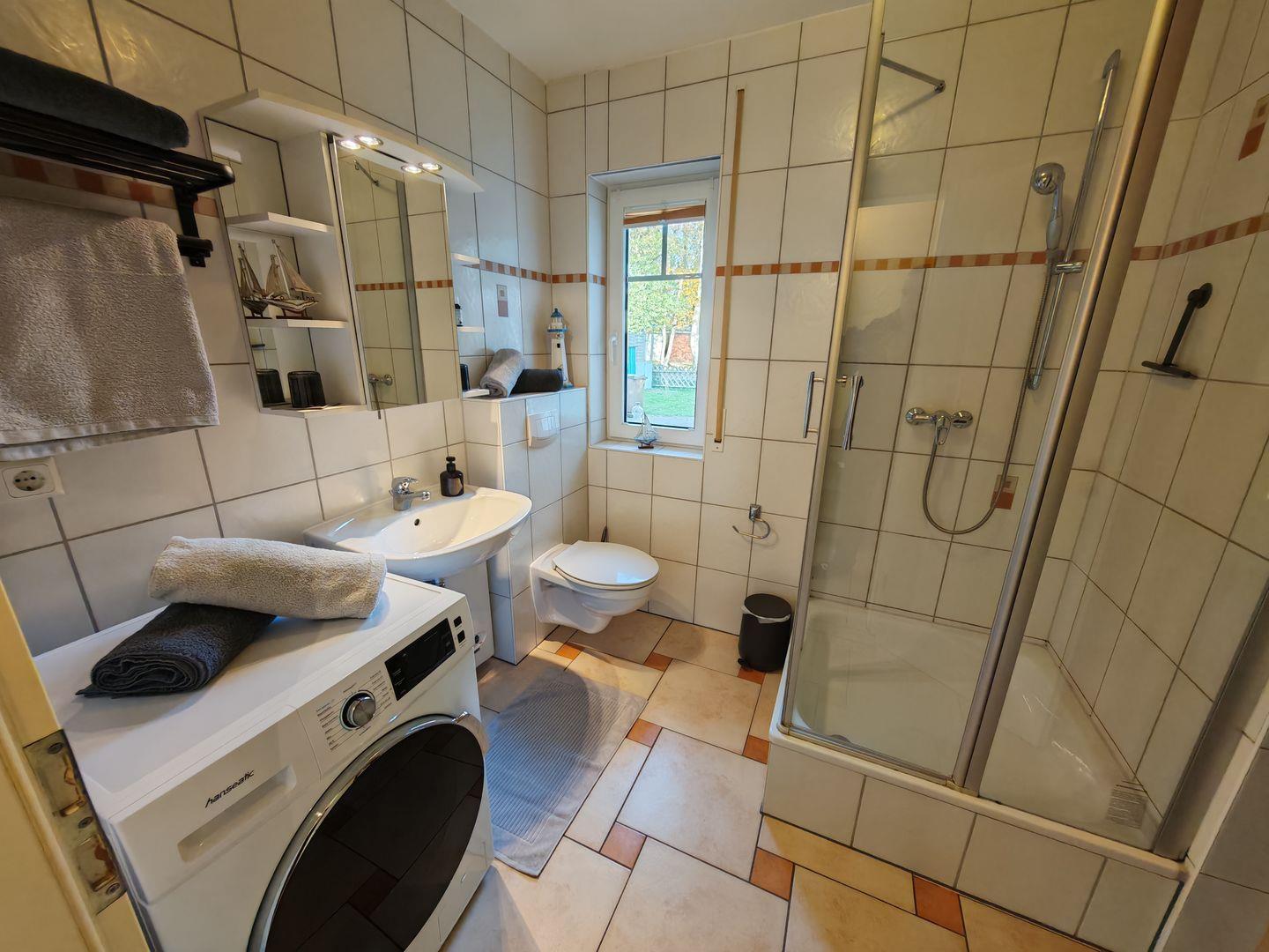 Zwei moderne Duschbäder mit Tageslicht sorgen für Frische und Komfort. Zusätzlich steht Ihnen eine Waschmaschine zur Verfügung, um auch während Ihres Aufenthalts den gewohnten Komfort zu genießen.