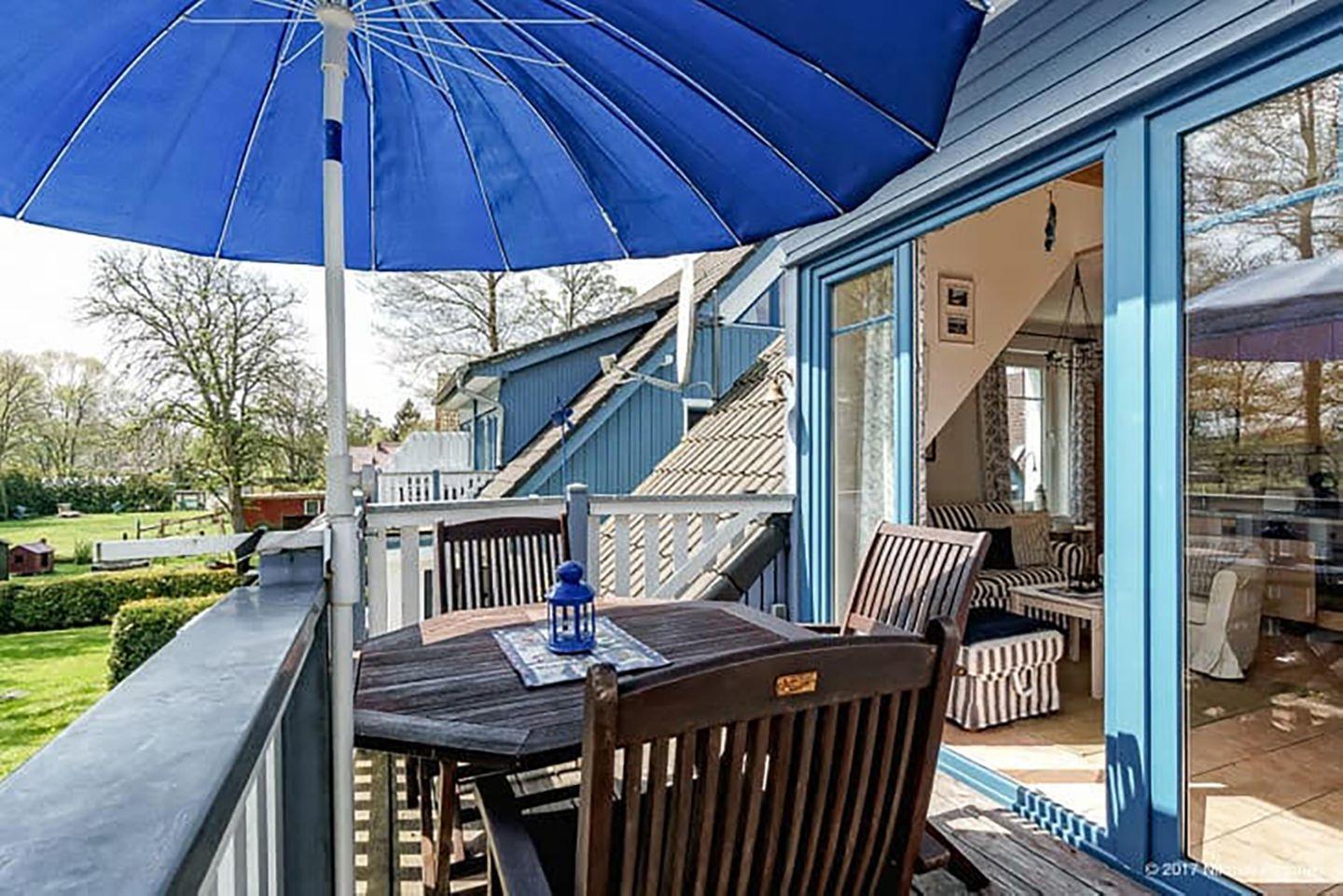 Ferienwohnung im Ortskern von Prerow, bis 4 Personen + Kleinkind (bis 3 Jahre) | ca. 57 m² Wohnfläche | OG und DG | Im OG Wohnbereich mit Sofa und kleinem Flachbild-Sat-TV, Essbereich für vier Personen, offene Küche (Kühlschrank m. Gefrierfach, Cerankochfeld, Backofen, Geschirrspüler, Kaffeemaschine, Toaster, Wasserkocher, Mikrowelle), Duschbad mit WC und Waschbecken, 1 Schlafzimmer mit Doppelbett (180 x 200 cm), im DG 1 Schlafzimmer mit Doppelbett (180 x 200 cm), Radio und Sat-TV, Treppenschutzgitter, Reisebett (ohne Bettzeug) und Hochstuhl vorhanden, Fliegenschutzgitter, Fahrradschuppen, ein PKW-Stellplatz, möblierter Südbalkon, separates Saunahaus (6 x 2 € für 2 Stunden) im Garten zur gemeinschaftlichen Nutzung, Bettwäsche kann für 12 € und Handtücher für 8 € pro Person gemietet werden, Nichtraucherhaus, Haustiere sind nicht gestattet, kostenfreier Internetzugang über HOTSPLOTS