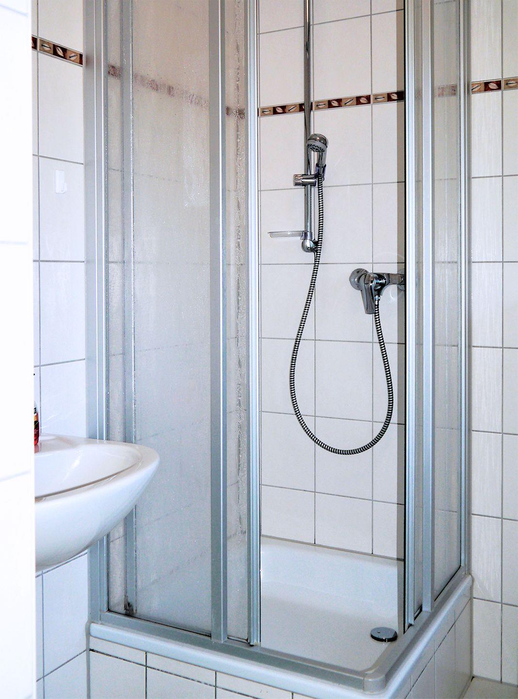 Das Erdgeschoss bietet zudem ein Duschbad mit WC. Im Obergeschoss finden Sie drei Schlafzimmer und ein weiteres Duschbad, welches zusätzlich mit einer Waschmaschine ausgestattet ist. Zwei der Schlafzimmer sind jeweils mit einem Doppelbett (160 x 200 cm und 180 x 200 cm) ausgestattet und verfügen über Insektenschutzgitter. Das dritte Schlafzimmer, ein kleiner Raum mit Dachschräge, ist mit einem Etagenbett (90 x 200 cm) für Kinder eingerichtet. Zudem sind ein Babyreisebett (ohne Bettwäsche) und ein Hochstuhl vorhanden, sodass die Ferienhaushälfte auch für Familien mit kleinen Kindern bestens geeignet ist.