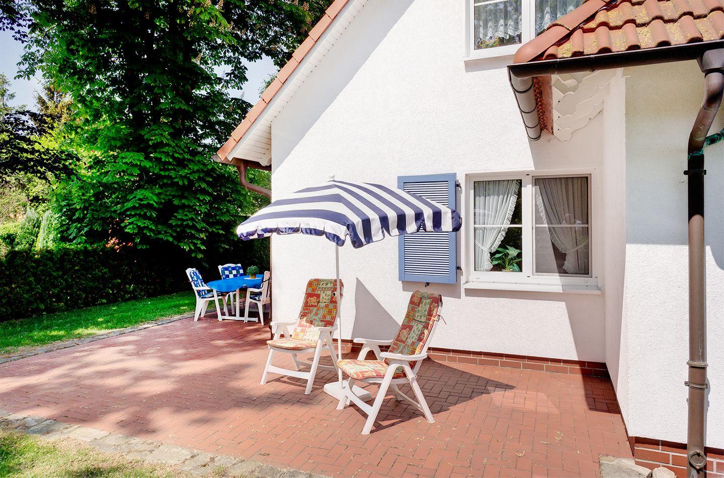 Ferienwohnung bis 5 Personen + 1 Kind (bis 3 Jahre) | Ca. 78 m2 Wohnfläche | EG Wohn-/Essbereich, separate Küche, Flur, Bad, 3 Schlafzimmer, Hauswirtschaftsraum | Süd-West-Terrasse | 1 Parkplatz | Wohn-/Essbereich Sitzgarnitur, Radio mit CD-Player, Flachbild-SAT-TV, Esstisch mit Stühlen | Küche Küchenzeile mit Cerankochfeld, Backofen, Geschirrspüler, Kaffeemaschine, Mikrowelle, Toaster, Teekessel | Bad mit Dusche und WC | 3 Schlafzimmer SZ 1 mit 1 Doppelbett (180 x 200 cm), SZ 2 mit 1 Doppelbett (180 x 200 cm), SZ 3 mit 1 Einzelbett (100 x 200 cm) | Hauswirtschaftsraum mit Kühl-/Gefrierkombination | Gemeinschaftliche Nutzung von Fahrradschuppen, Gartenmöbel, Fliegenschutzgitter, Kinderreisebett, Hochstuhl, WLAN