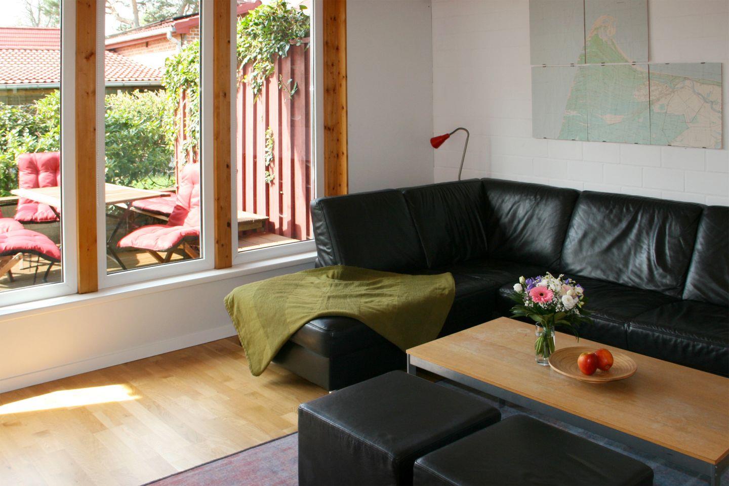 Dieses Reihenhaus bietet auf ca. 83 m² Wohnfläche Platz für bis zu 7 Personen (4 Erwachsene und 3 Kinder) und befindet sich in einer familienfreundlichen Umgebung. Haustiere sind hier willkommen. Im Erdgeschoss erwartet Sie ein gemütliches Wohnzimmer mit einer Sitzgarnitur, einem Radio mit CD-Player und einem SAT/Kabel-TV. Die gut ausgestattete, integrierte Küche verfügt über einen Esstisch, einen Backofen, ein Cerankochfeld, einen Geschirrspüler, einen Kühlschrank mit Gefrierfach, eine Kaffeemaschine, Mikrowelle, Toaster und Wasserkocher. Zusätzlich befindet sich ein Gäste-WC im Erdgeschoss.