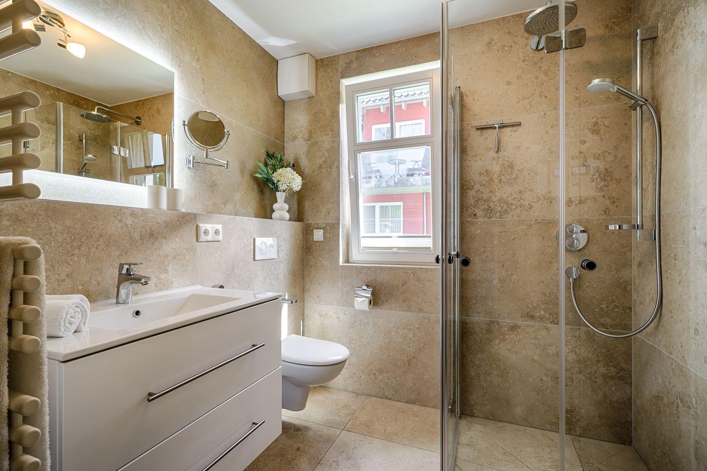 Tageslichtbad mit ebenerdiger DU/WC und anliegender Sauna(kostenfrei)