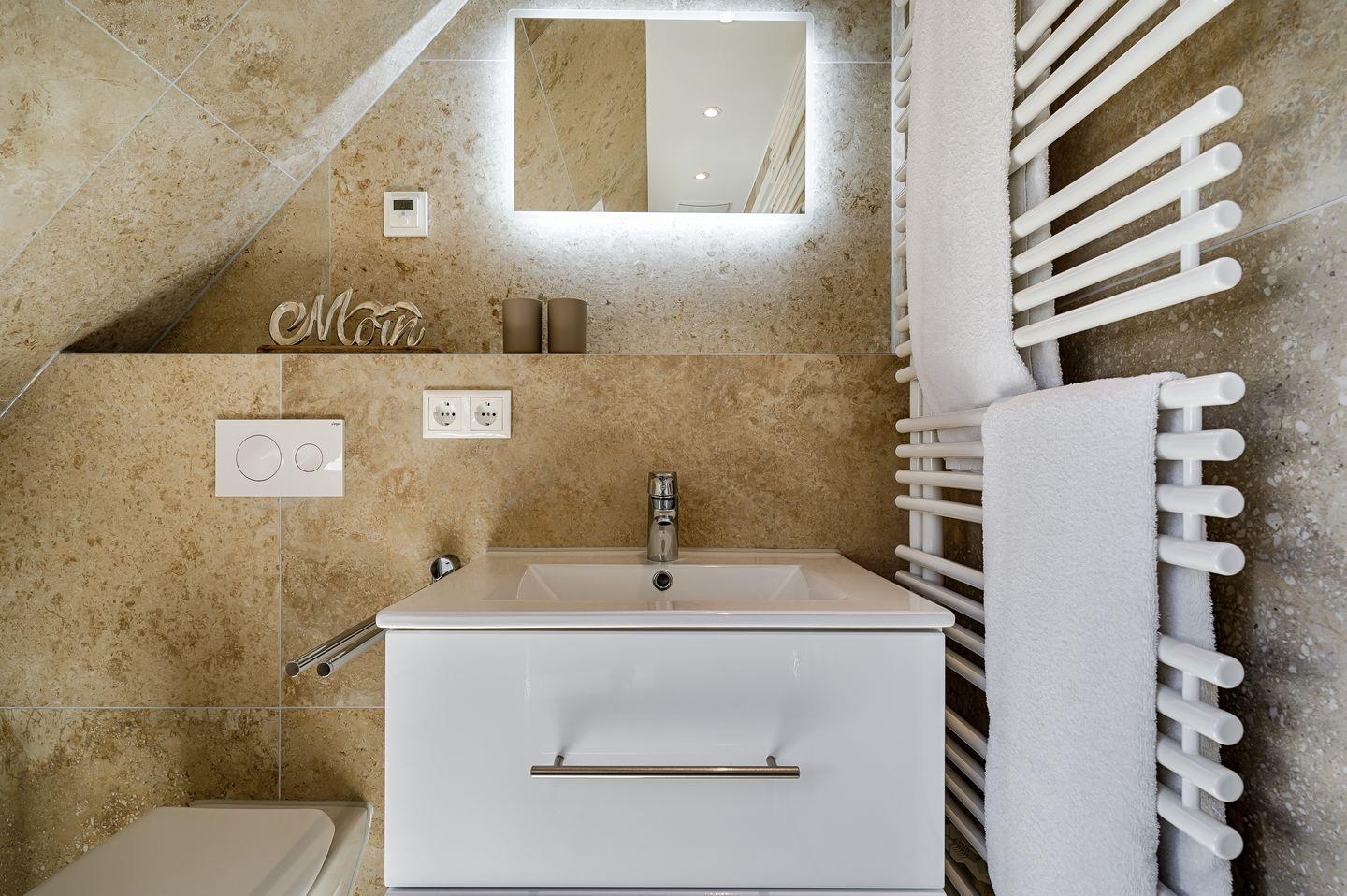 Alle Bäder sind mit Handtuchtrocknern, Fön und Kosmetikspiegel ausgestattet