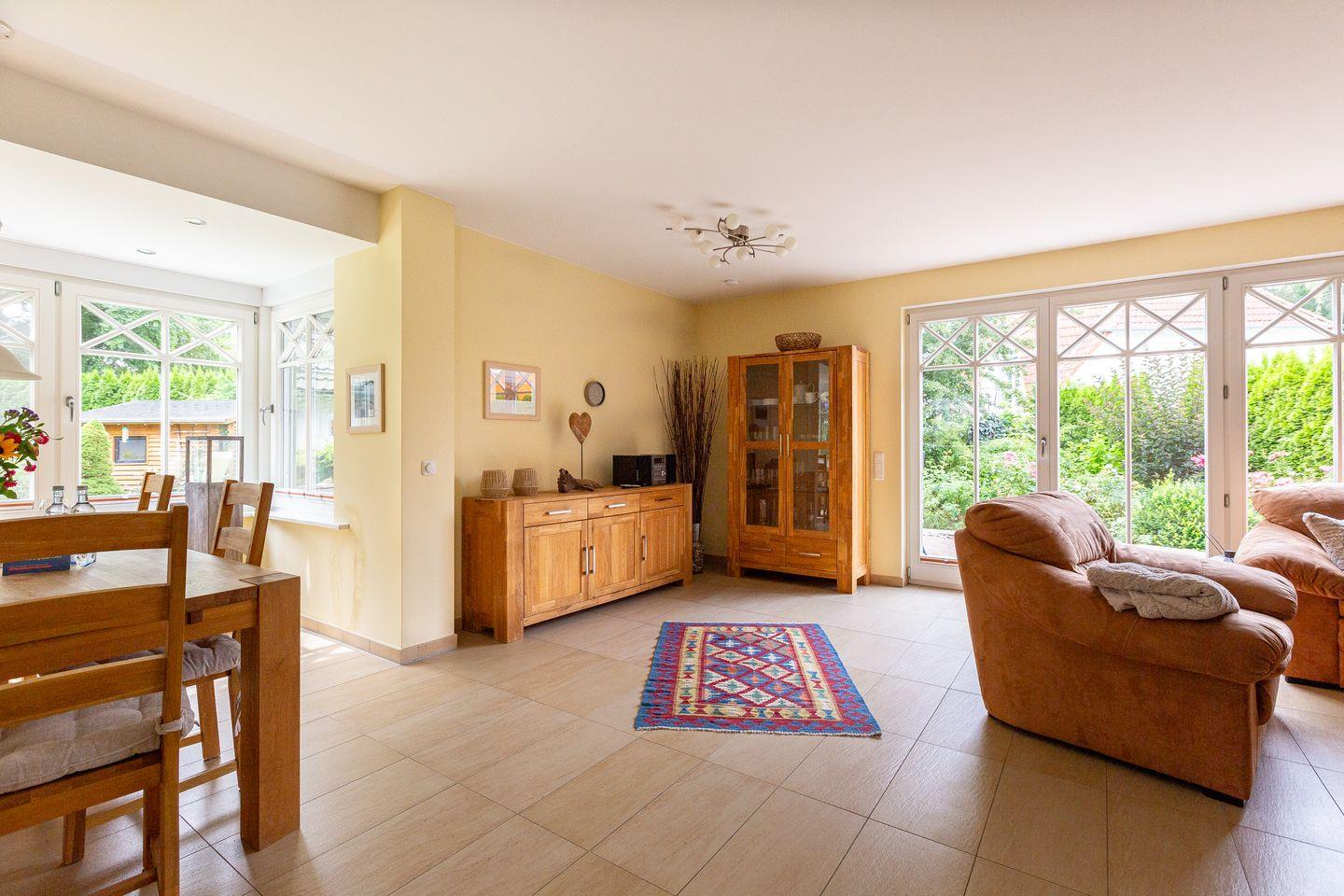 Viel Platz zum Entfalten bietet auch der herrliche Außenbereich mit seiner großen Steinterrasse und dem schön angelegten Garten samt Grillmöglichkeit. Zum Ferienhaus gehören ein Carport und eine zusätzliche Parkmöglichkeit.