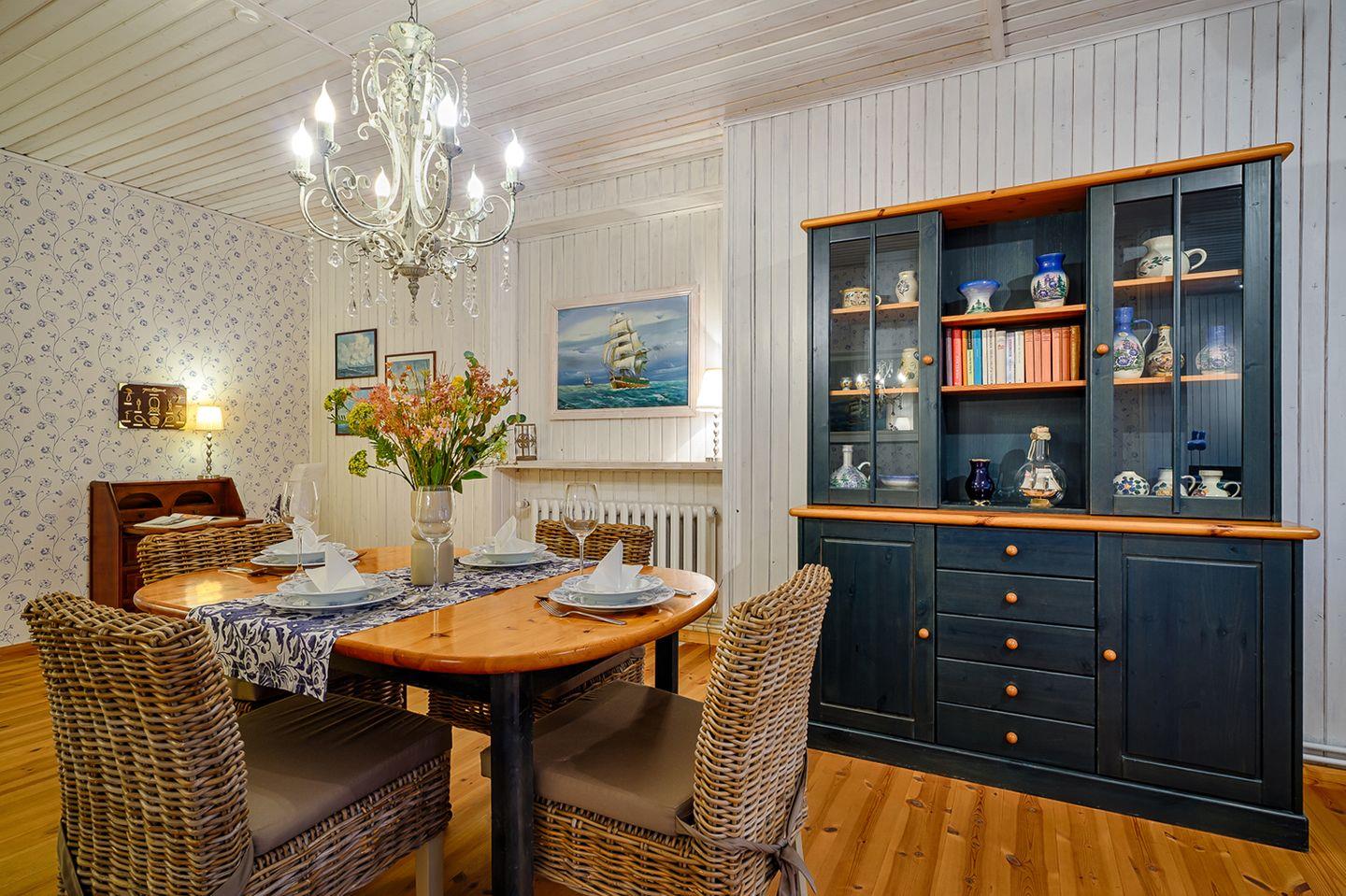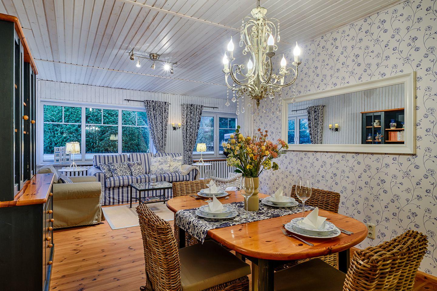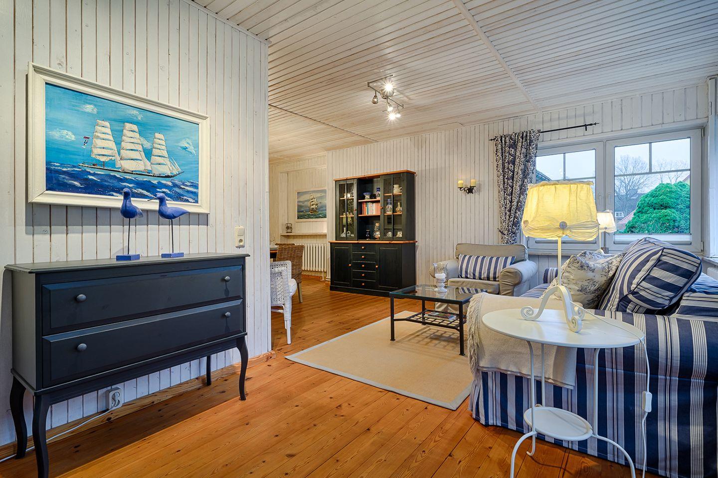 Willkommen in unserer gemütlichen Ferienwohnung für bis zu 2 Personen. Diese charmante Unterkunft bietet Ihnen auf ca. 75 m² Wohnfläche alles, was Sie für einen entspannten Aufenthalt benötigen. Im Erdgeschoss finden Sie einen einladenden Wohn-/Essbereich mit einem Esstisch, einem bequemen Sofa und einem Sessel, ideal für entspannte Abende. Für Ihre Unterhaltung stehen ein Radio mit CD-Player und SAT-TV zur Verfügung.
