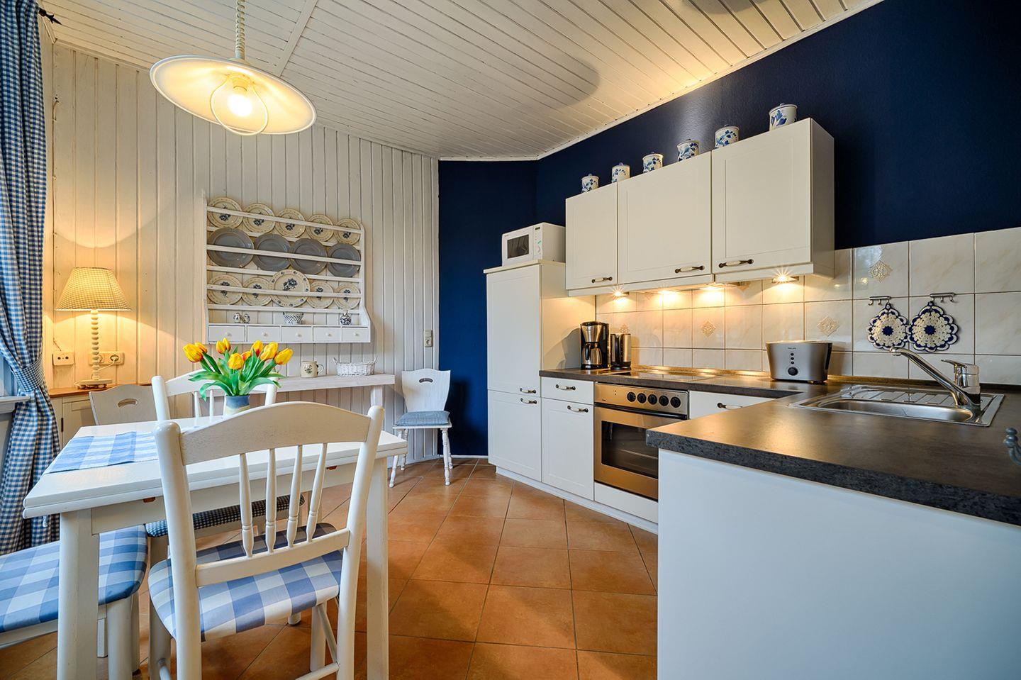 Ferienwohnung bis 2 Personen | keine Haustiere | ca. 75 m² Wohnfläche | EG Wohn-/Essbereich, Küche, Bad, 1 Schlafzimmer | Terrasse mit Strankorb und Gartenmöbeln | 1 Parkplatz | Wohn-/Essbereich Esstisch, Sofa mit Sessel, Radio mit CD-Player, SAT-TV | Küche Backofen, Geschirrspüler, E-Herd (Cerankochfelder), Kaffeemaschine, Kühlschrank mit Gefrierfach, Mikrowelle, Toaster, Wasserkocher | Bad mit Dusche, WC | 1 Schlafzimmer 1 Doppelbett (160 x 200 cm), Kleiderschrank | Elektrogrill, Fahrradschuppen, WLAN kostenfrei | Bettwäsche und Handtücher ab 7 ÜN inklusive