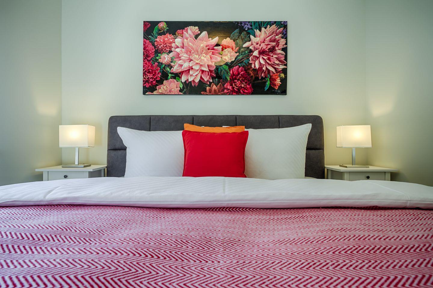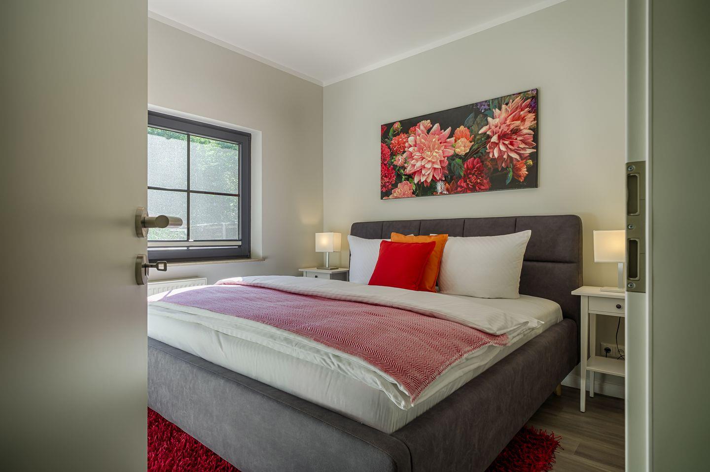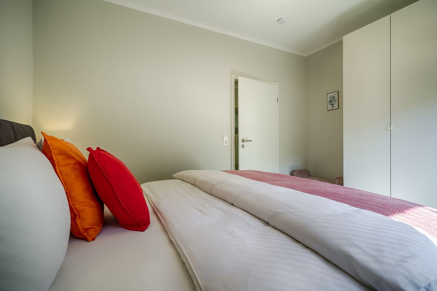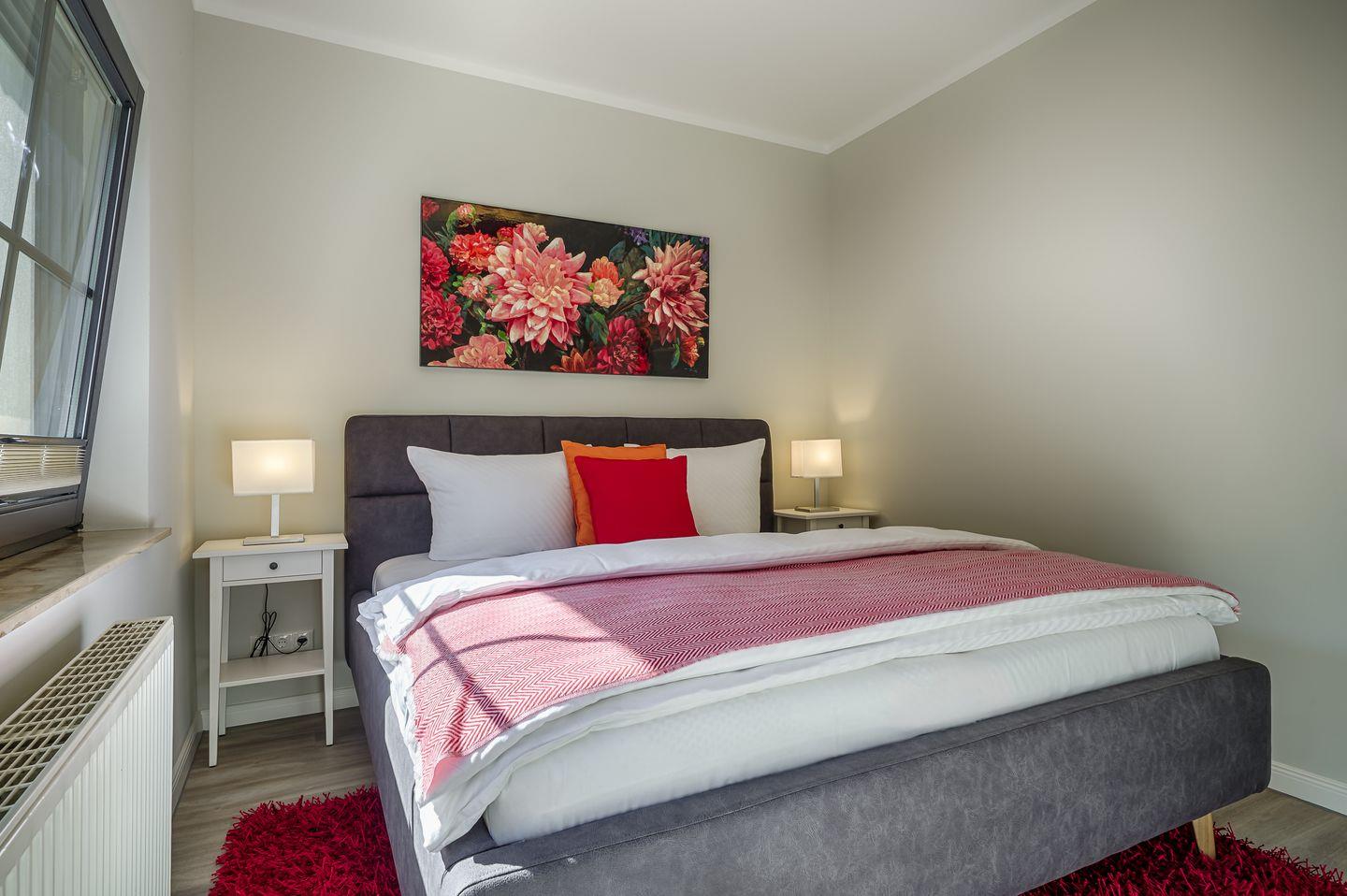 1 Schlafzimmer mit Doppelbett (1,80x2,00m), verstellbare Lattenroste