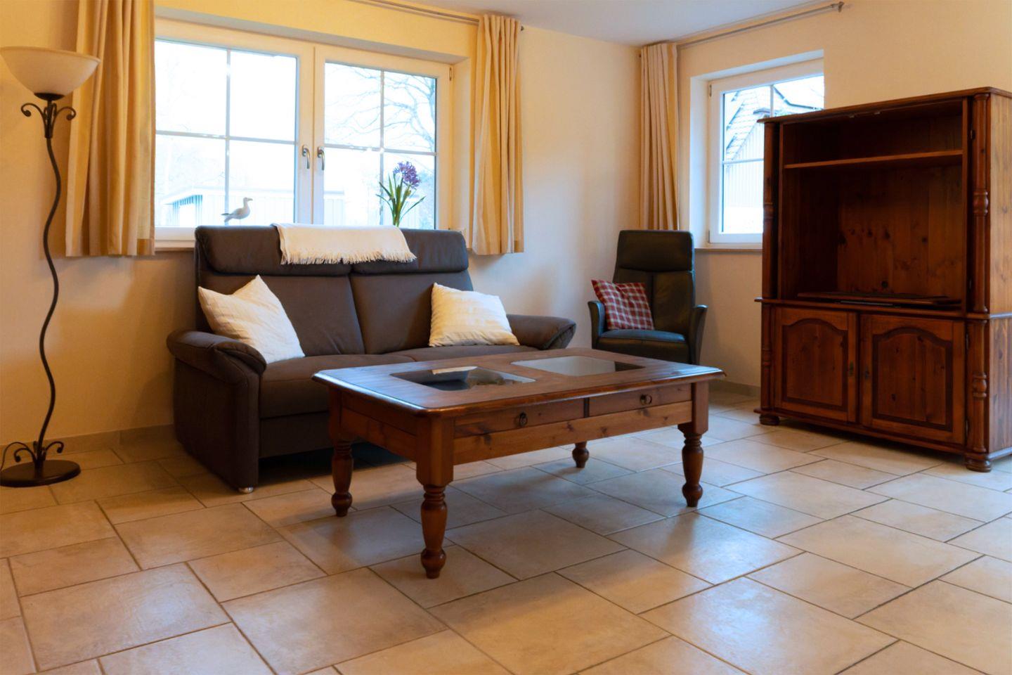Ferienwohnung bis 2 Personen | ca. 63 m² Wohnfläche | EG Wohnbereich mit Einbauküche, Bad, Schlafzimmer | Wohnbereich Esstisch, Sofa, Sessel, SAT-TV | Einbauküche Backofen, Ceran-Kochfeld, Geschirrspüler, Kühlschrank ohne Gefrierfach, Kaffeemaschine, Toaster, Wasserkocher | Bad Dusche, WC, Waschbecken | Schlafzimmer 1 Doppelbett (180 x 200 cm) | WLAN, 1 Parkplatz, Haustiere erlaubt
