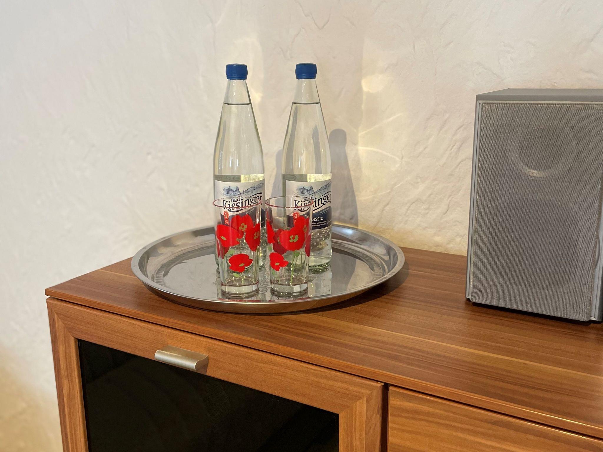 Bei Anreise befinden sich 2 Flaschen Wasser gratis zur Verfügung.